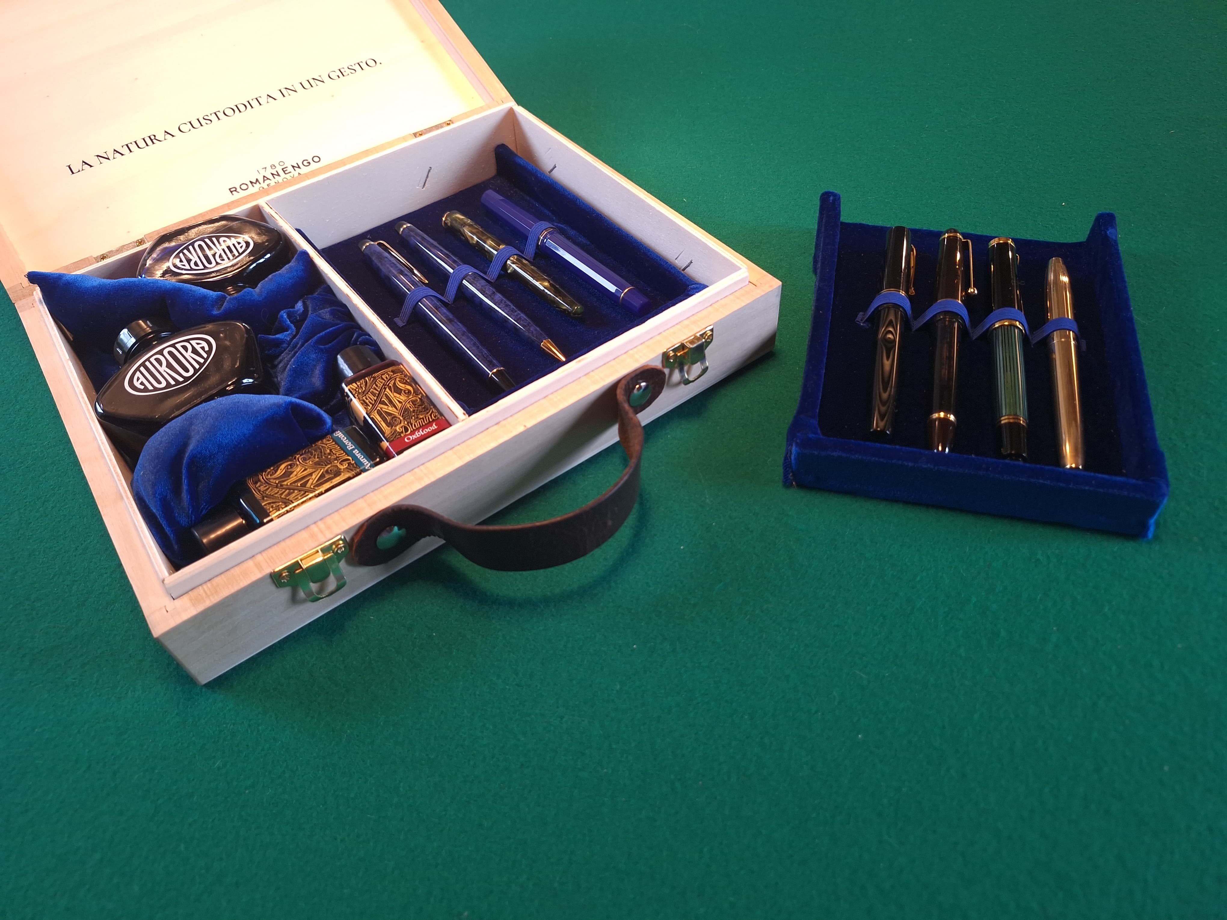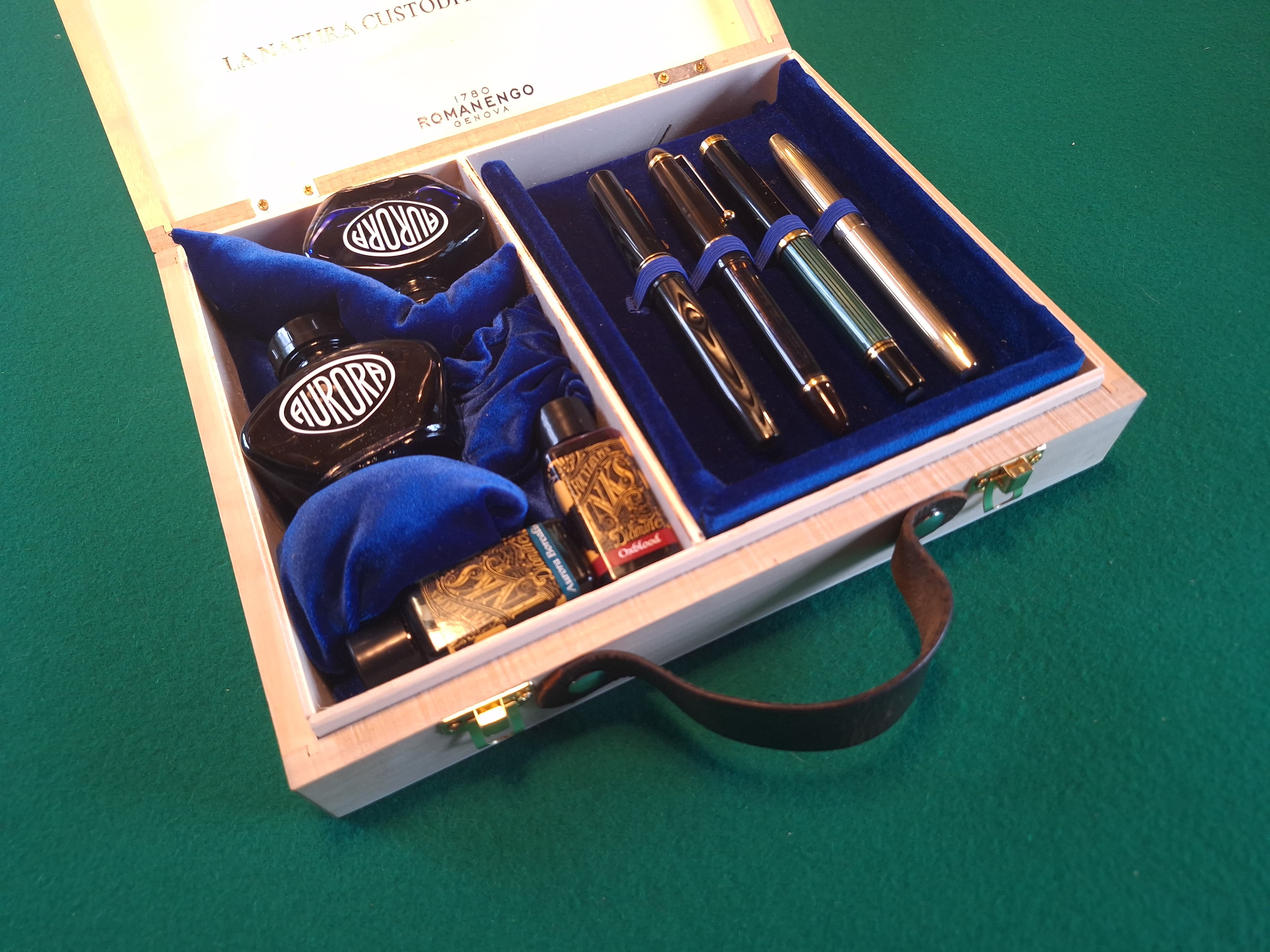 I questo periodo mi trovo spesso fuori casa per una/due settimane e volevo potermi portare dietro comodamente un po' di penne e, soprattutto, alcune boccette di inchiostro. Ero alla ricerca di una scatola adatta e a Natale ho trovato quella giusta.