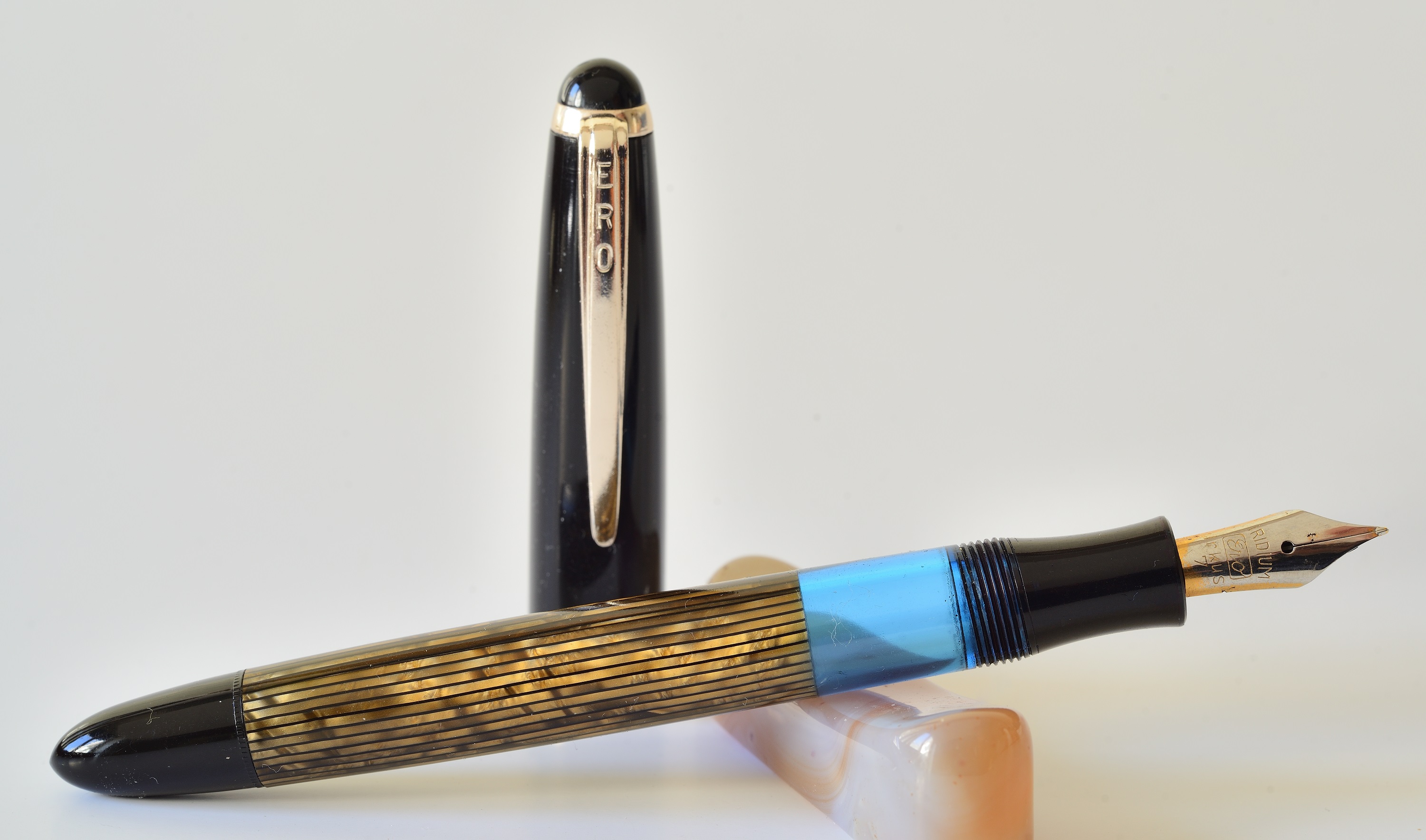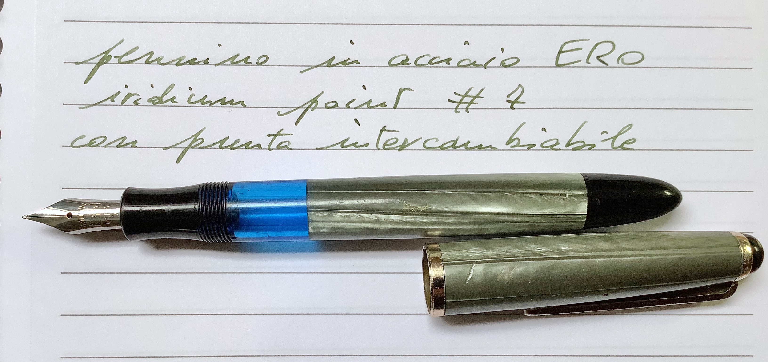 Sul fusto solo la marcatura ERO inscritta nel suo classico 'cartiglio' e sul codale le lettere EF, con (quasi) certezza il tratto del pennino.