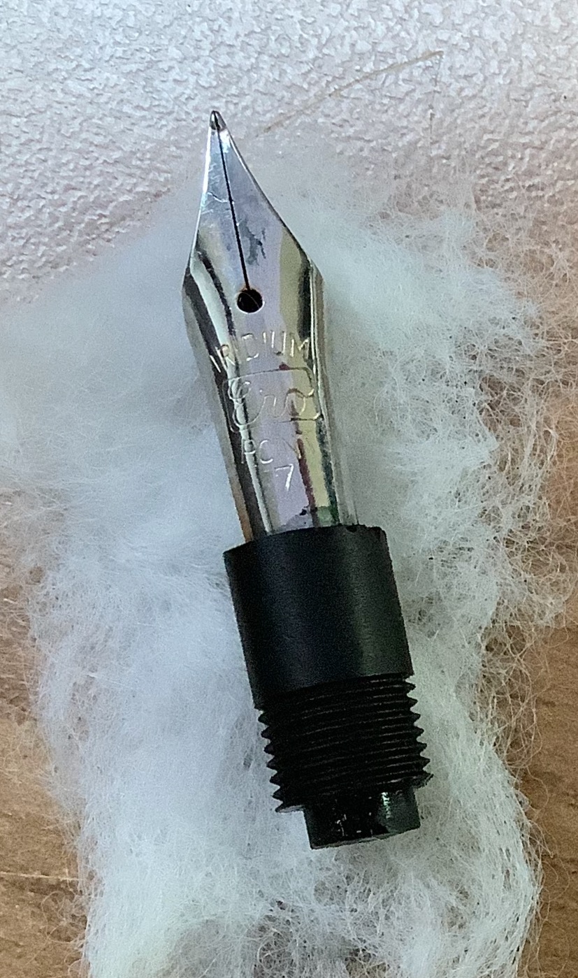 Pennino in acciaio montato sull'alimentare con collare filettato, rendendo intercambiabile il gruppo scrittura (come già evidenziato dalle foto di @ricart al fondo della prima pagina di questa discussione).