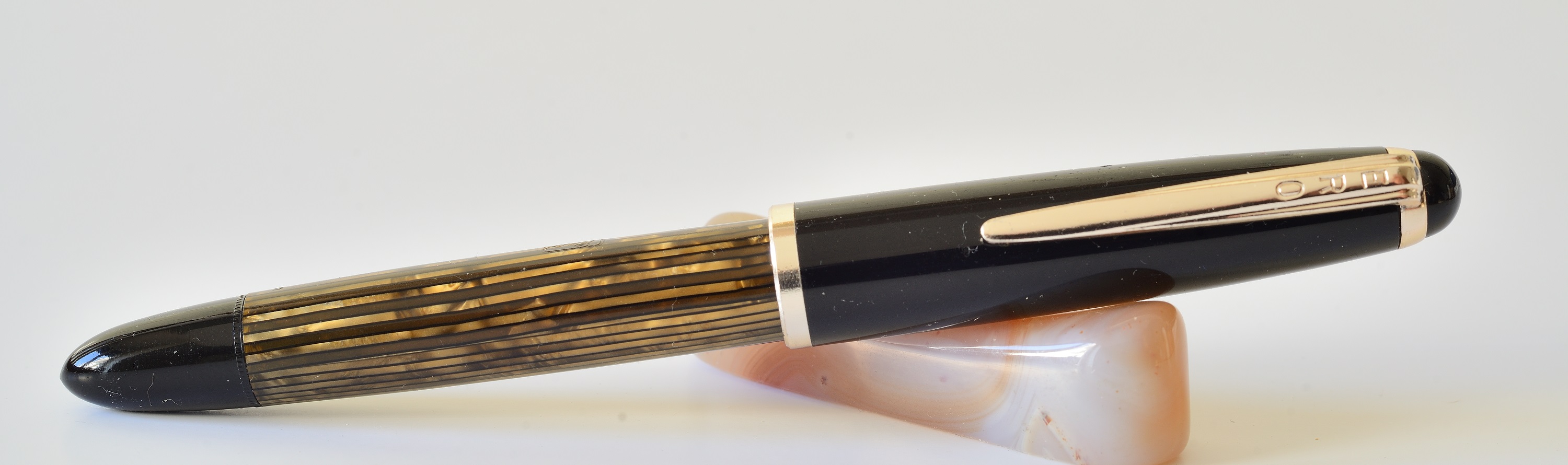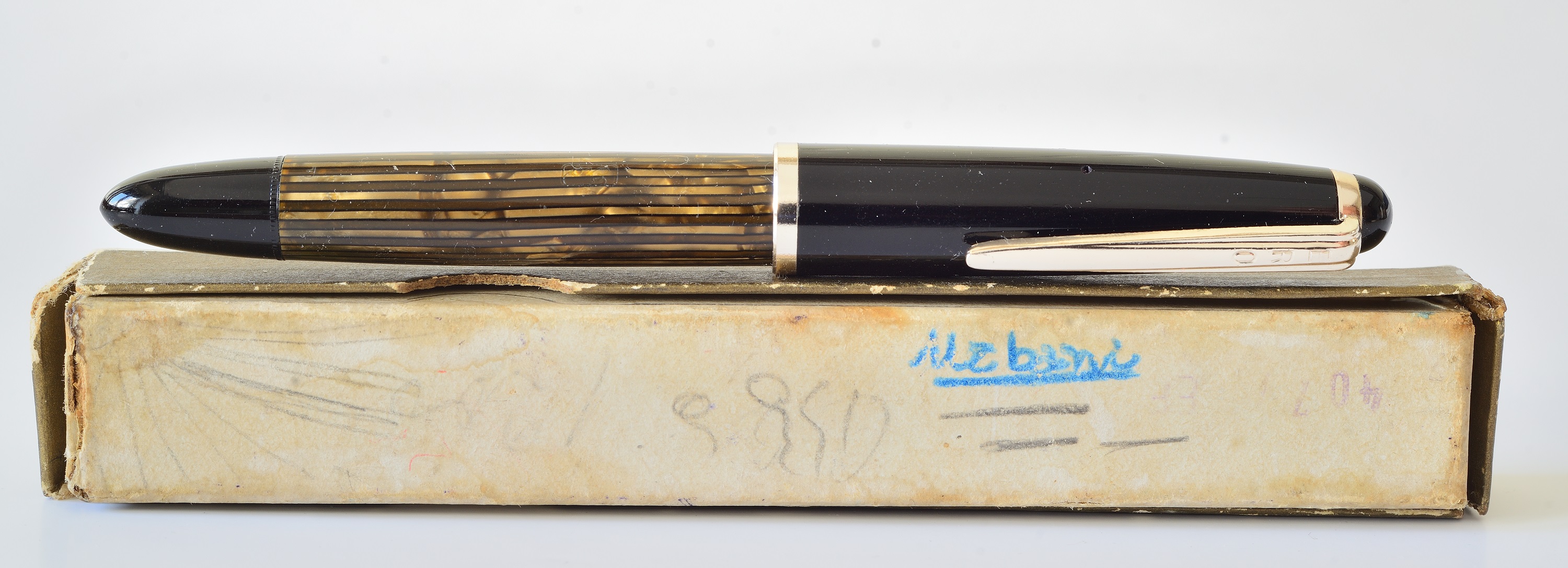 aggiungo anch'io qualche foto della mia con scatolino compreso, corpo in celluloide striata, non è una pellicola, incisione Ero in un rettangolo