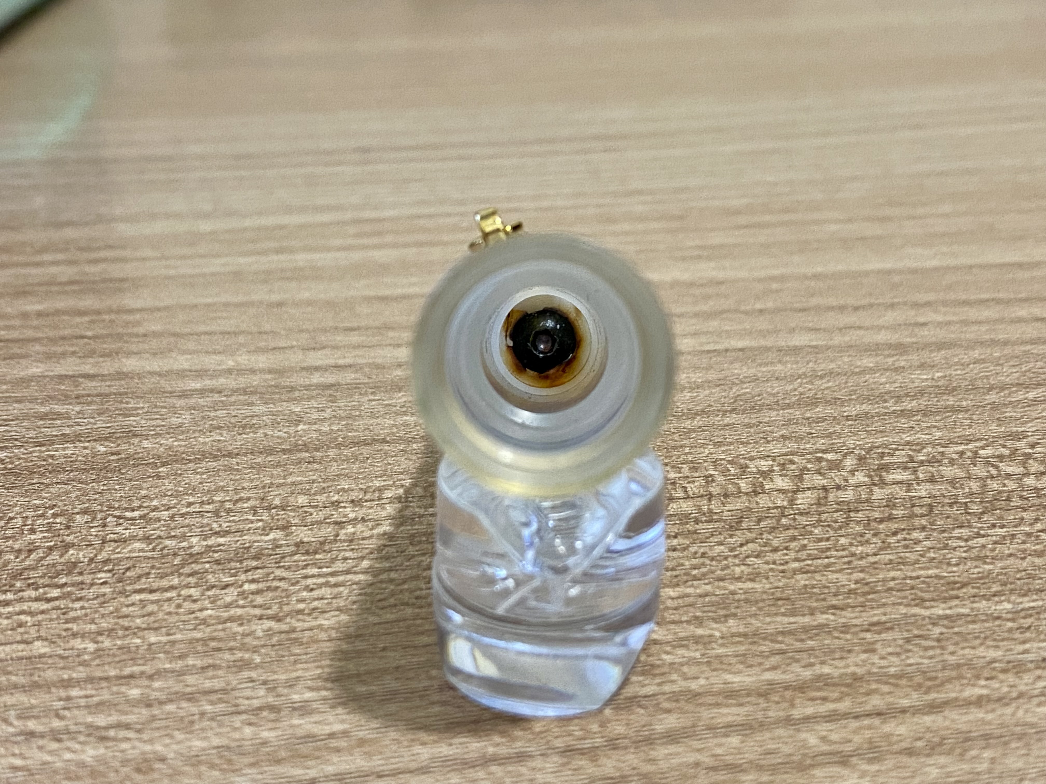 penso tu debba sostituire quella vite con una di titanio o altrimenti il tappo trasparente diventerà marrone dovuto alla ruggine che intride il materiale costantemente.
