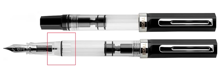 A mio parere hanno "copiato" a forza il meccanismo delle TWSBI eco (il cui pistone pure non va a fondo perché il fondo ci sono una serie di canali per evitare che l'inchiostro esca a fiotto dentro il capezzolo del feed ad incastro ) , che però è pensato per essere così ed ha un sistema di regolazione ben superiore a questa omas