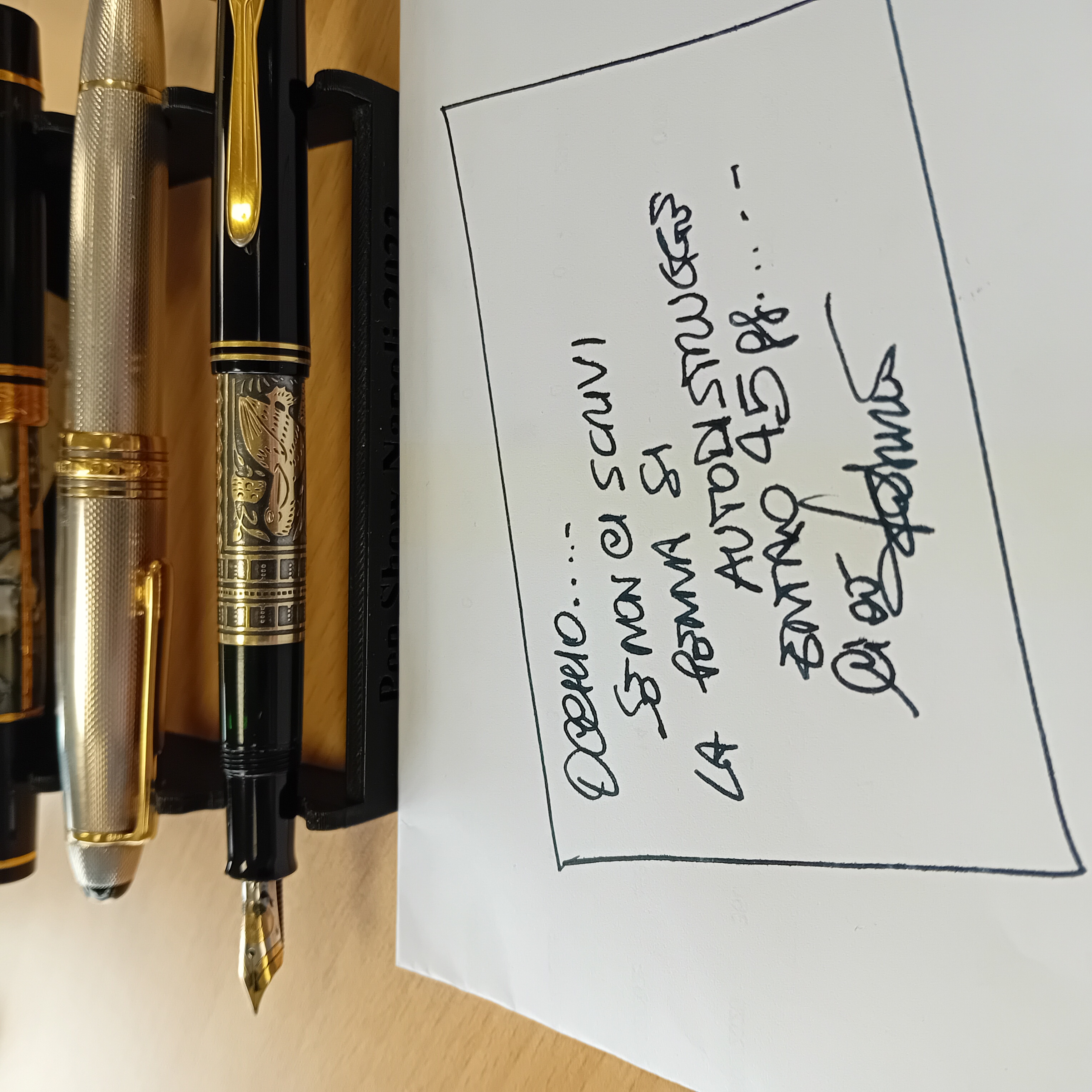 Silvia1974 ha scritto: ↑mercoledì 26 febbraio 2025, 18:45 Sciolgo la riserva e rivelo il mistero della penna che aspettavo!Finalmente mia! Per chi si ricordasse, anni fa avevo avuto un problema di pennino con una identica, rimandata al venditore e per problemi vari sostituita con un altro modello. Ma è lei che avevo nel cuore… così ora che mi si è presentata la buona occasione eccola tornata a casina