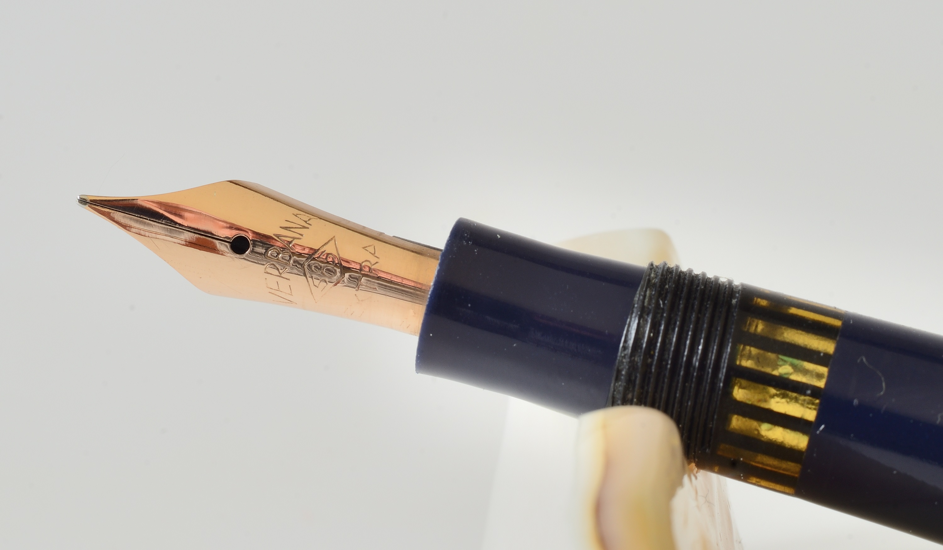 caricamento a pistone, monta un pennino in oro 14k Verbana Extra, probabilmente non originale
