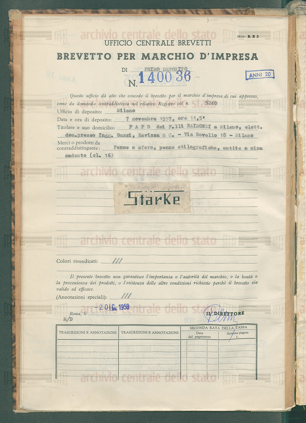 riporta la registrazione nel 1938 di una ditta attiva a Milano con titolare: