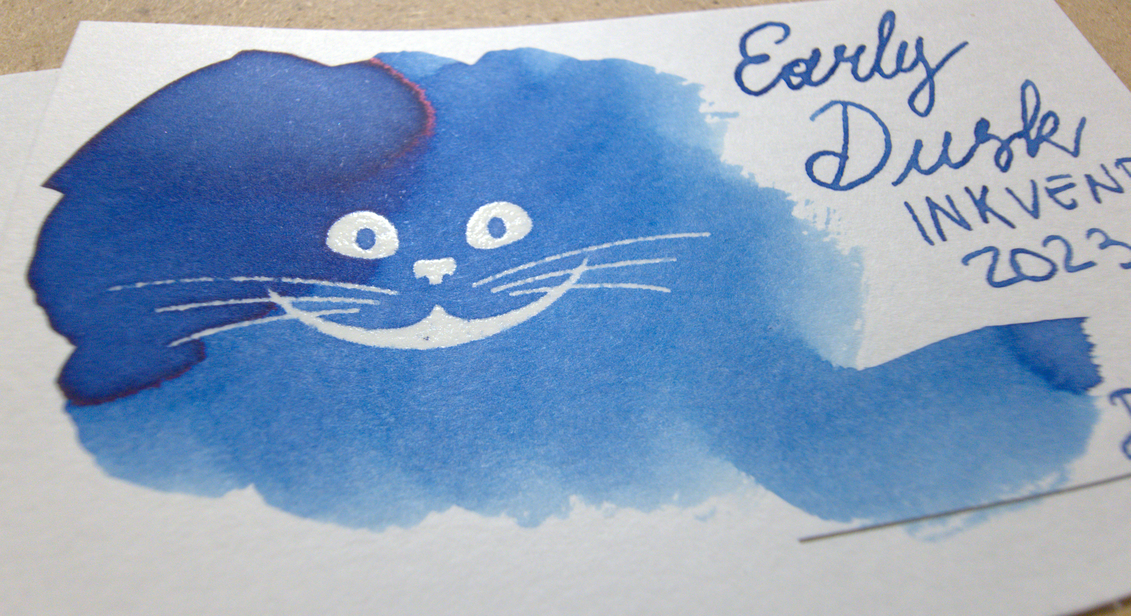 Personalmente, tendo a preferire i blu in base rossa, caldi, oppure quelli neutri, quindi Early Dusk non è esattamente il mio tipo di blu. Tuttavia, la componente fredda, in questo inchiostro, è poca, è borderline con una tonalità neutra, quindi mi piace abbastanza.
