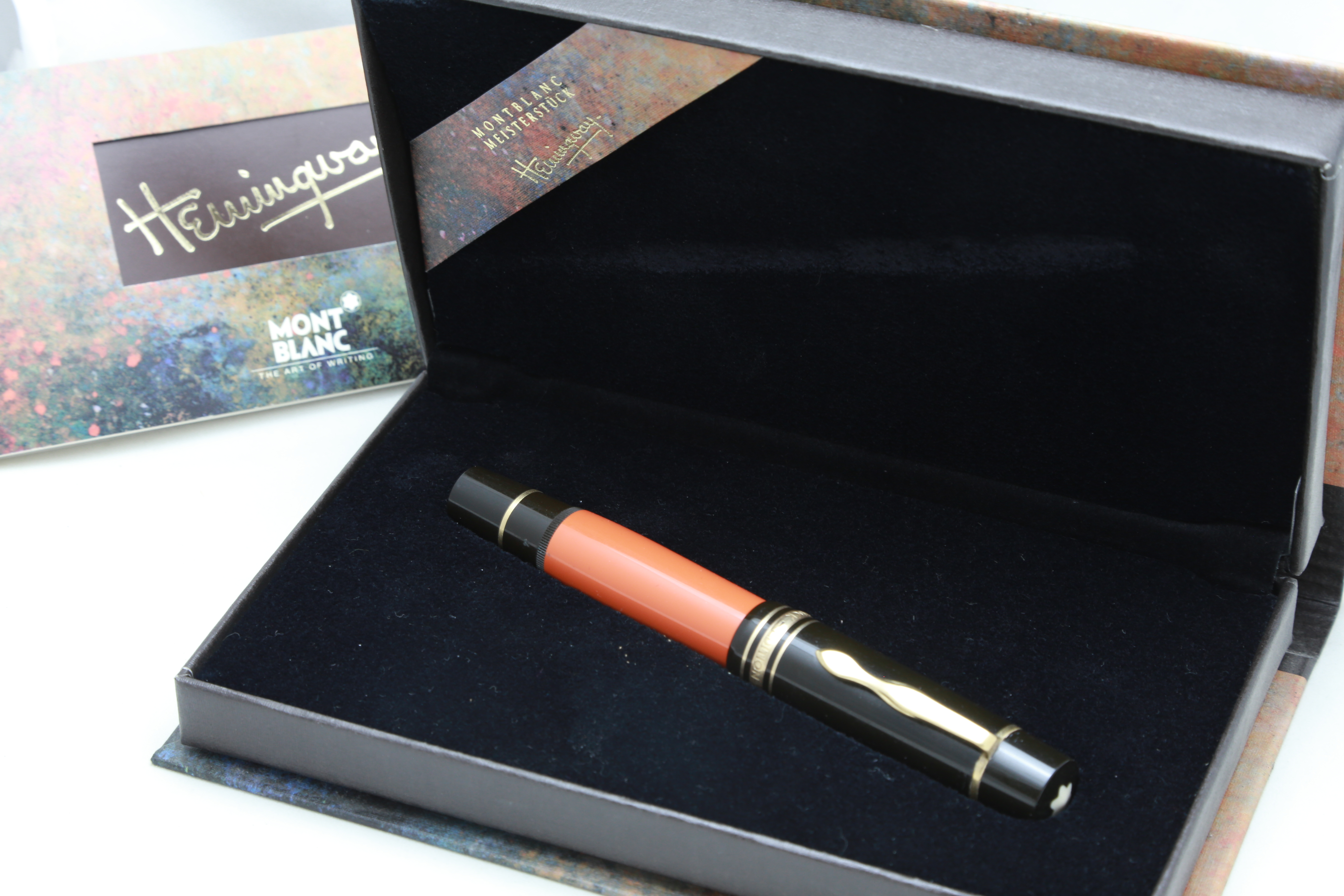 Però è proprio l’aspetto estetico a rendere a parer mio la Hemingway una meravigliosa creazione di Montblanc. Una 139 un po’ più sbarazzina ma non pacchiana, una combinazione di colori che non sono il classico nero senza cadere nell’ eccessivo. Del resto quante case si sono “ispirate “ a lei con fusto arancione e cappuccio marrone o nero. Mai nessuno però ha saputo fare un marrone così scuro da sembrare quasi nero (o un nero che nero non è).