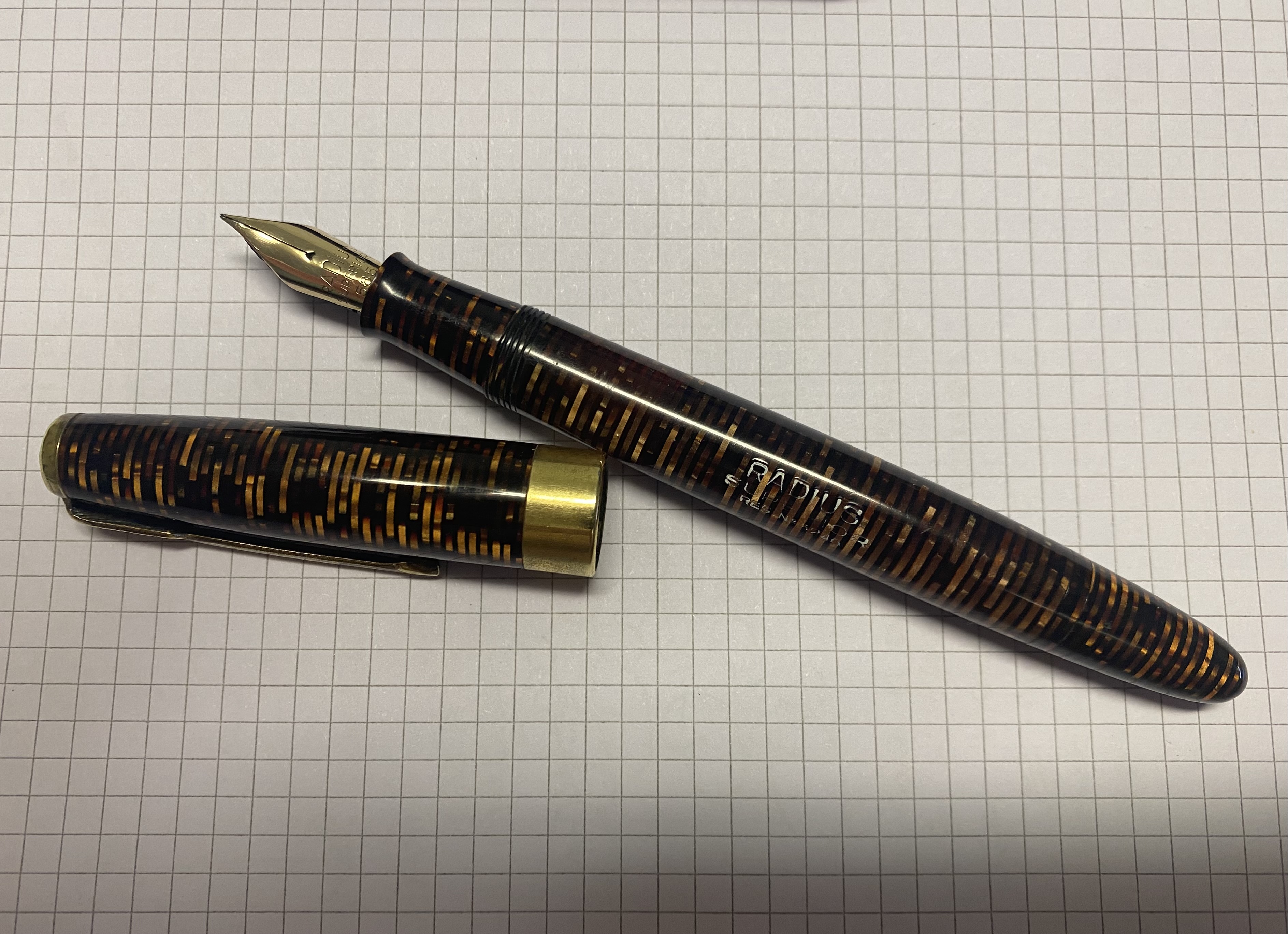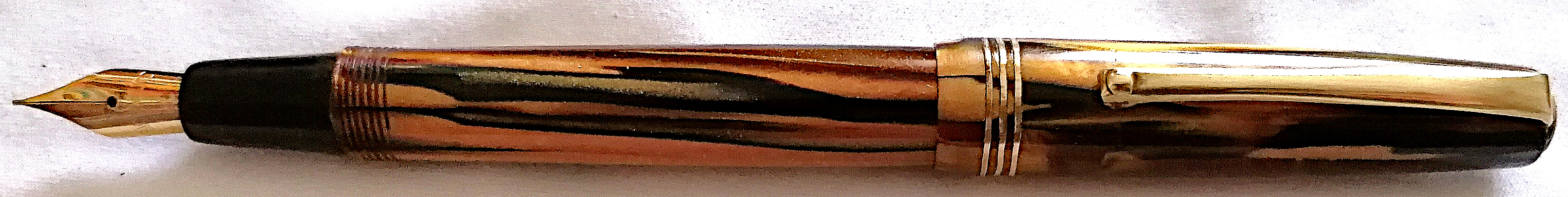 incisioni "chevron" delle Duofold, mentre il pennino è un hooded nib Parker 14 kt England # 4.