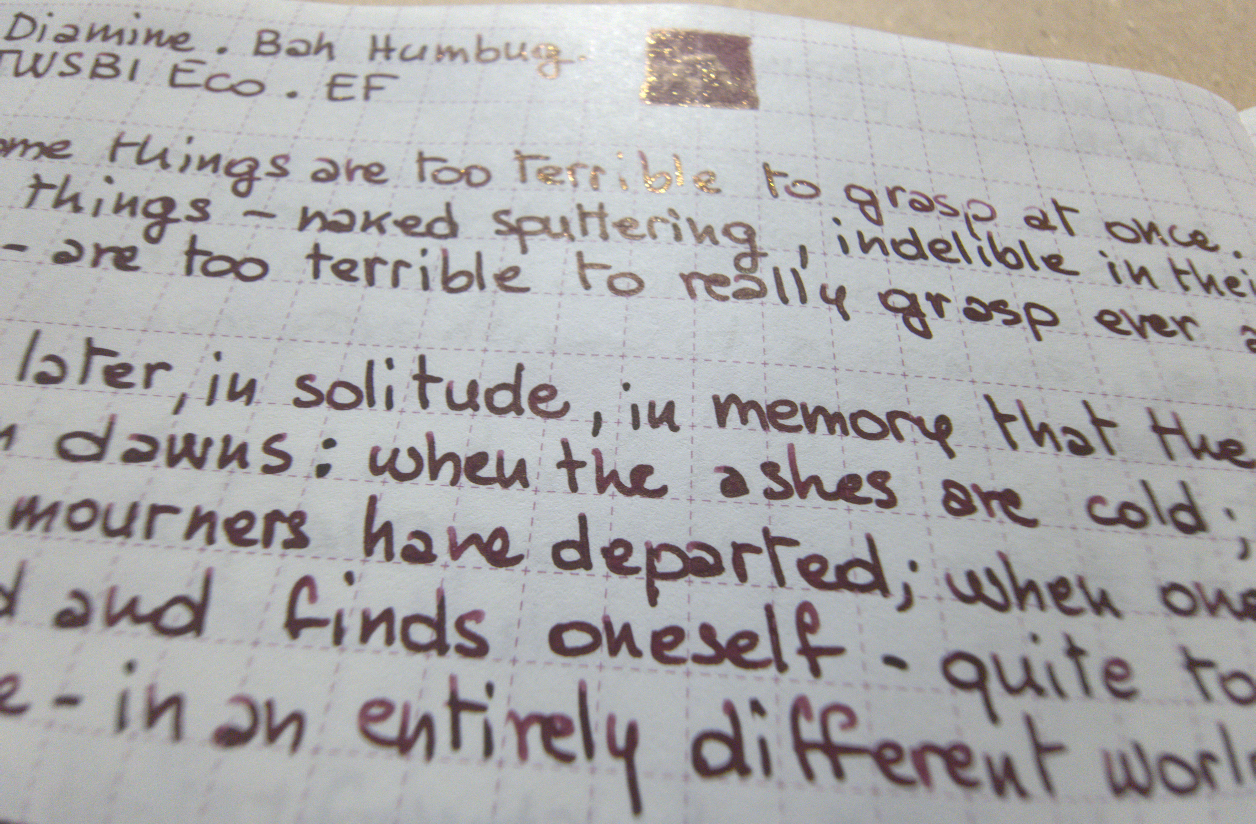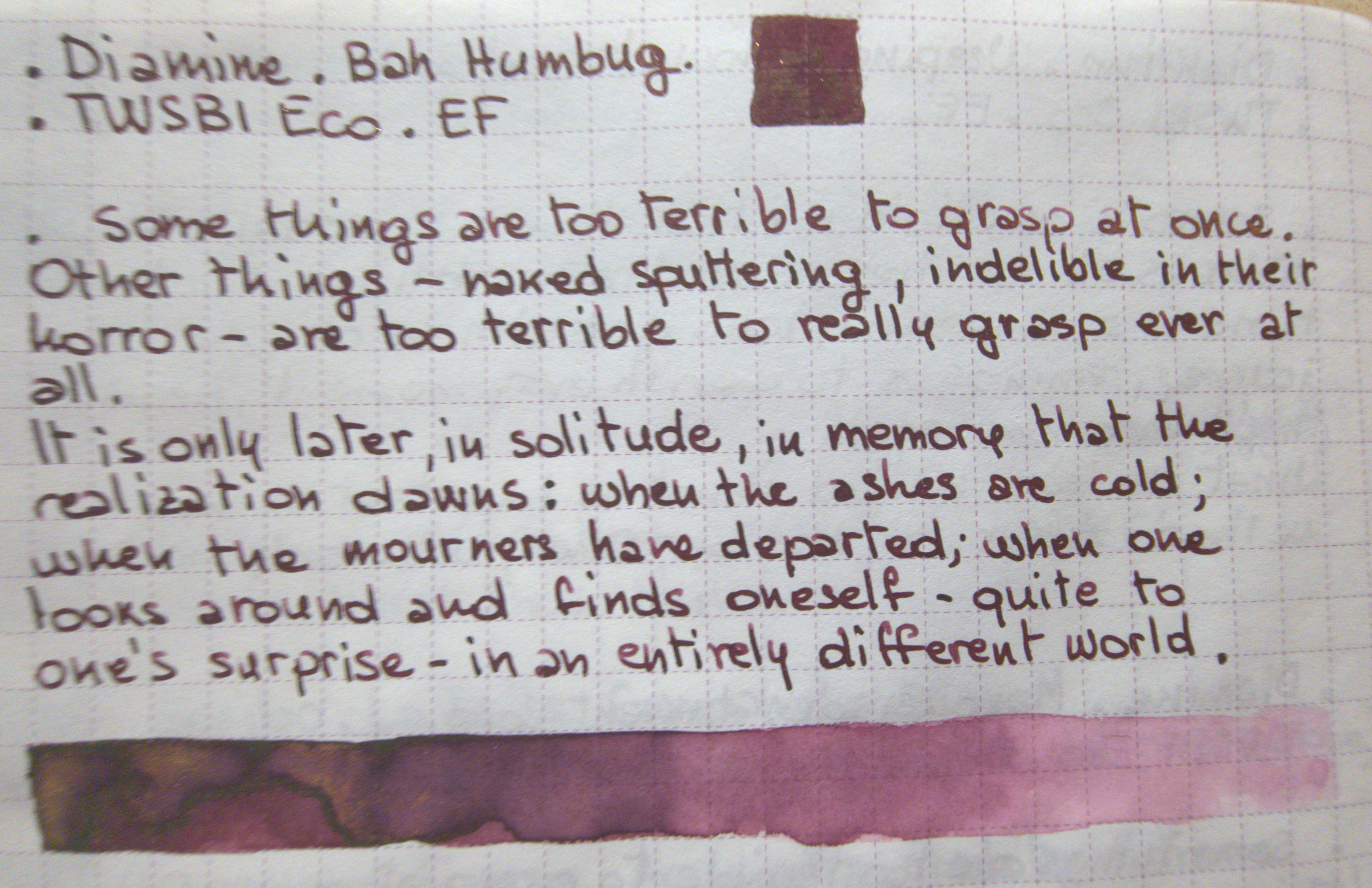 Questo è uno degli inchiostri dell'Inkvent 2023 che sono nella mia wishlist e non mi decido mai a comprare. Un po' perché uso pochissimo il rosso, un po' perché la desaturazione, nello scritto, fa emergere un poco di sottotono marrone che mi frena.