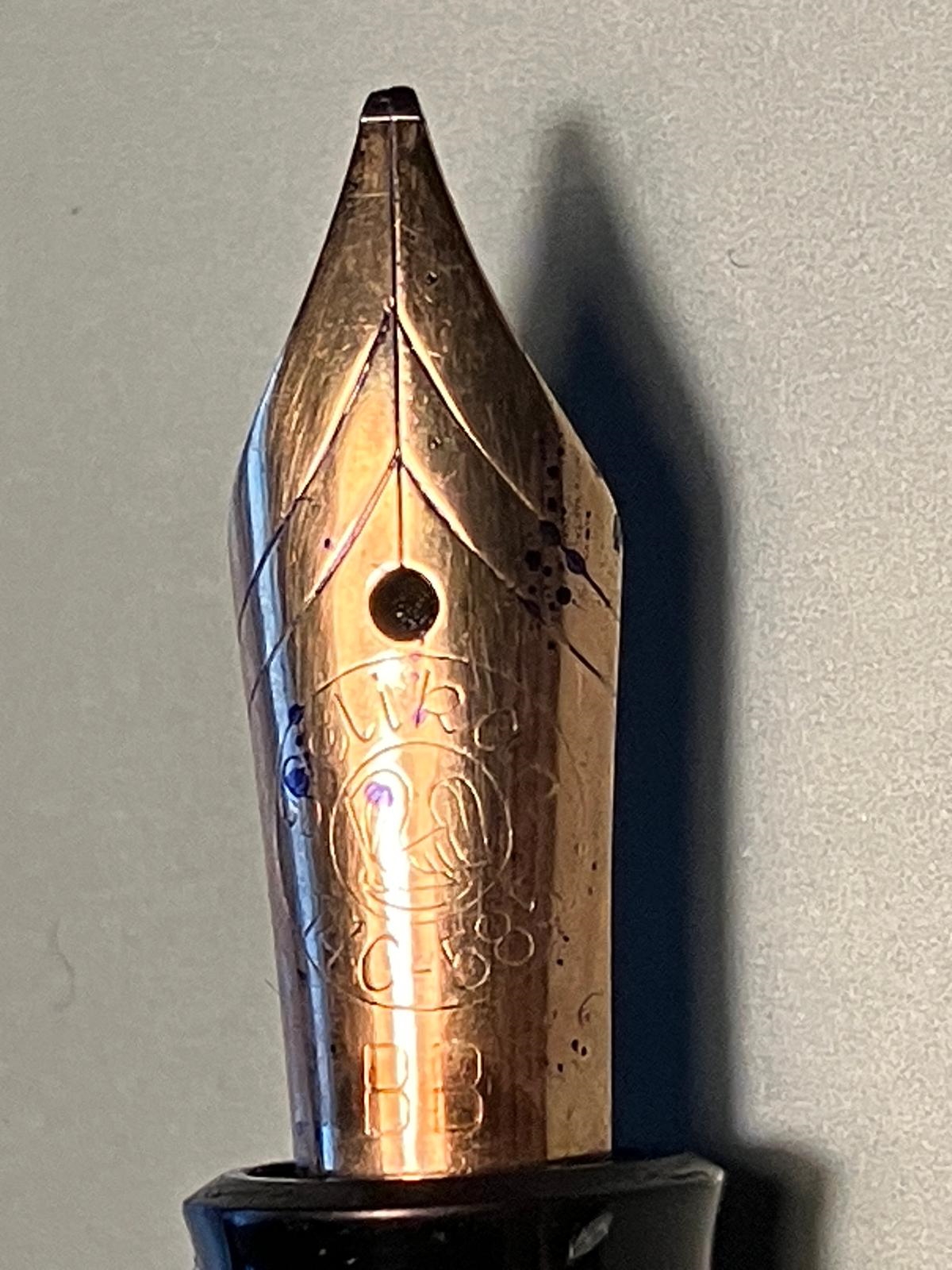 Questo è dovuto al fatto che i pennini Pelikan vintage nascevano con l'iridio piatto, non a pallina.