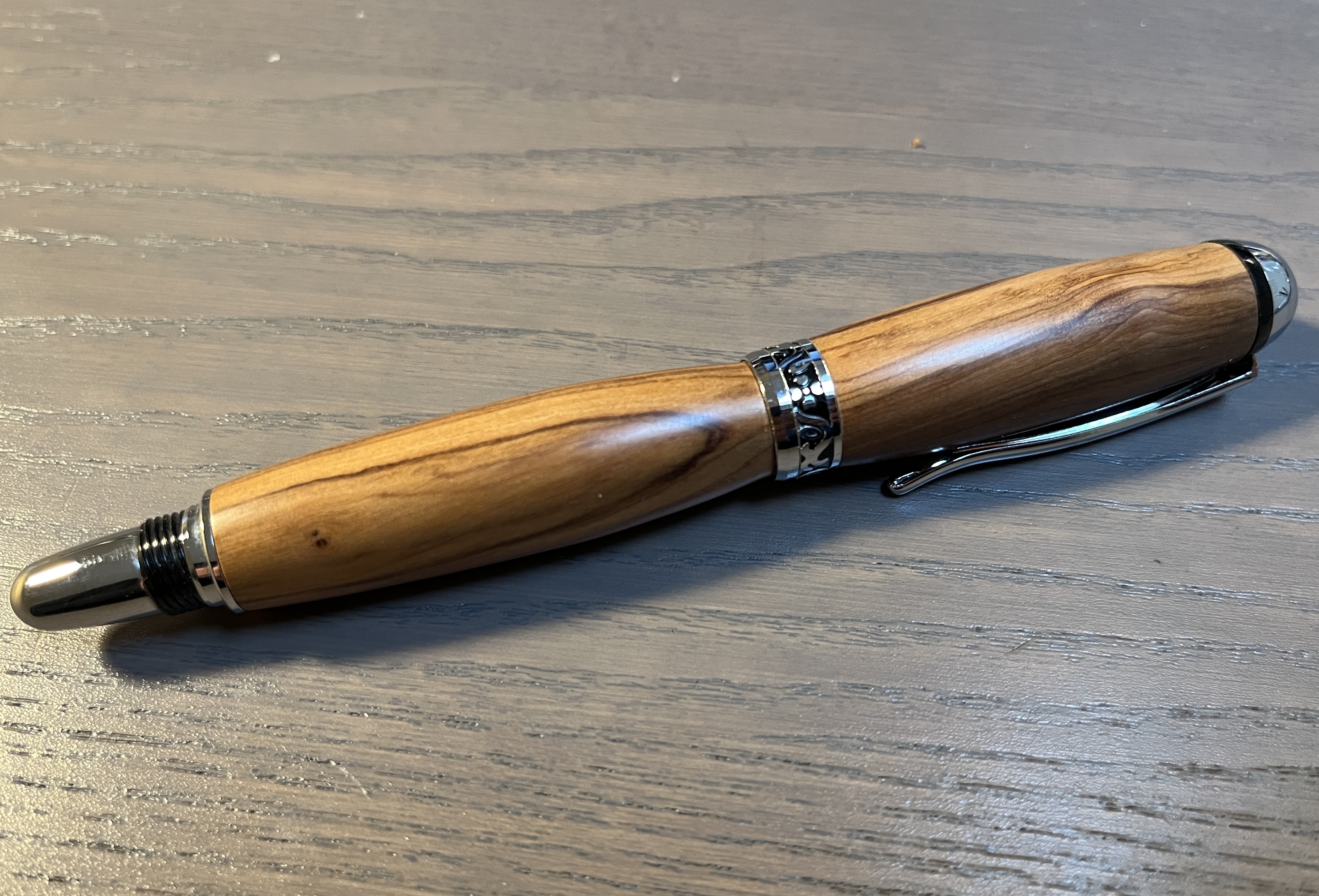 Qualche tempo fa, mi é stata regalata questa penna fabbricata artigianalmente con legno tornito.