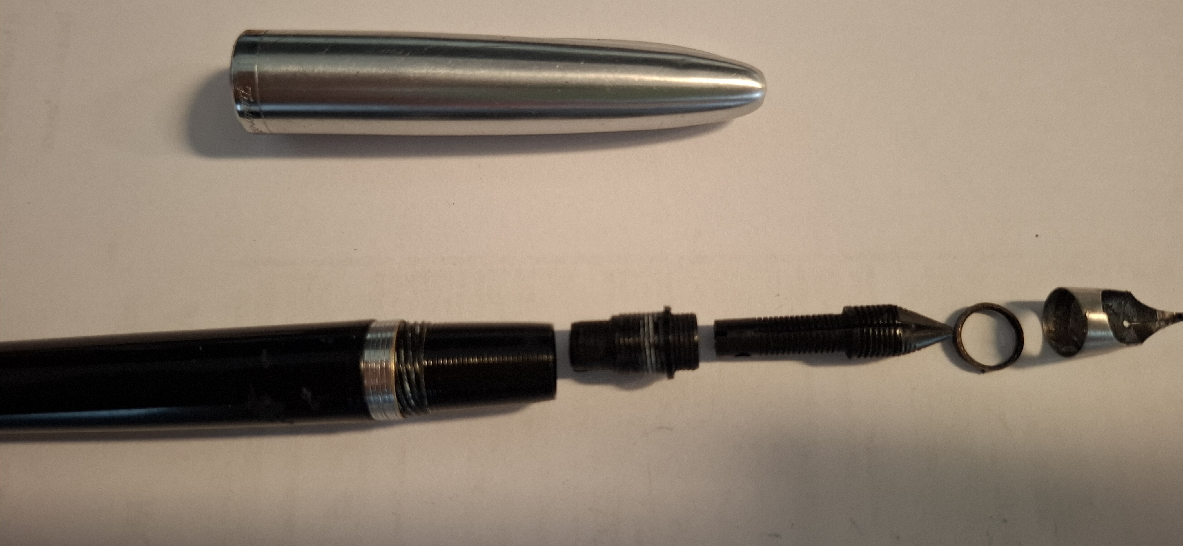 Il meccanismo di caricamento mi sembra garantire sufficiente tenuta, graffi e crepe in qualche maniera mi appaiono sanabili; quello che mi fa problema è il rimontare, bloccandoli, pennino e alimentatore nella parte anteriore della sezione: non c'è verso di fissarli.