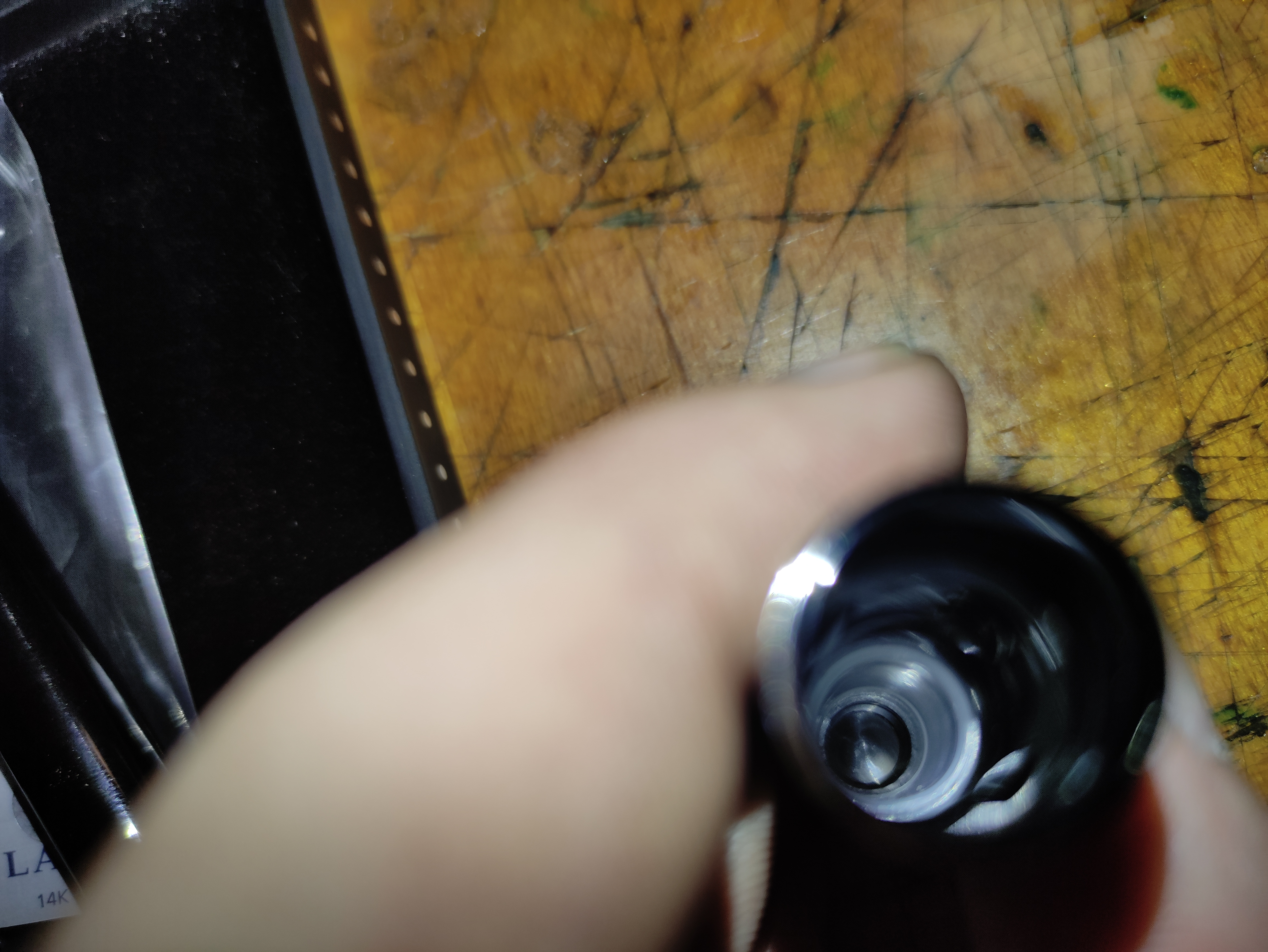 ho immediatamente disassemblato la penna per verificare quanto è semplice farlo e se l'alimentatore è effettivamente adatto al chou kuro. Devo dire che è stato facilissimo staccare l'alimentatore, ho semplicemente usato un elastico latex piatto ed è stato molto facile sfilarlo a mano.