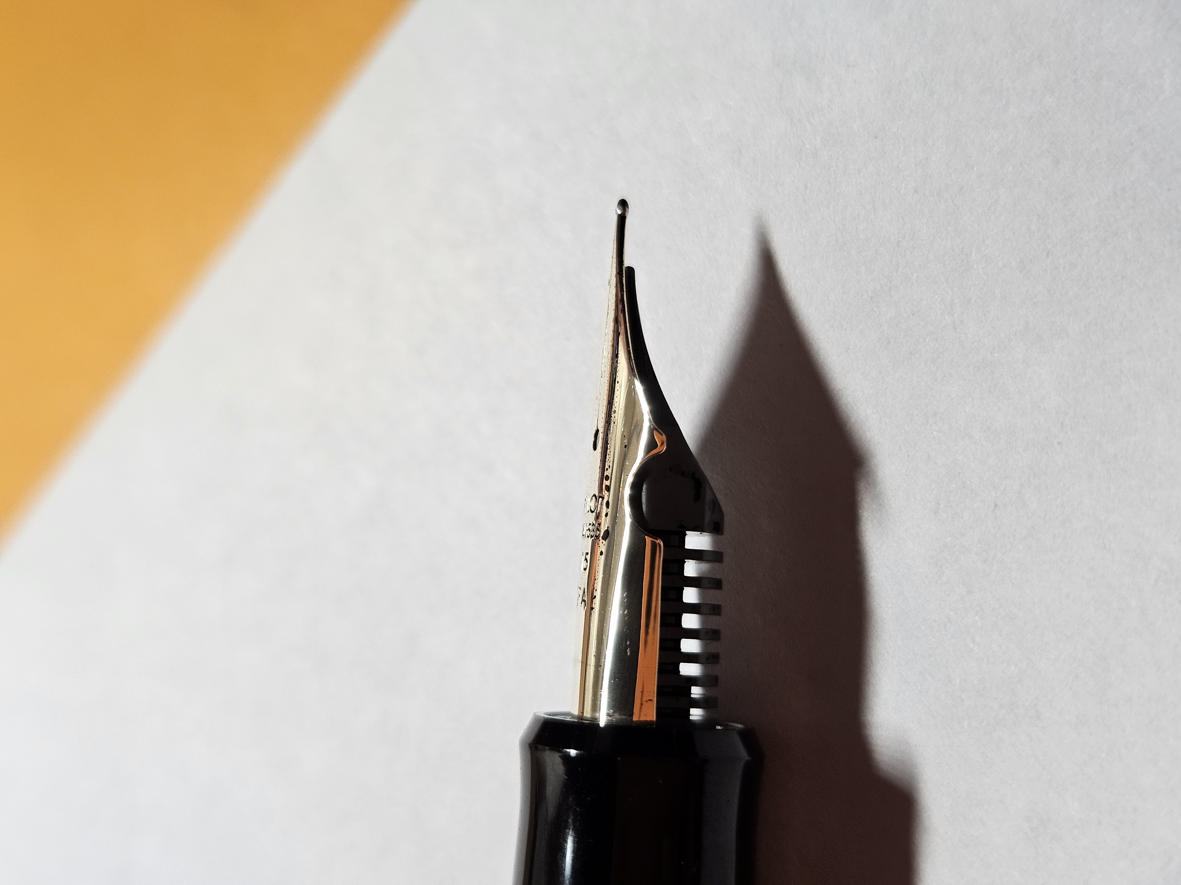 Carico il converter con Herbin Perle Noire e faccio qualche prova di scrittura. Il pennino è scorrevole ed il flusso sembra buono, all'inizio, mi accorgo ben presto che però c'è qualcosa che non va. Alcuni tratti (in particolare gli ascendenti laterali) spesso mancano d'inchiostro.