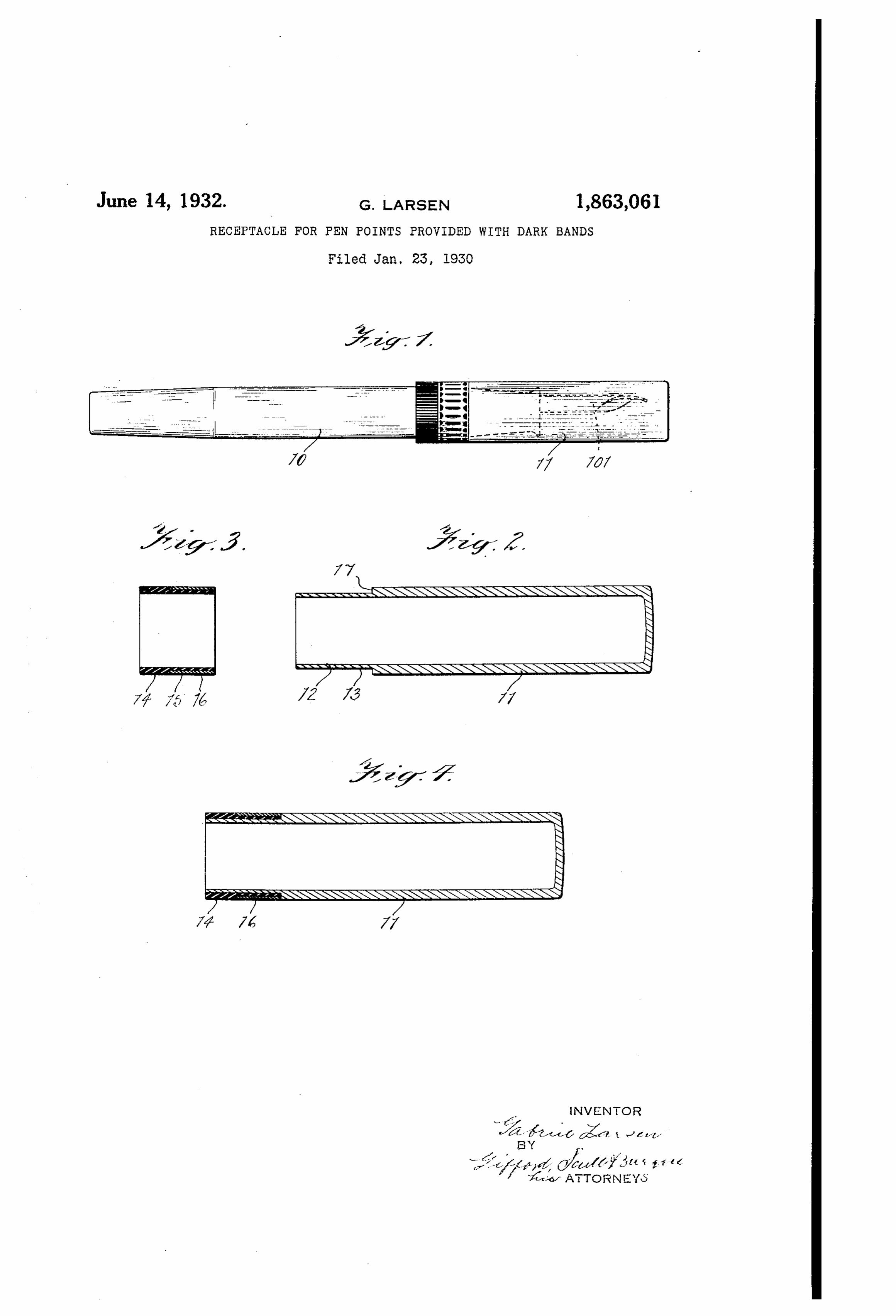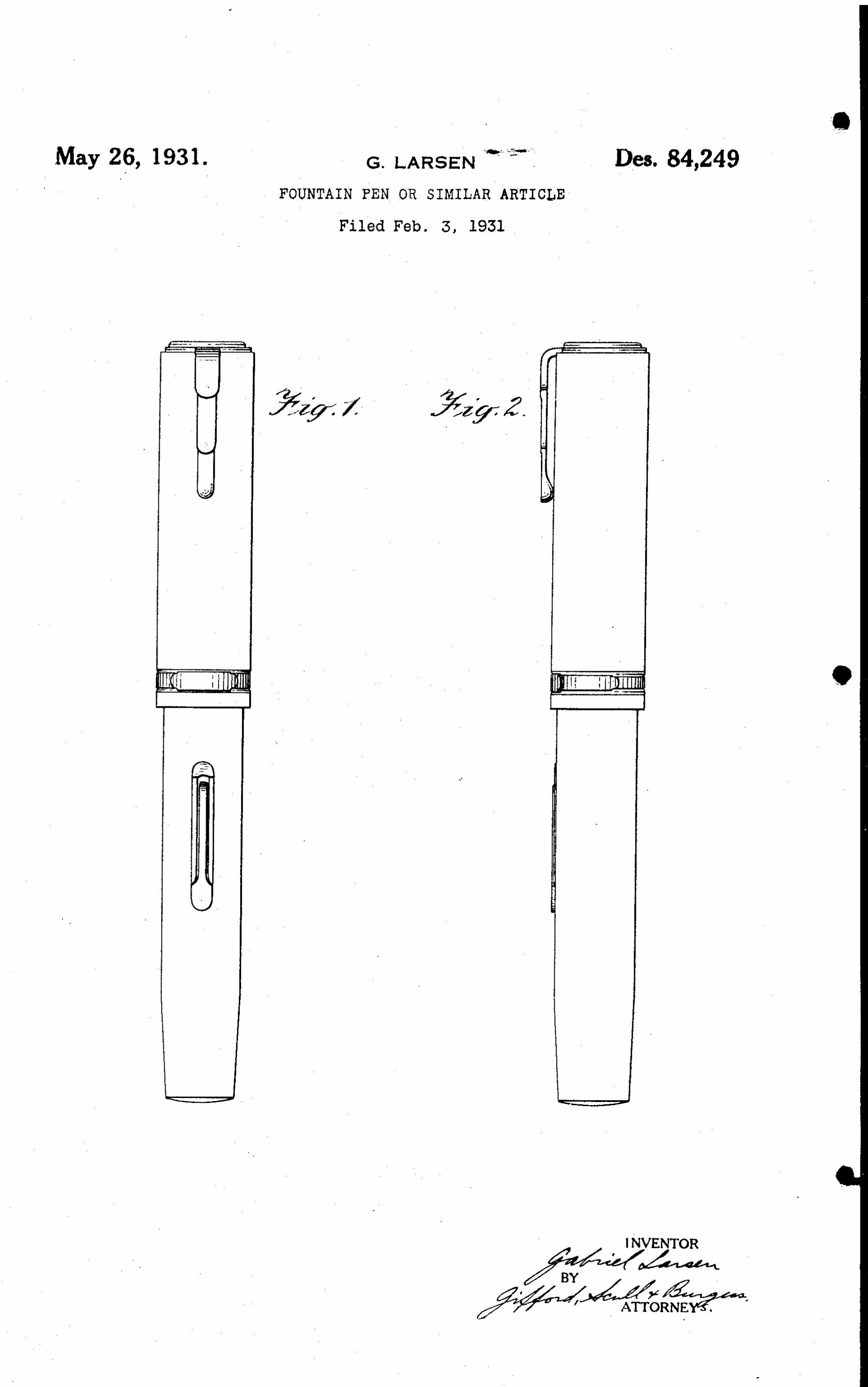 Come si può notare dalle date presenti sul documento sopra allegato (ma ancor meglio da quelle relative alla <Patrician> e alla <nuova #94>, tutte creazioni di Gabriel Larsen), la gestione dei brevetti negli USA all’inizio della Grande Depressione fu comprensibilmente sui generis, con penne prima lanciate sul mercato e solo in seguito protette dalla “richiesta di brevetto”, e ancora più tardi “brevettate”, con ritardi fino a oltre due anni!