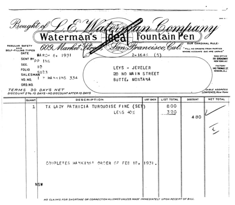 Waterman’s invoice 1931.03 (Fonte PCA)