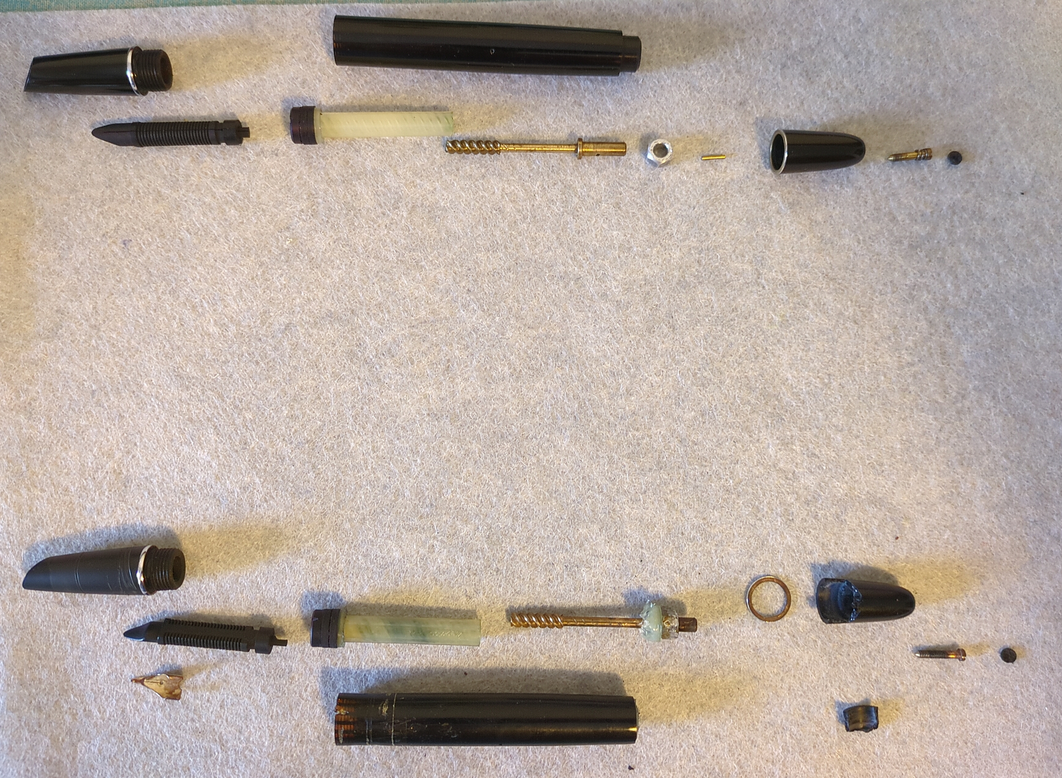 Ho già smontato la penna, la sto pulendo per bene e mi accingo al ripristino utilizzando ove necessario i ricambi.