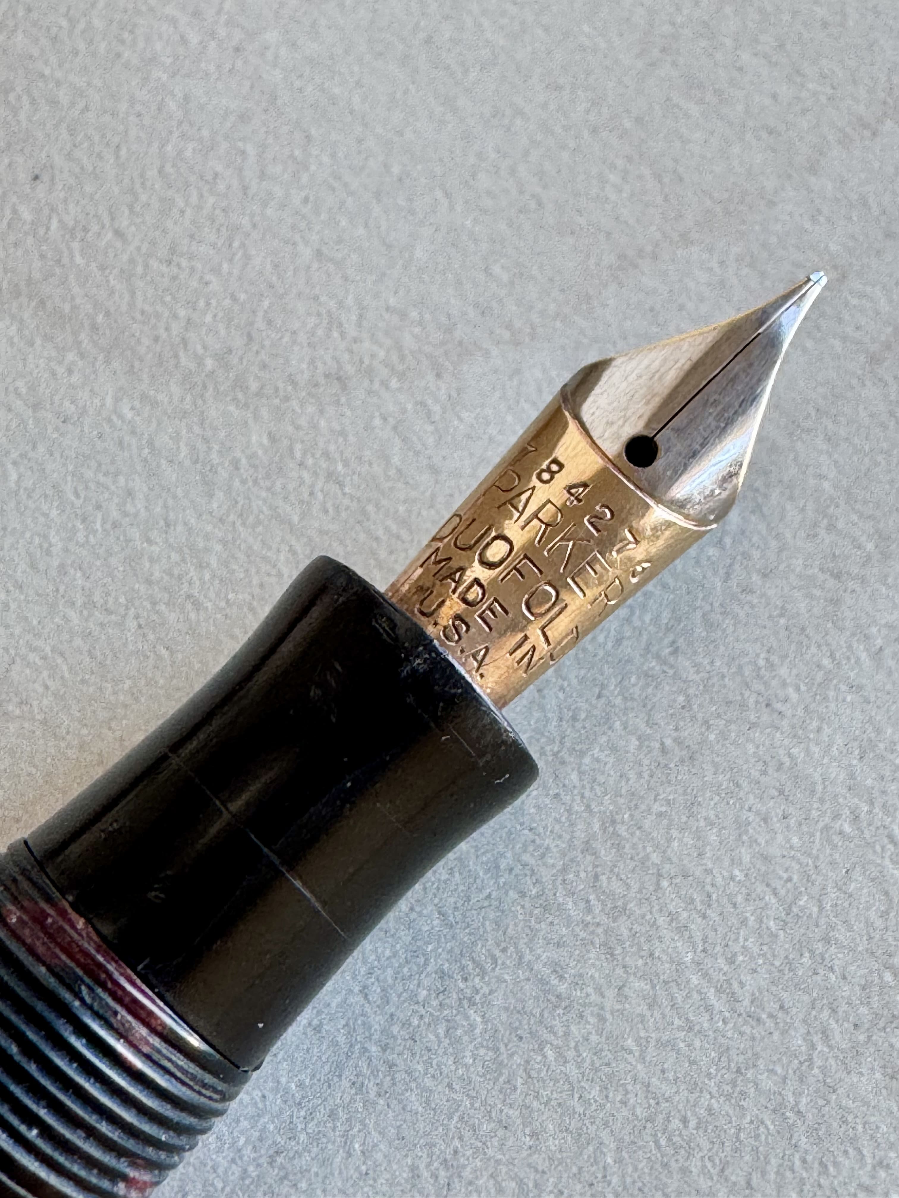 Questa sera vi disturbo per chiedervi maggiori info su questo mio pennino, in quanto sono riuscito a trovare pochissime informazioni… (su una Parker Duofold Burgundy)