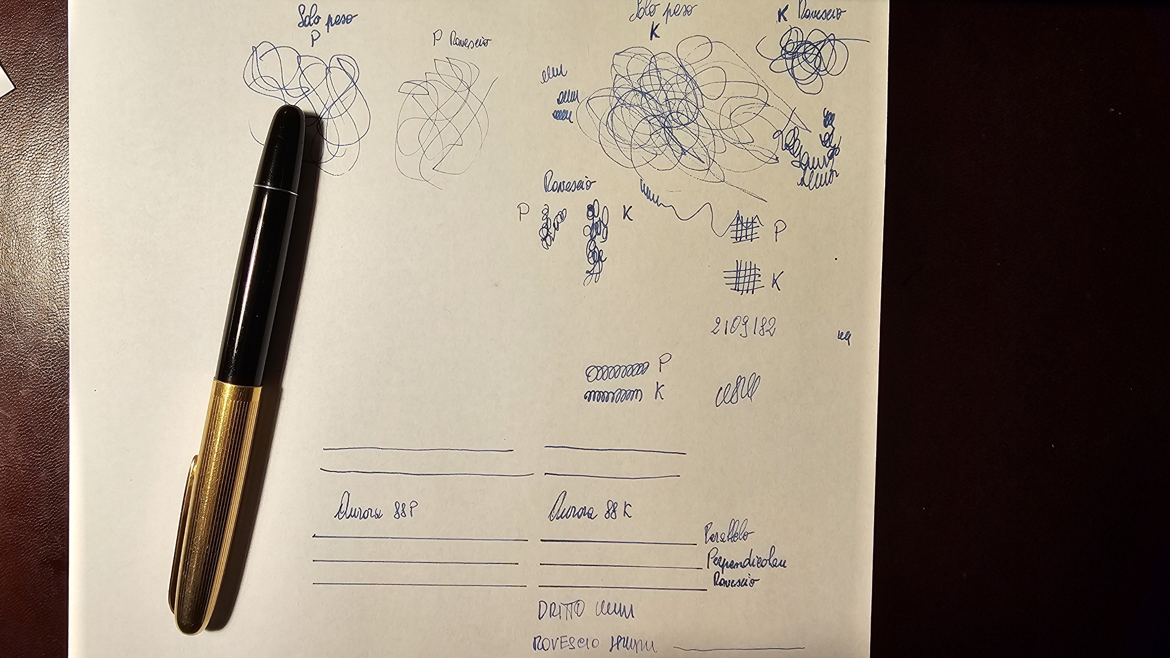 Il pennino, come anche riportato sul gruppo della scrittura è "HM": a me non sembra poi tanto rigido ma, dato che non voglio rischiare di rovinare qualcosa, non provo a premere. Il tratto è comunque molto sottile, come l'altra Aurora "M" della quale dispongo.