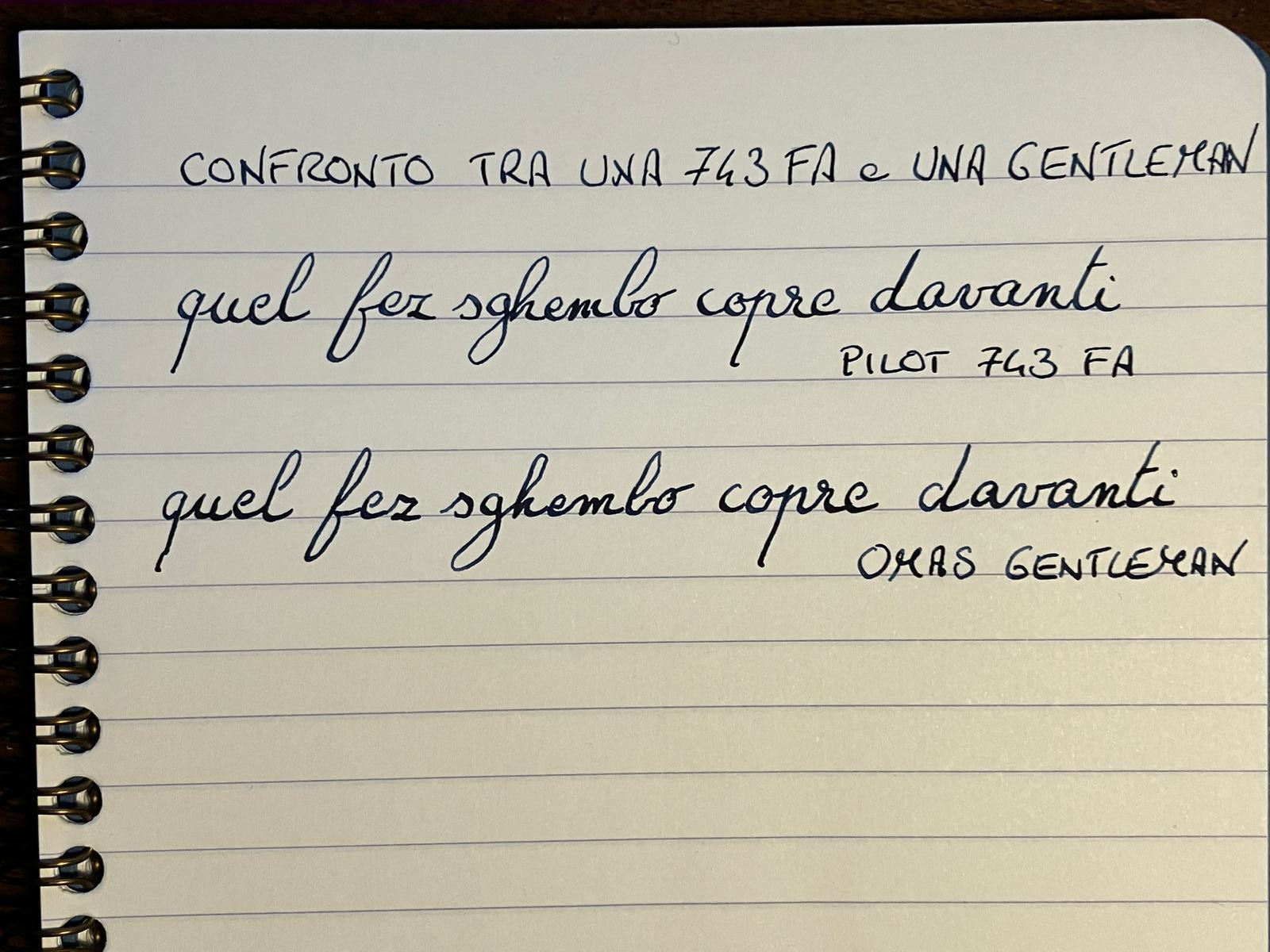 Se l'inchiostro è il medesimo, pur tenendo conto del delta di forza impressa nella scrittura, sembra che il pennino della Omas sia molto più bagnato- E solo una mia impreessione ? Se vero potrebbe influire sulle variazioni di tratto.sansenri ha scritto: ↑lunedì 13 ottobre 2025, 18:33 un confronto tra una 743 FA e una (delle mie) Omas Gentleman (perdonate la mano poco ferma...).
