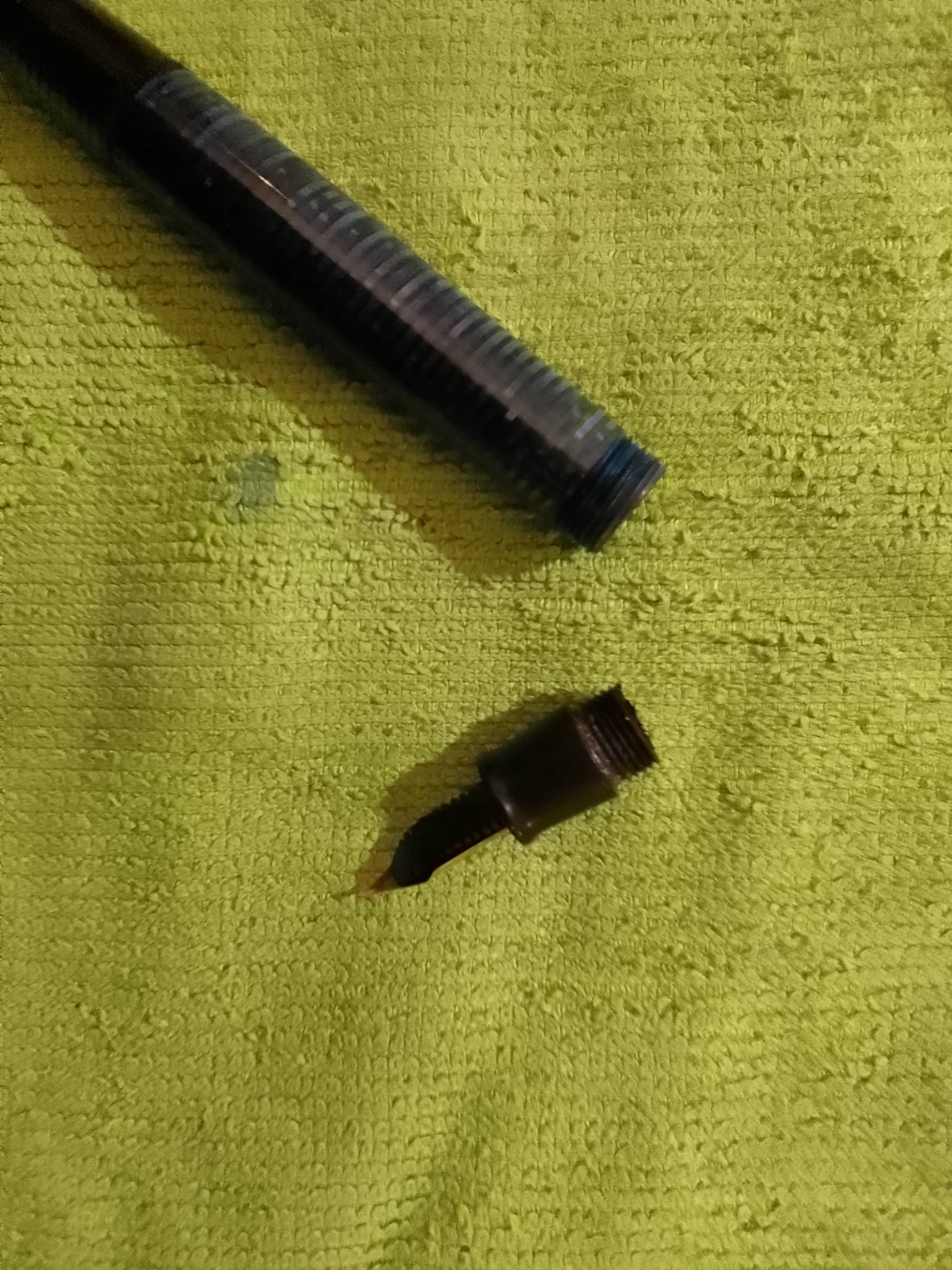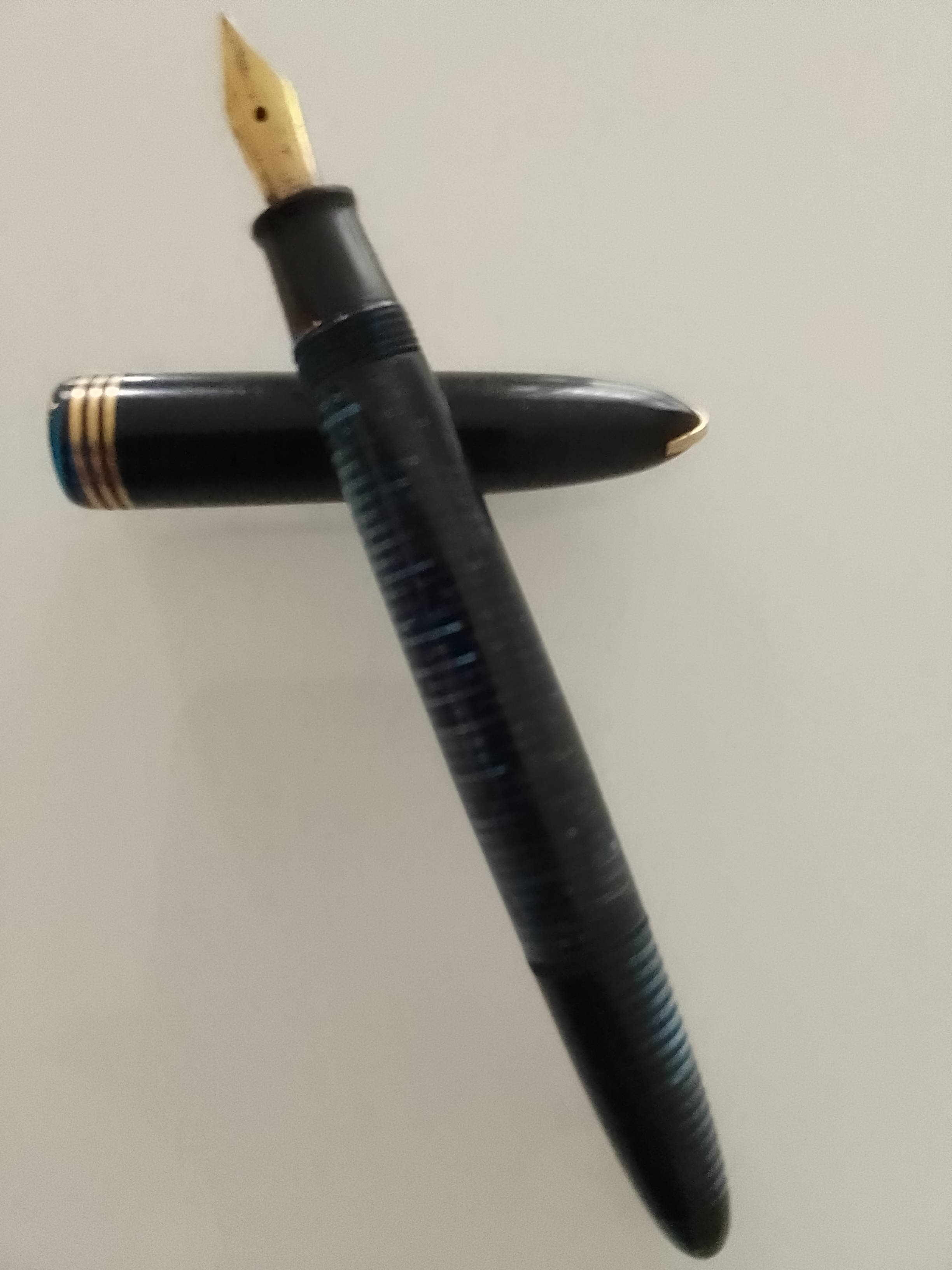 Non avendo trovato accoppiamenti similari sia in internet che ne forum, chiedevo se il pennino sia coevo o sia stato sostituito, la penna è in condizioni più che buone, non ha segni di ossidazione, pare conservata bene e non sembra rimaneggiata cioè che sia stato sostituito il pennino.