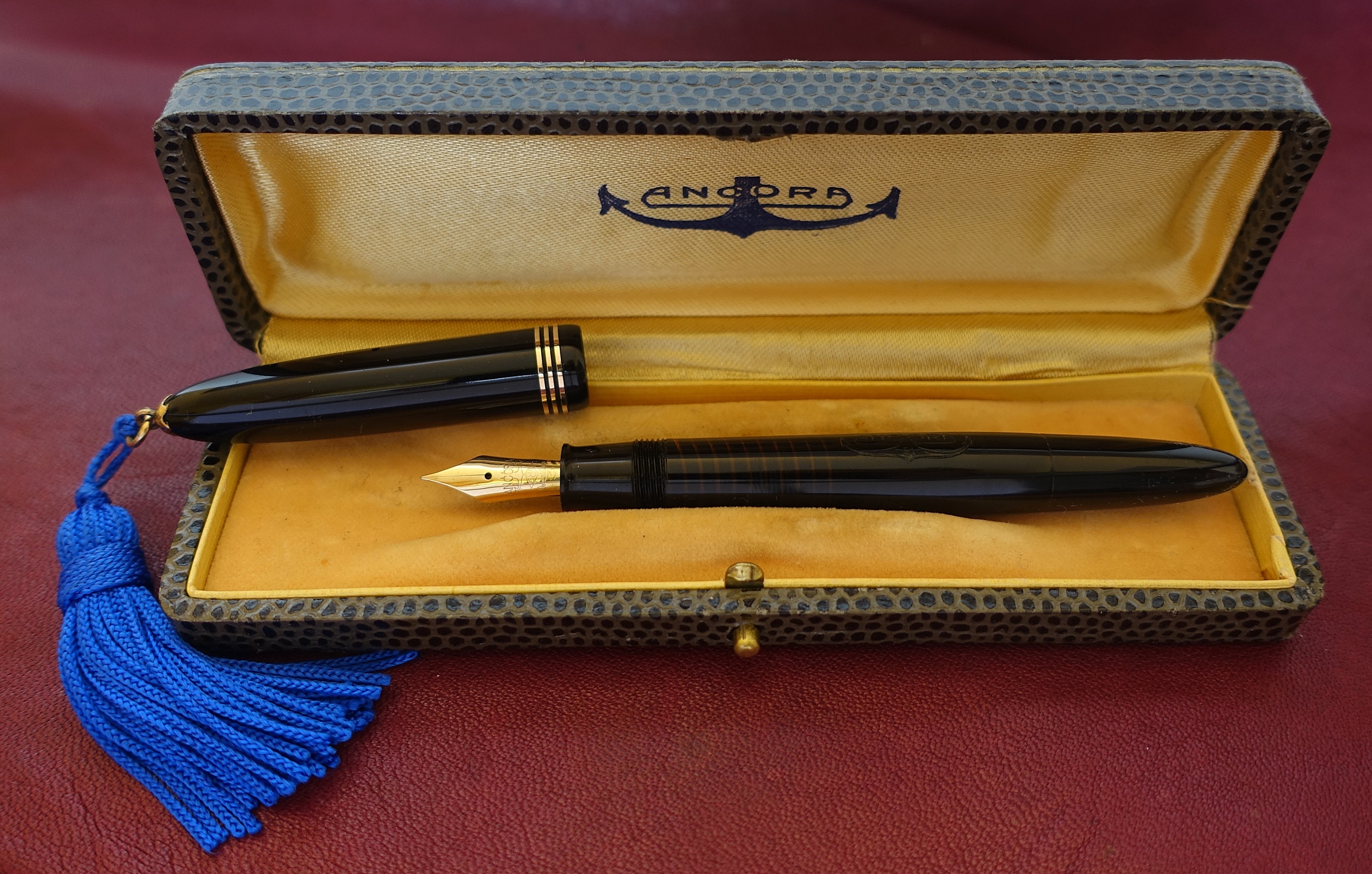 Salve, ho acquistato recentemente una vecchia stilografica Ancora, presumo sia degli anni '50, il pennino è in oro 14 kt e reca la dicitura Osmia.