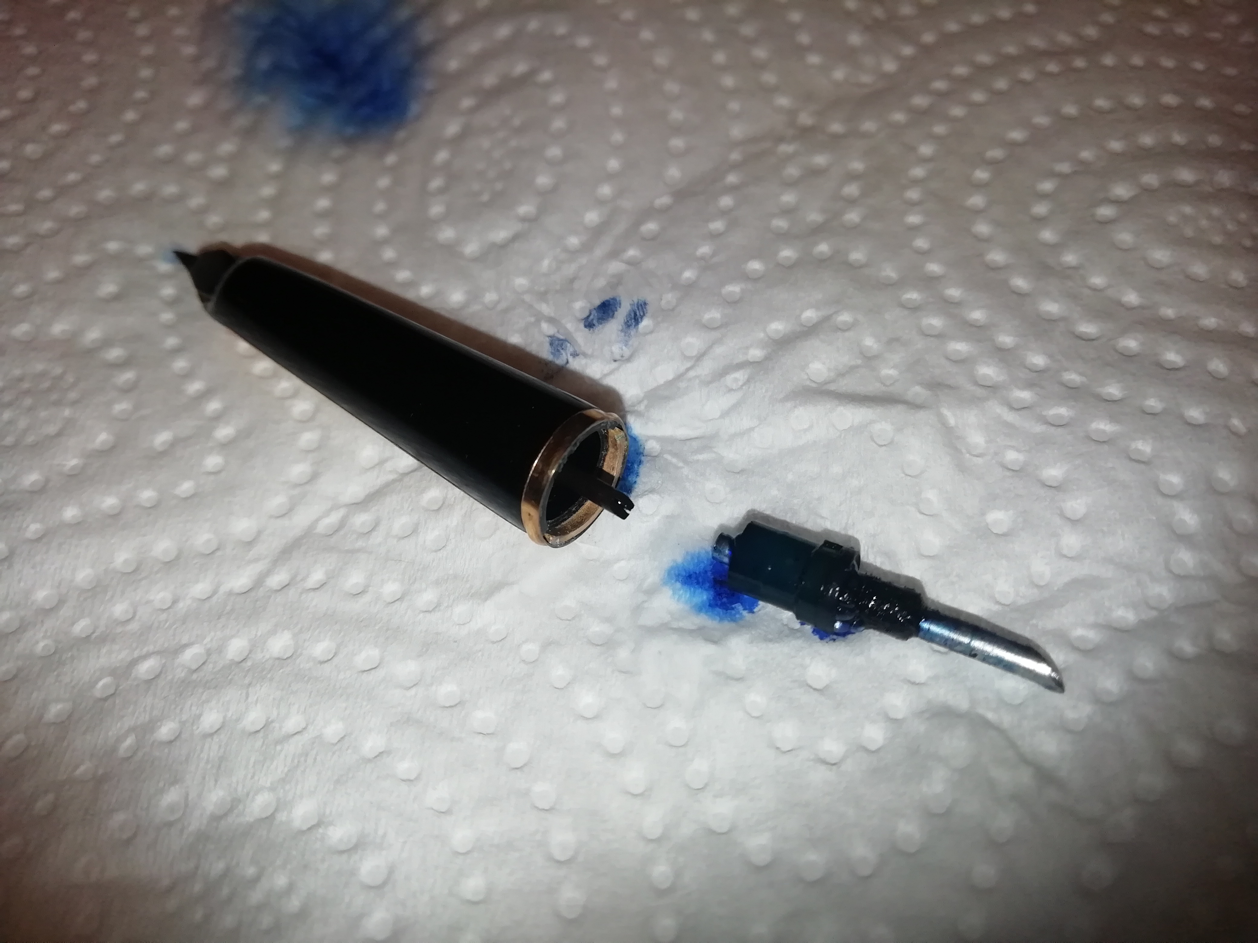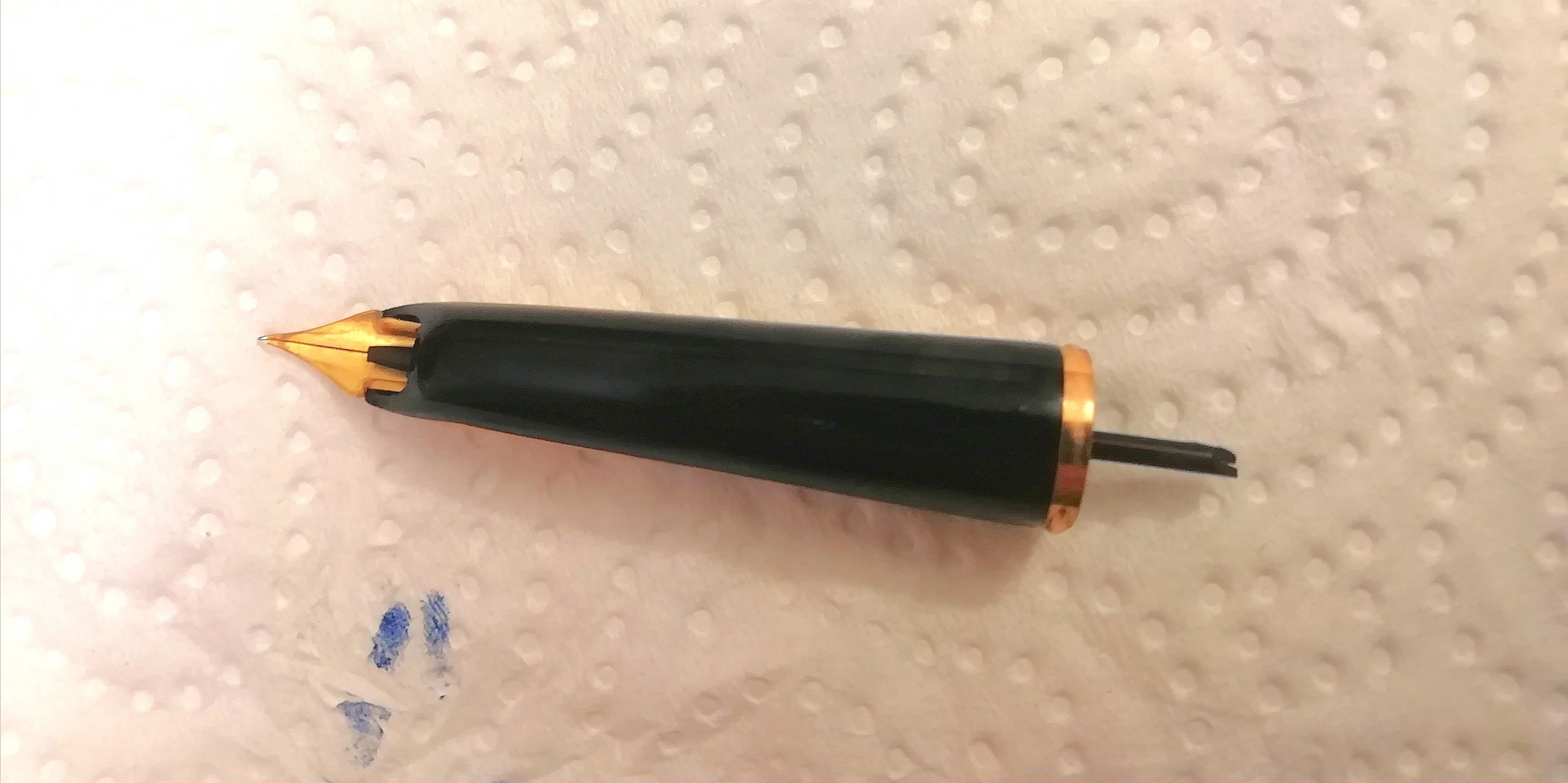 Strano anche che si rompano lì, mi viene difficile capire che tipo di sollecitazione possa ricevere in quel punto; la penna era praticamente nuova e intera quando l'ho trovata, e io non ho certo le mani di un maniscalco.