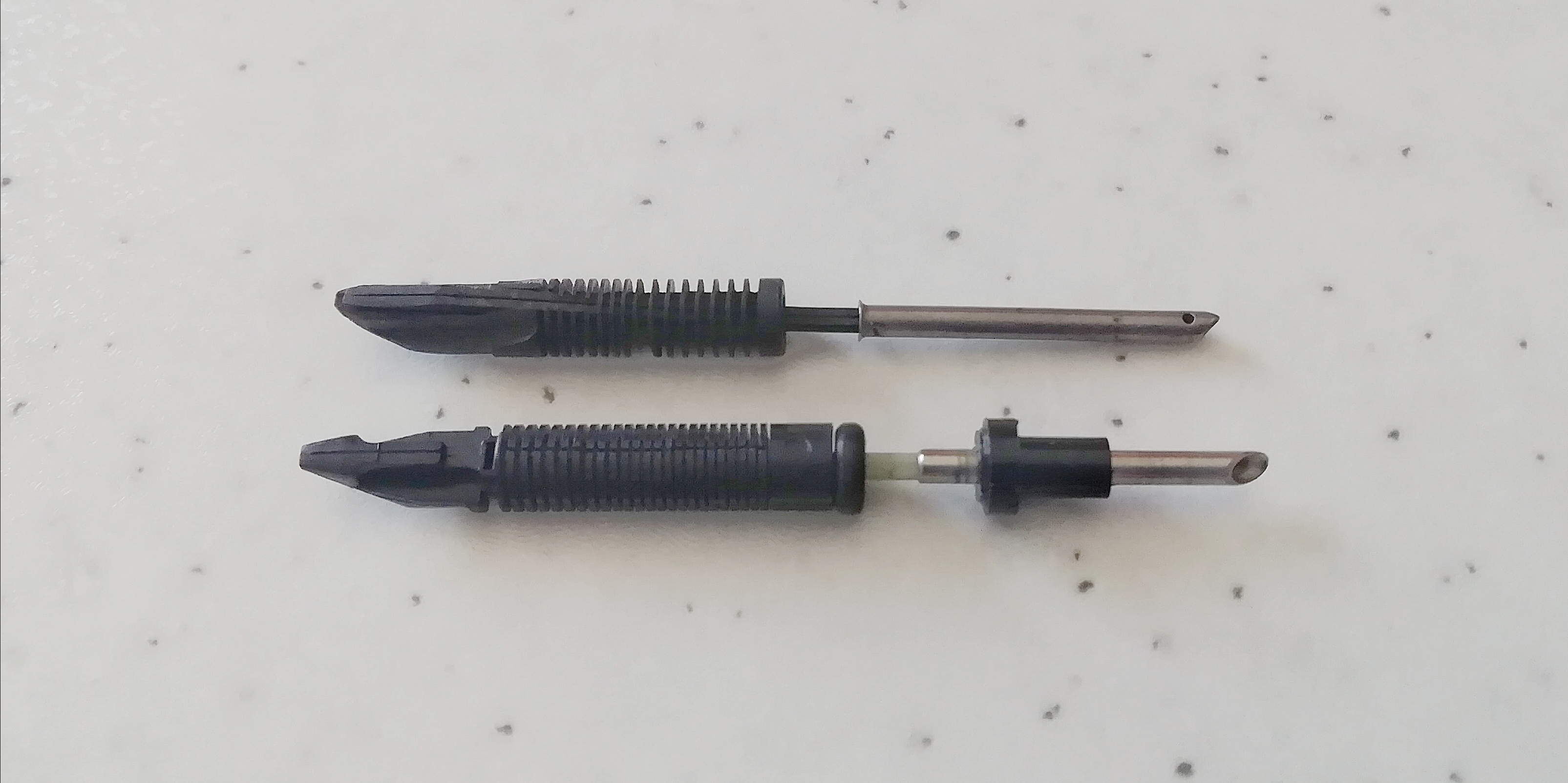 Nella foto sopra durante lo smontaggio si vede bene che questo esemplare ha la punta rotta (non per colpa mia). Funziona lo stesso, ma ovviamente non è un buon motivo per romperlo. :)