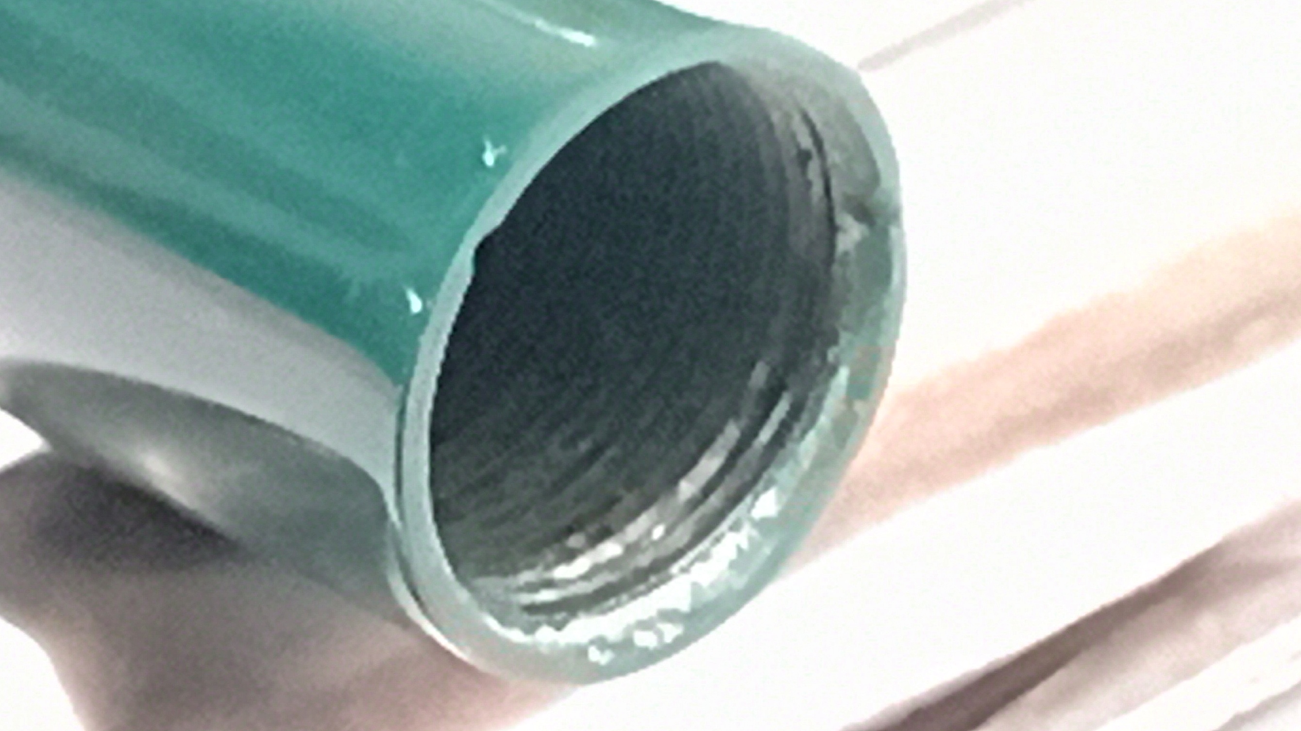 Successivamente ho cercato un sacco di PVC, che era già stato contaminato da qualche altro inchiostro dannoso, e l'ho posizionato all'uscita della pinza, applicando poi a pressione la camicia di protezione...