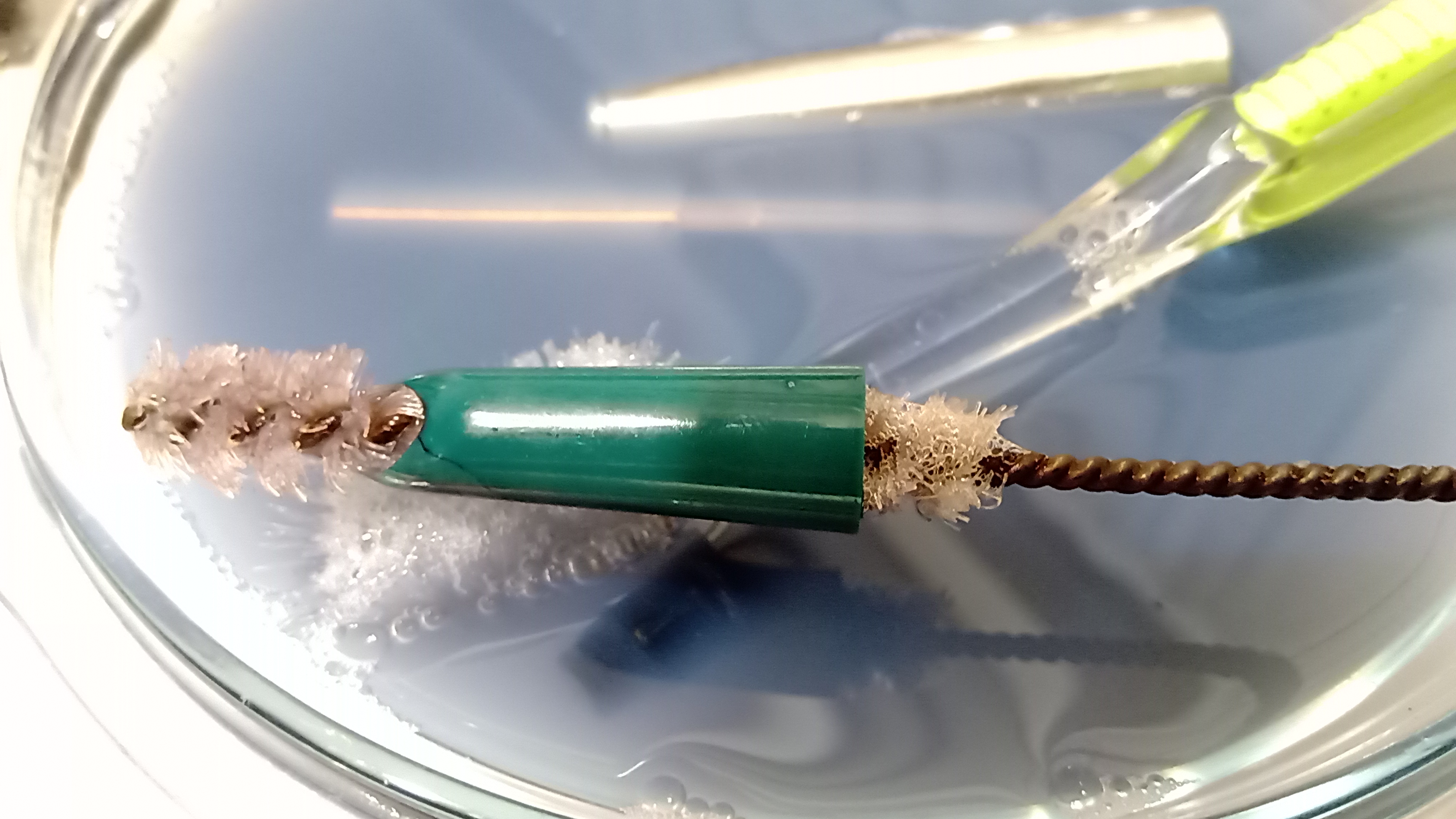 para acabar limpiando las partes internas del capuchón con un cepillo cilíndrico...