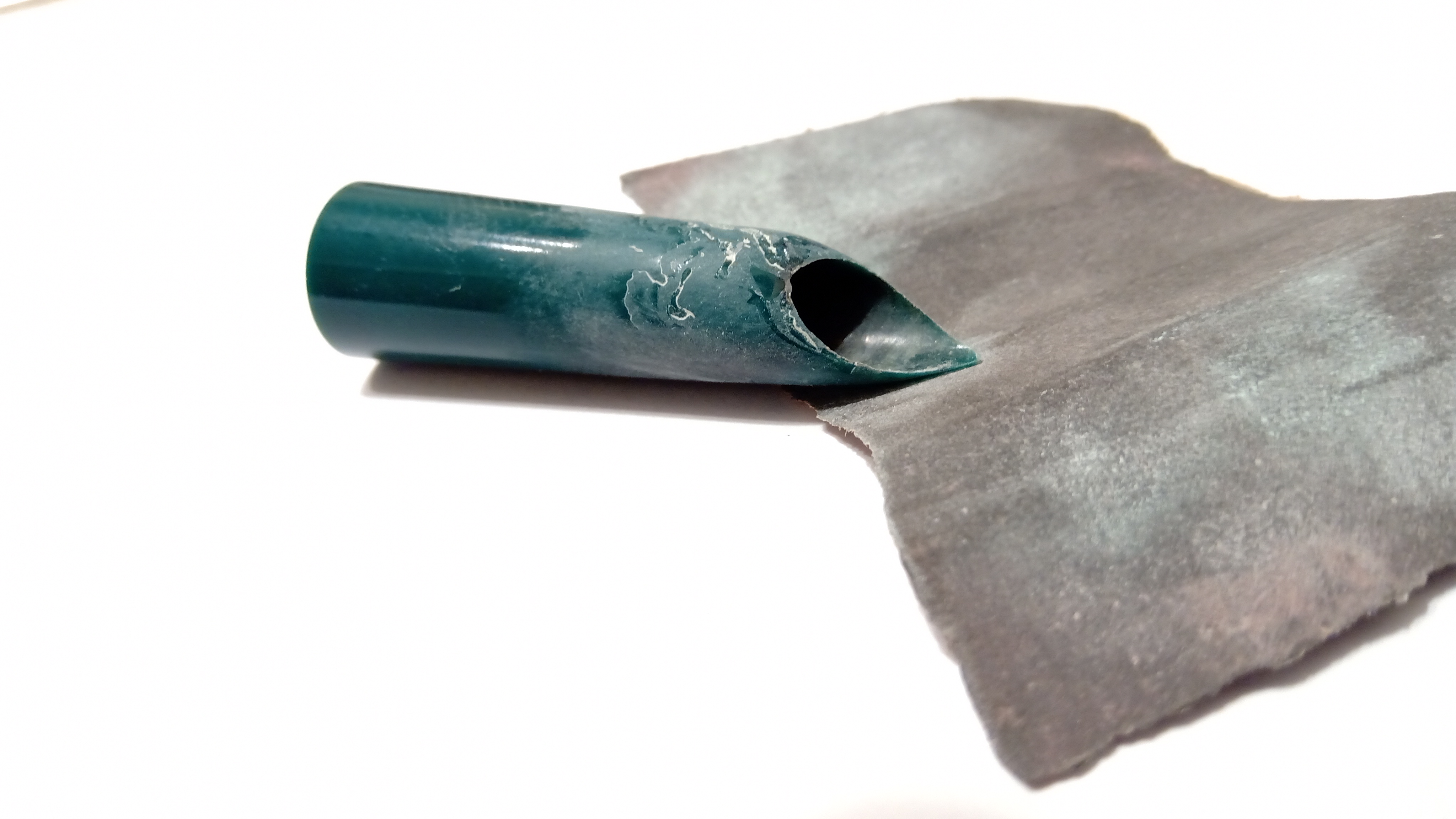 Per lavorare il pezzo ho realizzato un supporto in mylar che ho inserito all'interno del bocchino come un tubicino arrotolato, in modo da lasciarlo espandere una volta posizionato...