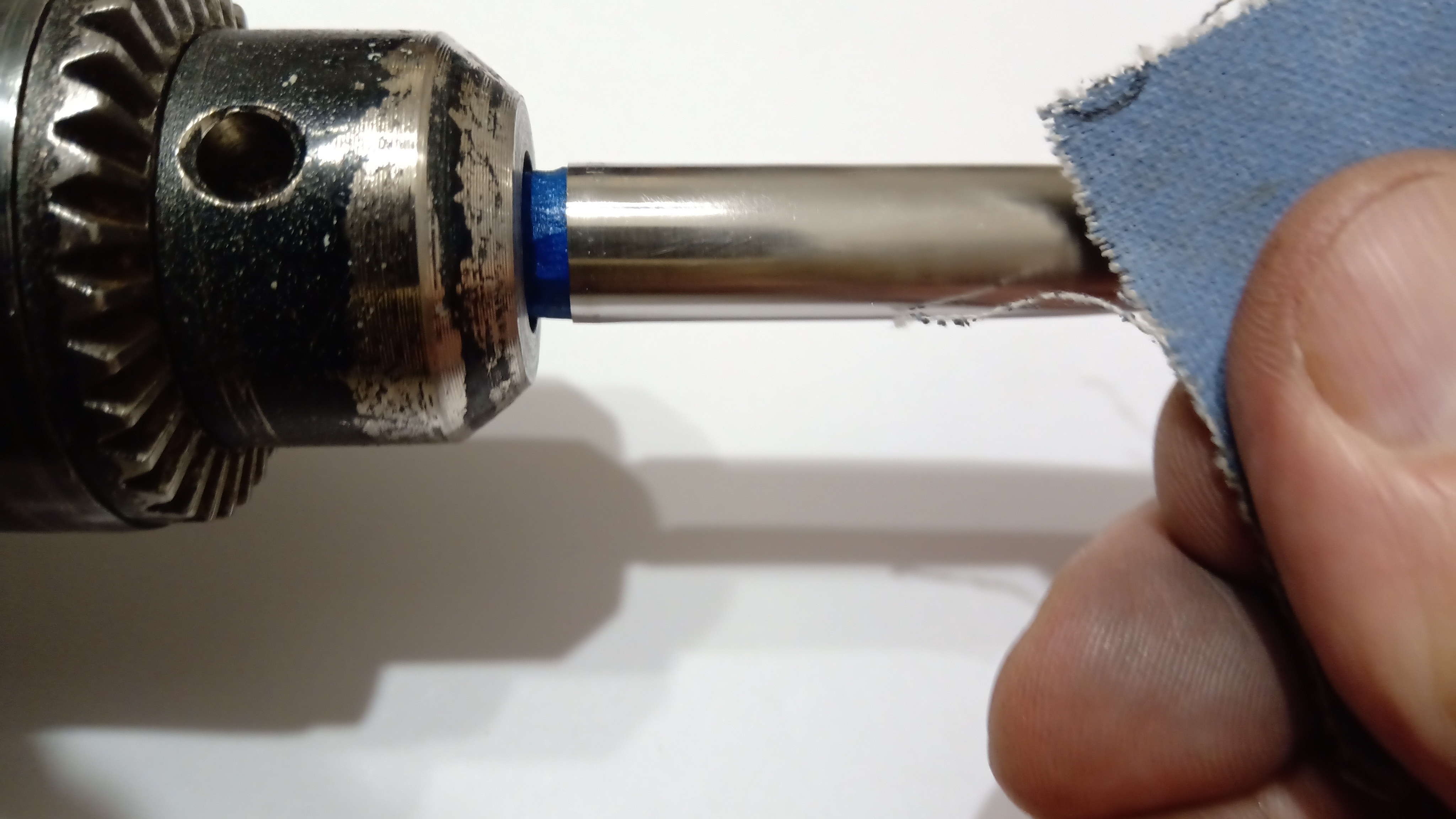 Ho quindi iniziato a lavorare sul cappuccio, posizionandolo su una barra cilindrica in acciaio che avrebbe fatto da modello, saldamente fissata in una morsa...