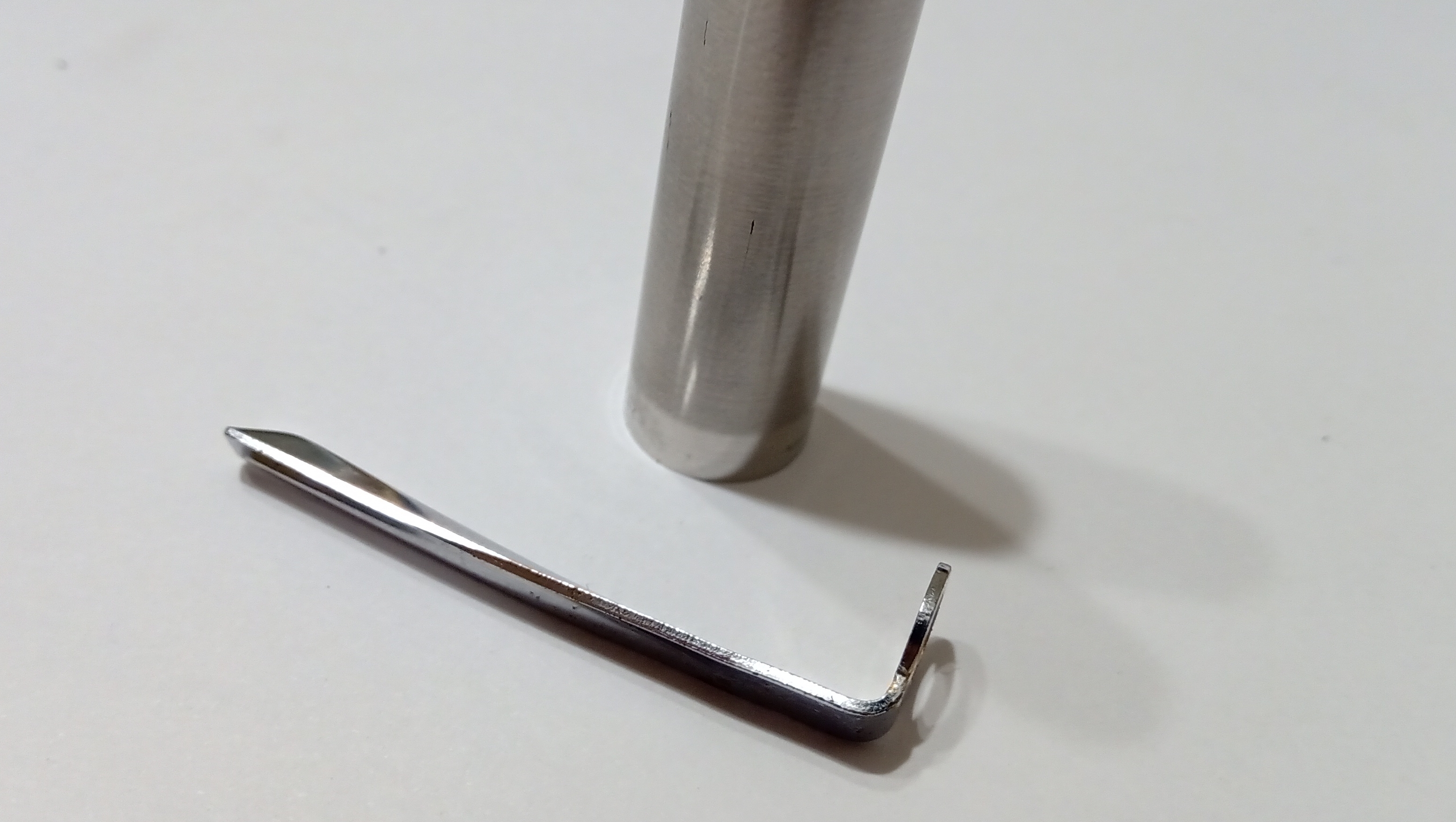 Ho quindi raddrizzato e pulito la clip, specificando che questa era una delle due clip con cui erano equipaggiate le versioni MKI. L'altra clip consisteva in una piccola semisfera posizionata nella parte interna della sua estremità, ma possiamo dire con certezza che questa clip era molto più semplice e funzionale...