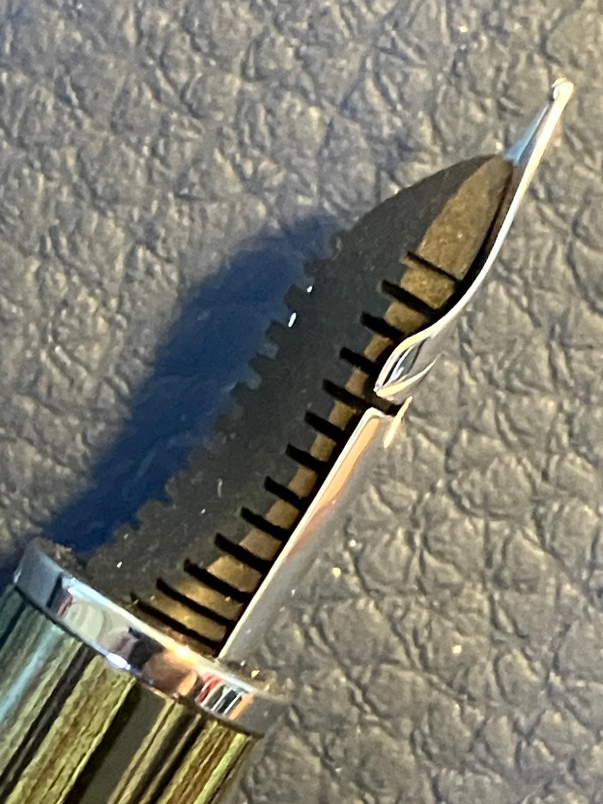 Quello che intendevo dire è che quell'alimentatore così alettato è in grado di trattenere parecchio inchiostro (lo si può vedere se lo intingi nell'inchiostro o se ci si mette a scrollare la penna).