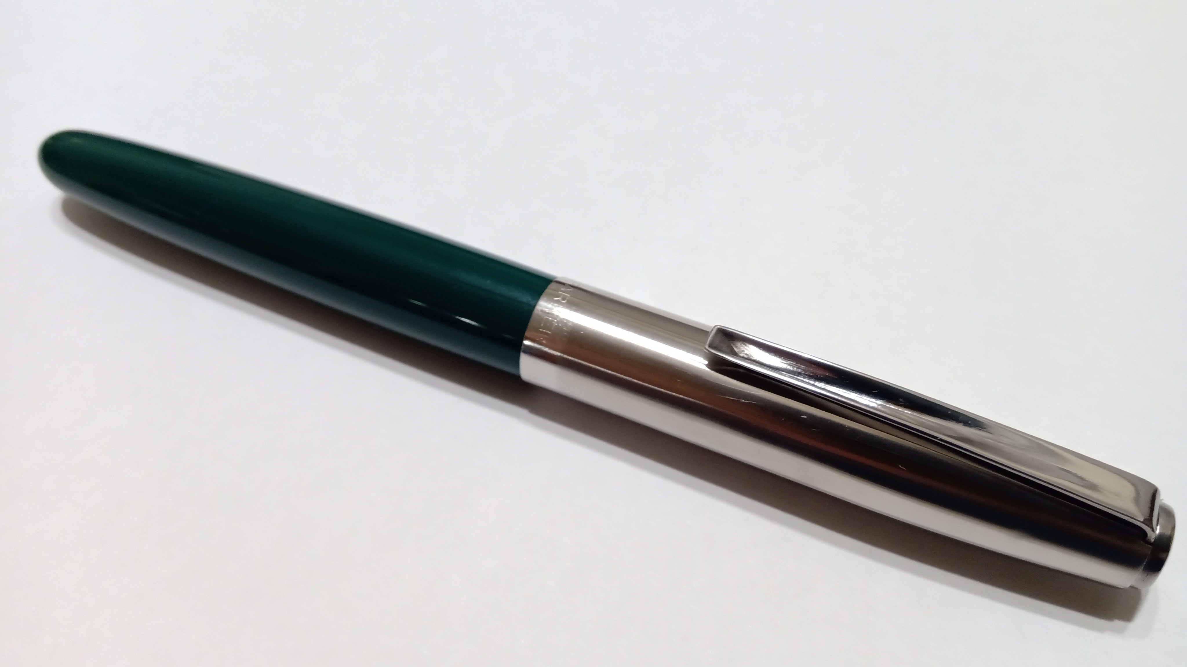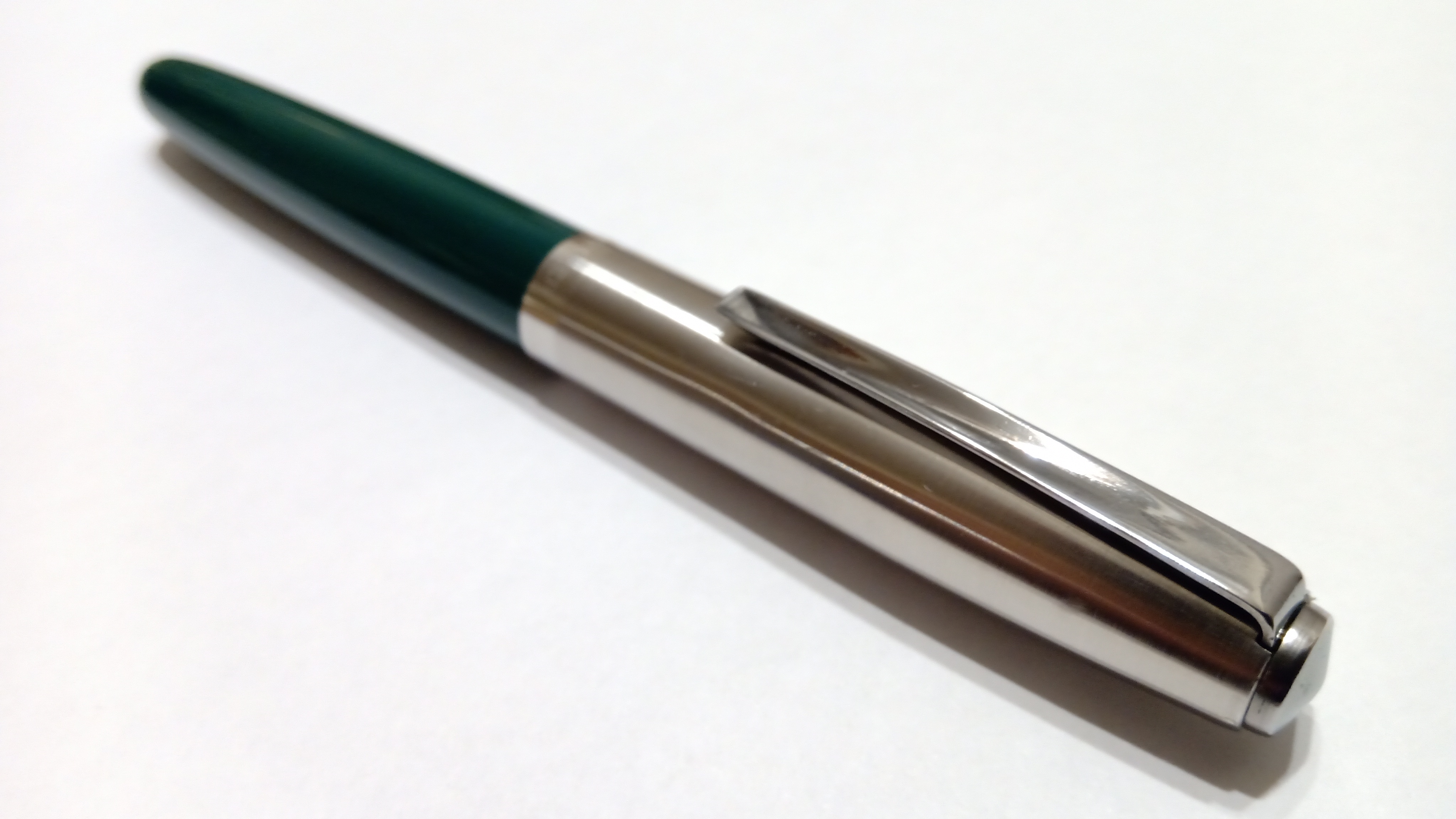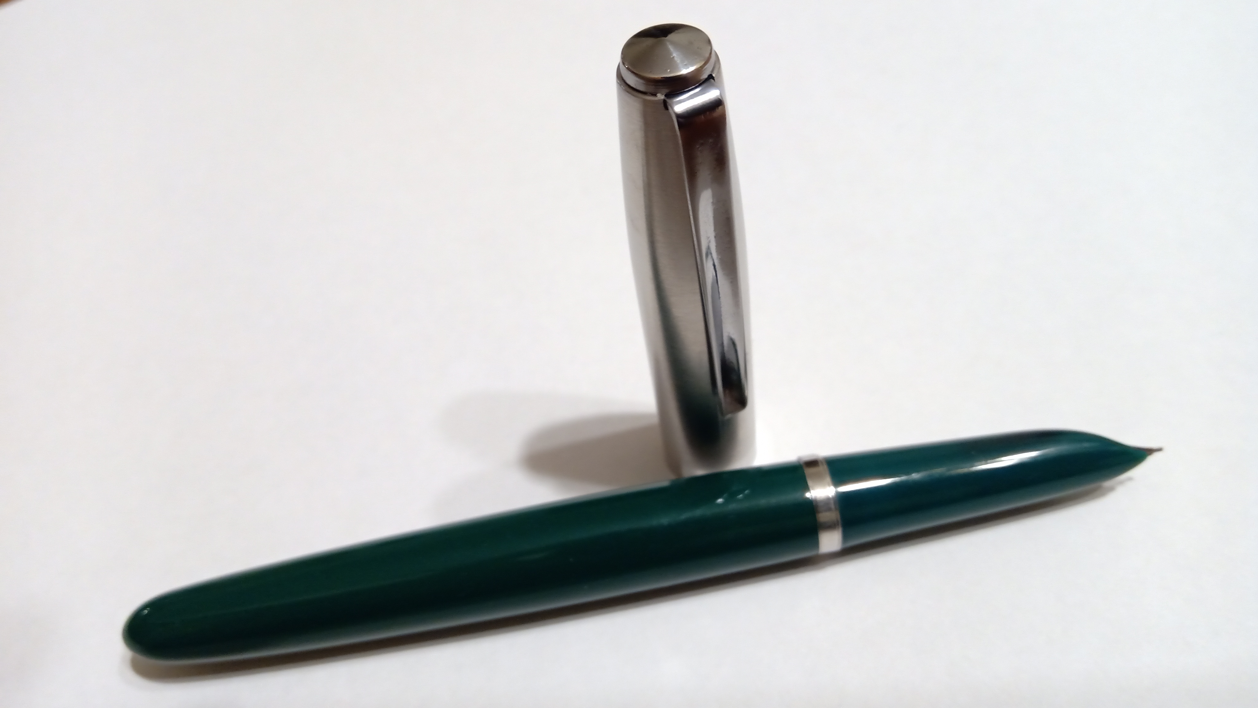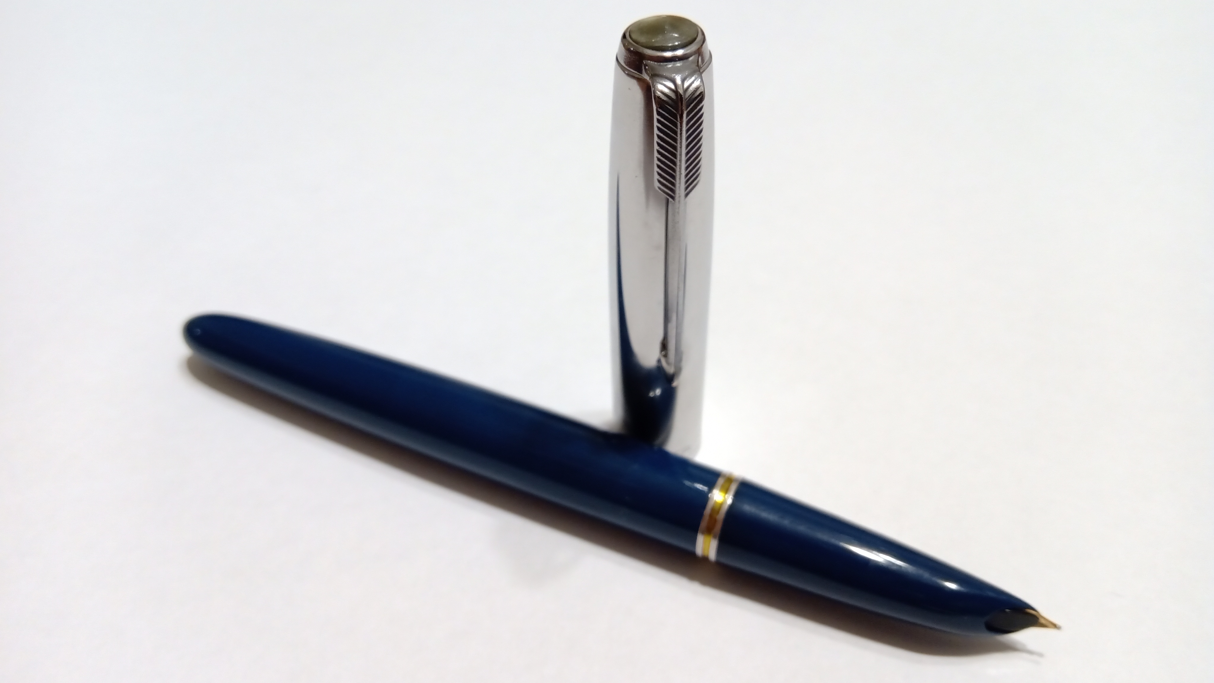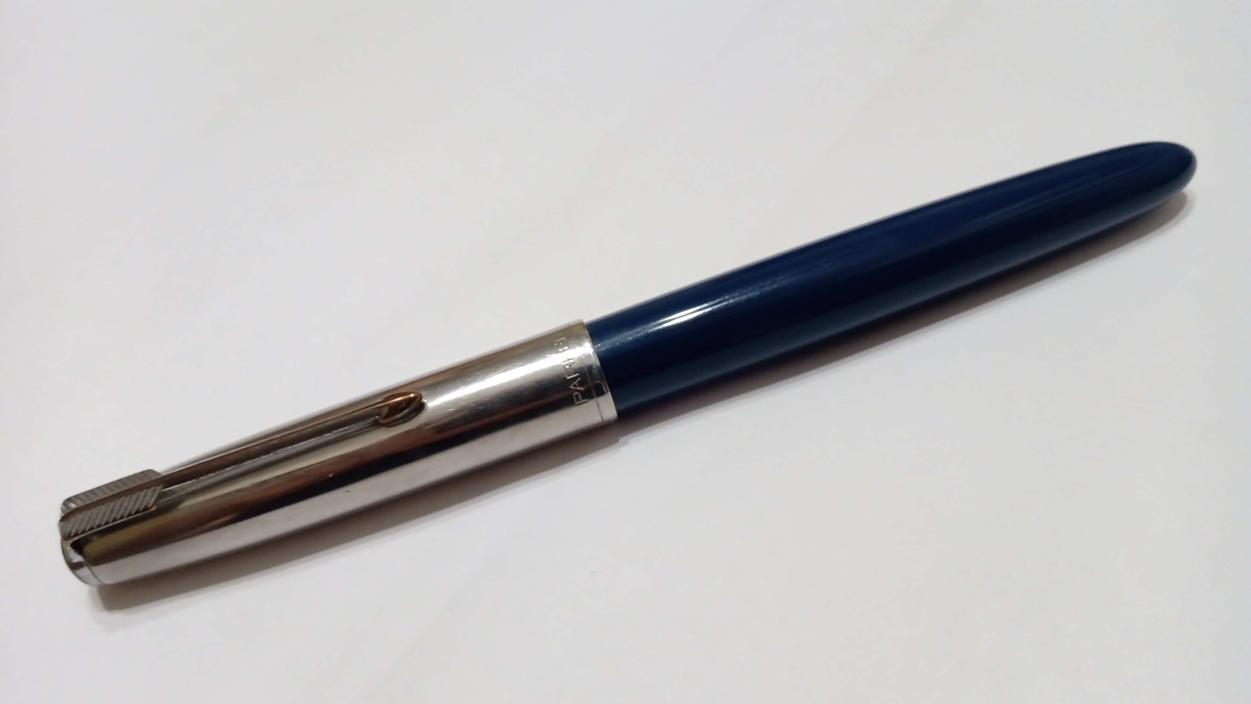 y también un clip de una Parker 51 aerométrica que por el mismo rozamiento había perdido su cromo llegando hasta el cobreado de base...