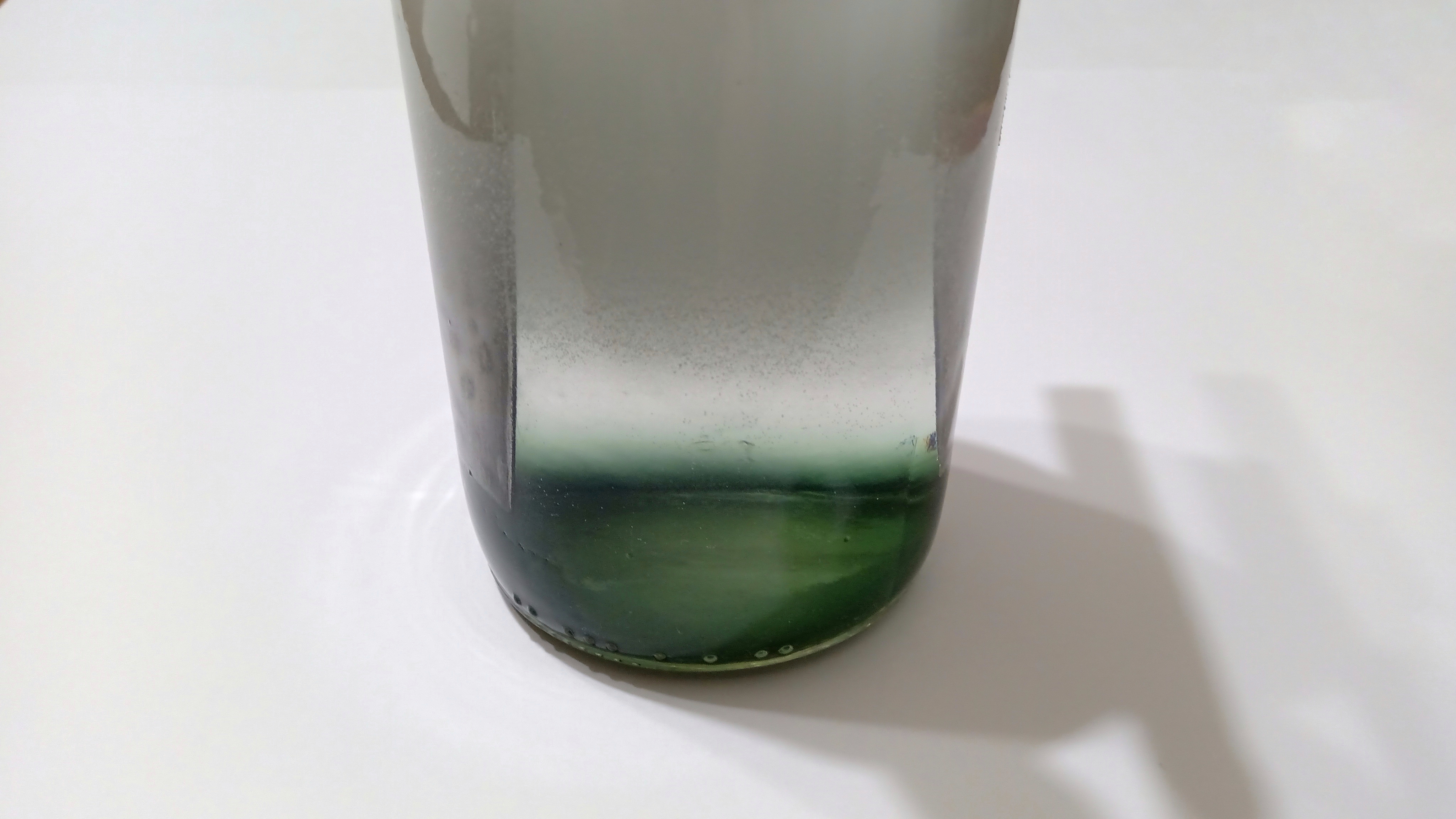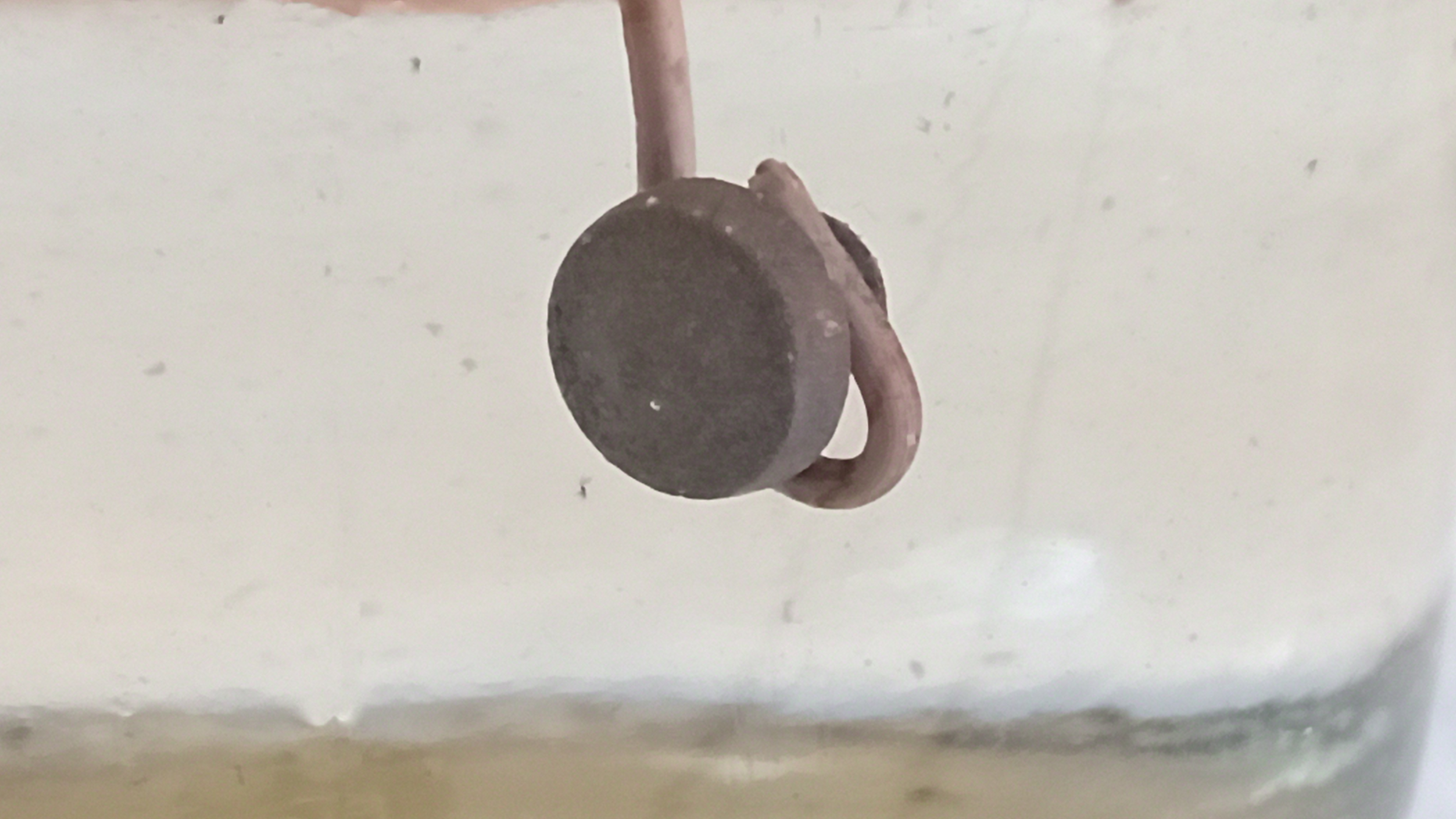 dall'elettrodo positivo si staccavano gli ioni di cromo, che generano un liquido scuro con una colorazione tra il marrone e il bruno...