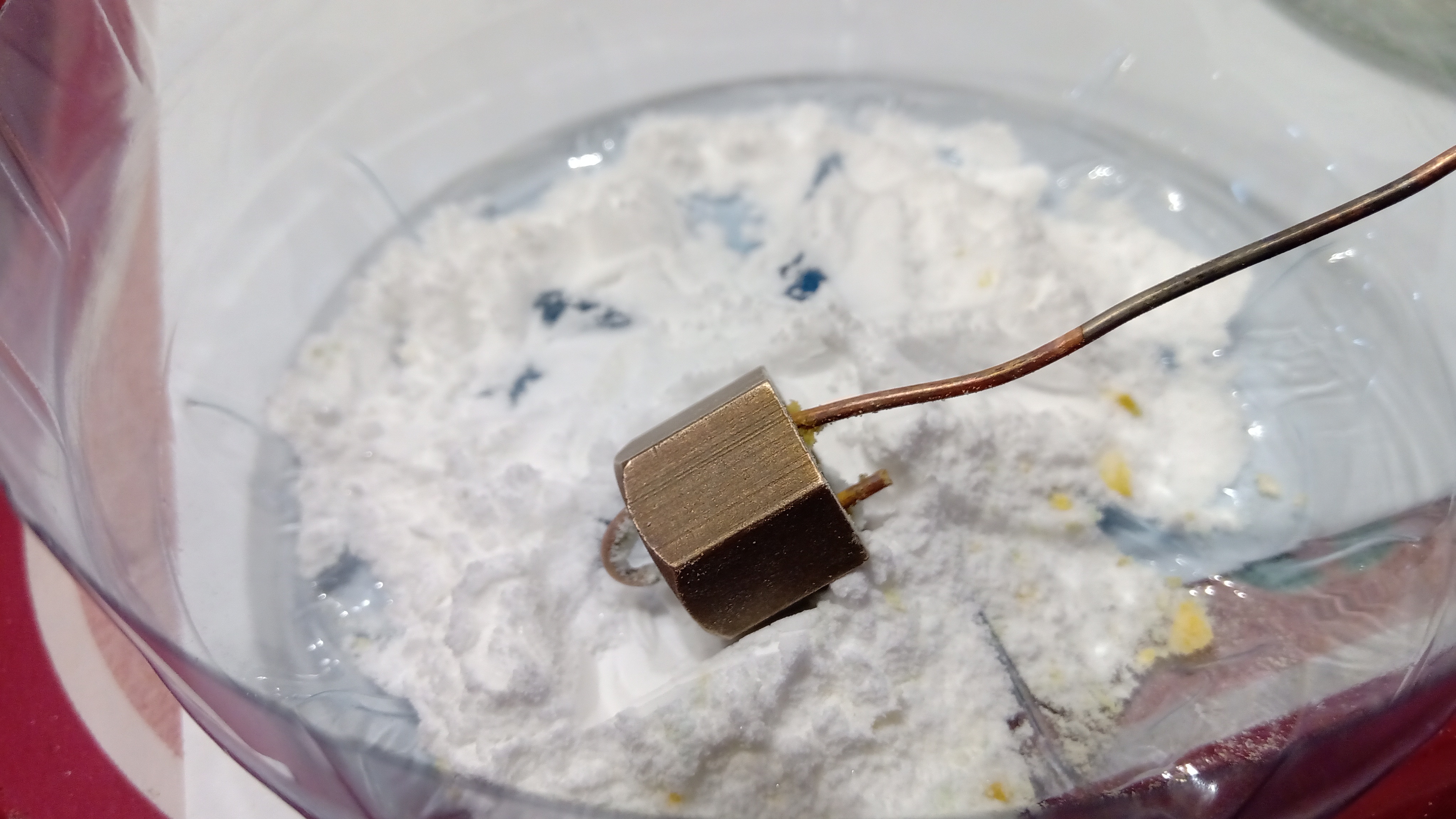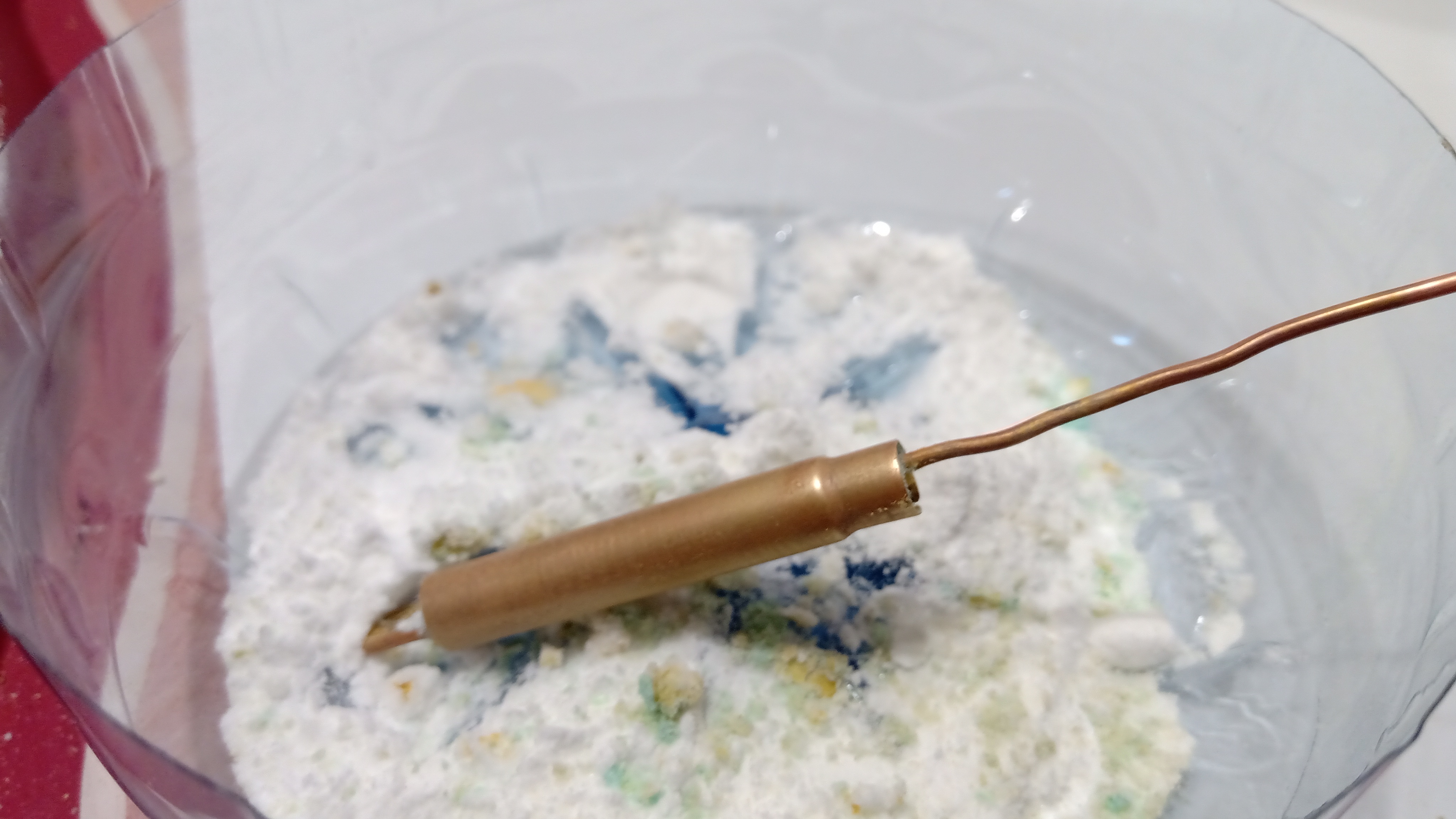 La soluzione di base era la stessa utilizzata per la nichelatura (1/2 litro di aceto bianco + 2