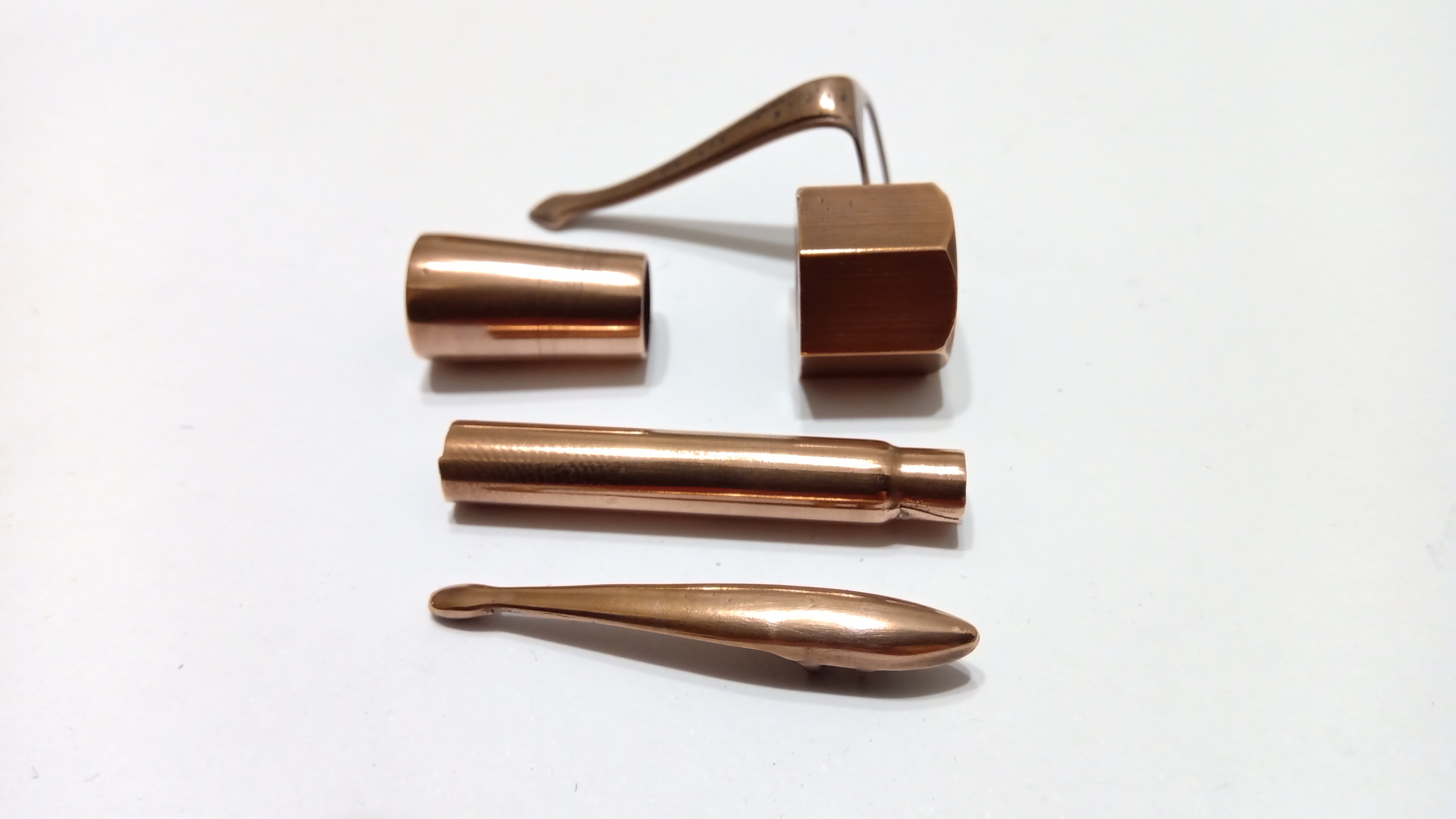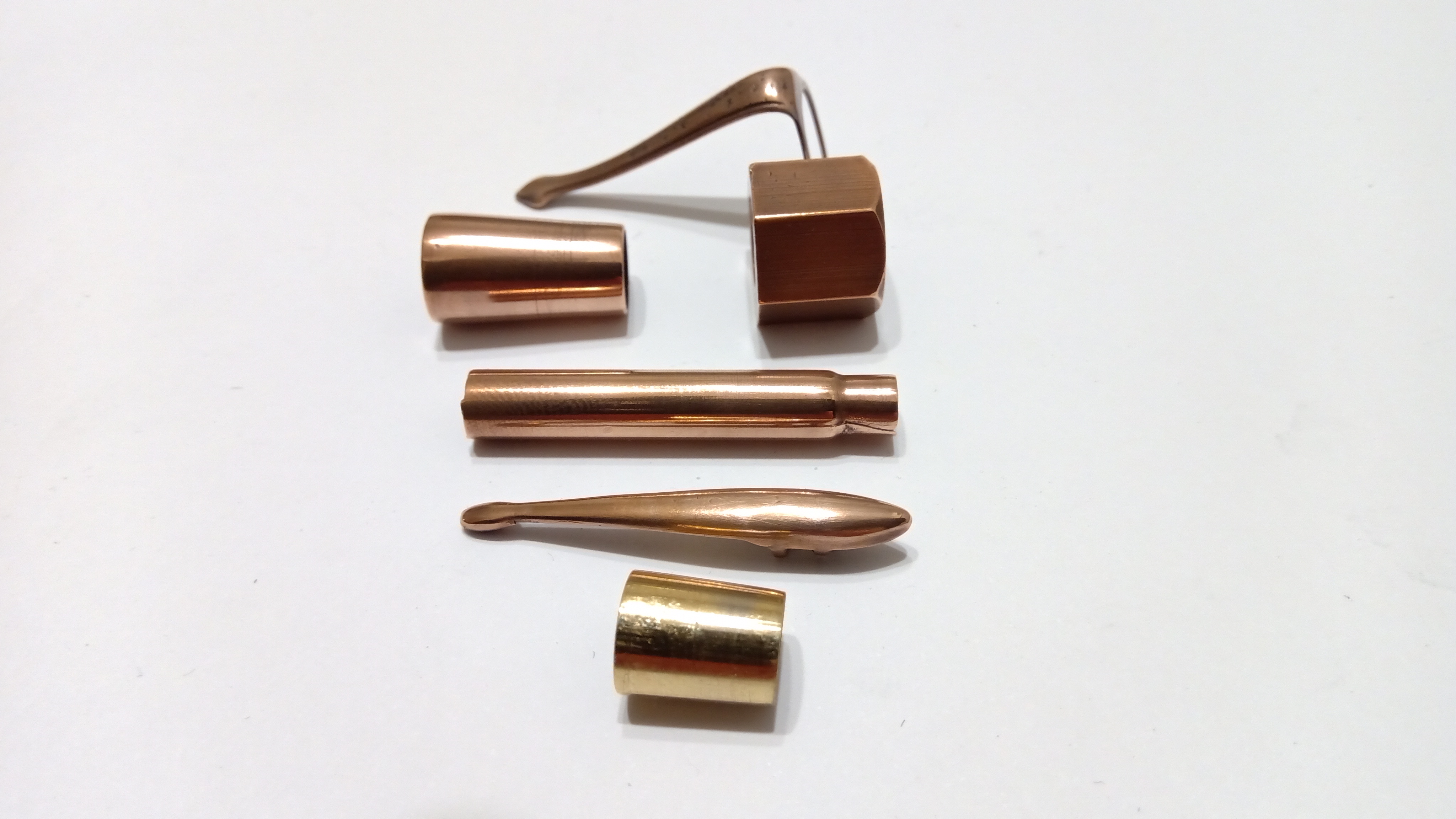 Una vez elaborado el electrolito para cromar, decidí experimentar con algunas piezas de latón y de bronce, algunas de ellas con chapados y otras con las superficies en crudo...