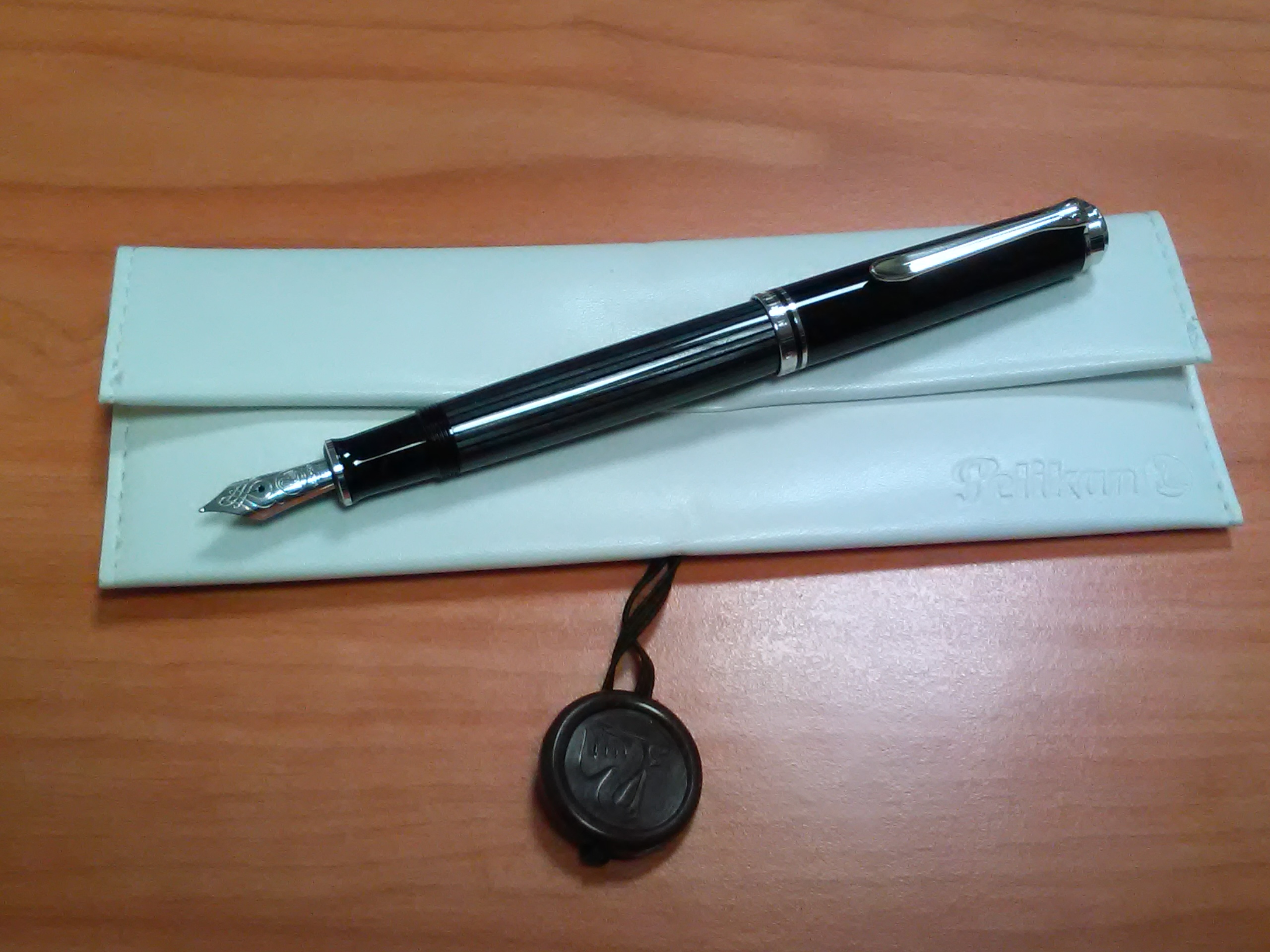 Pelikan M600 Stresemann con pennino F, nel pomeriggio la carico con l' Edelstein Onix che ho ricevuto in omaggio