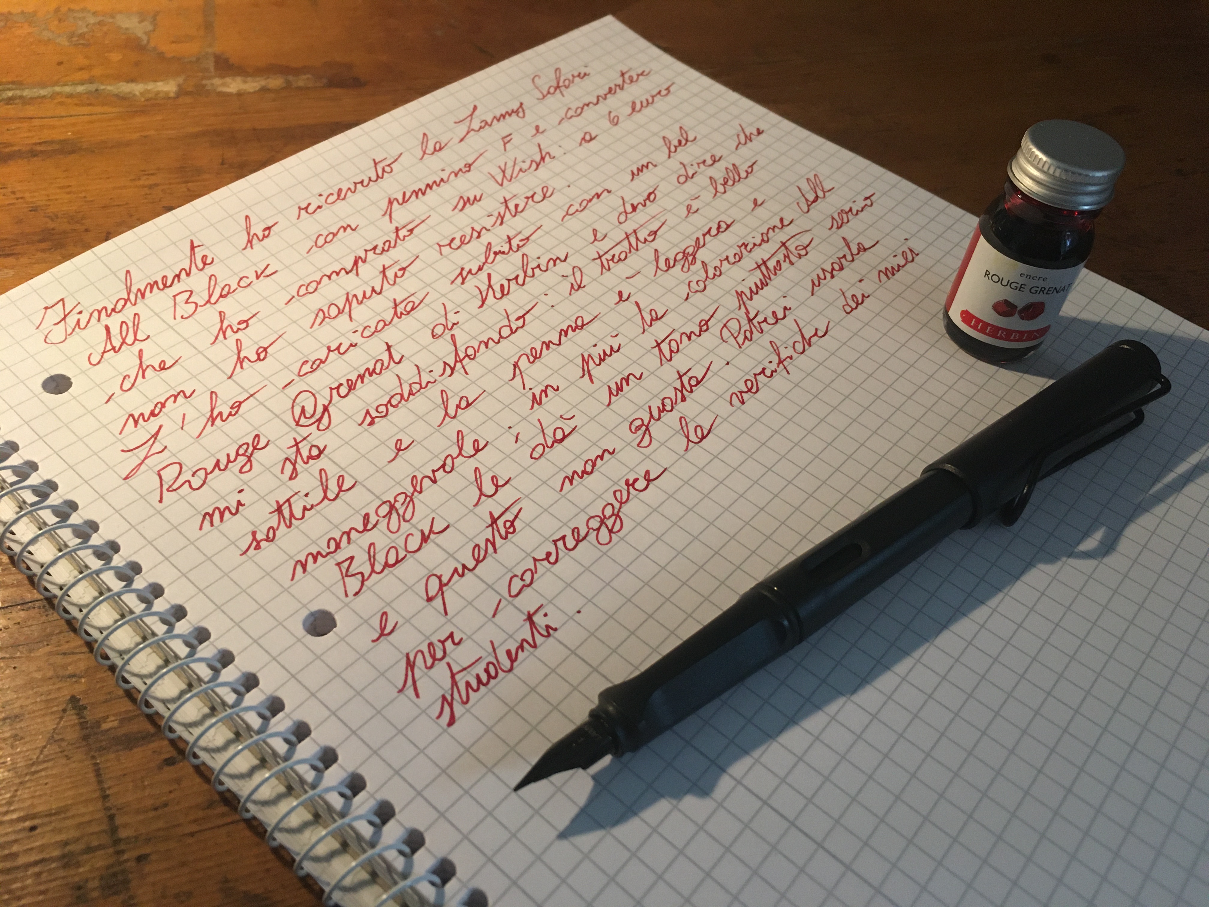 Il mio ultimo acquisto risale al 25 dicembre scorso ma mi è stato recapitato solo oggi! Cazzeggiando davanti al caminetto con il cellulare in mano, trascorrendo il Natale più insolito della mia vita, acquistai una Lamy Safari All Black con pennino F e converter proprietario su Wish a 6 euro (4 per l’oggetto e 2 per la spedizione dalla Cina). Avevo paura di ricevere un “pacco”, magari un prodotto contraffatto, per di più contraffatto male, ma devo dire che è originalissima o almeno la sembra in tutti i suoi dettagli. La confezione di cartone è arrivata ammaccata ma per il resto è a posto. Devo dire che sono davvero contento!