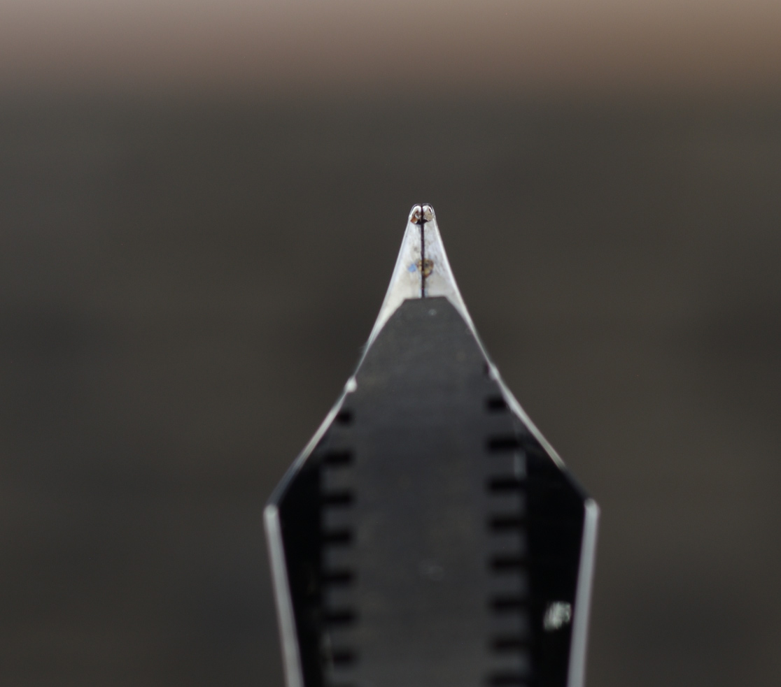 Il pennino è come descrittoci da Ottorino, fondamentalmente un po' rigido pur non essendo un chiodo. Io ho comunque la mano leggera e non è con questo tipo di pennino che vado a ricercare variazioni di tratto