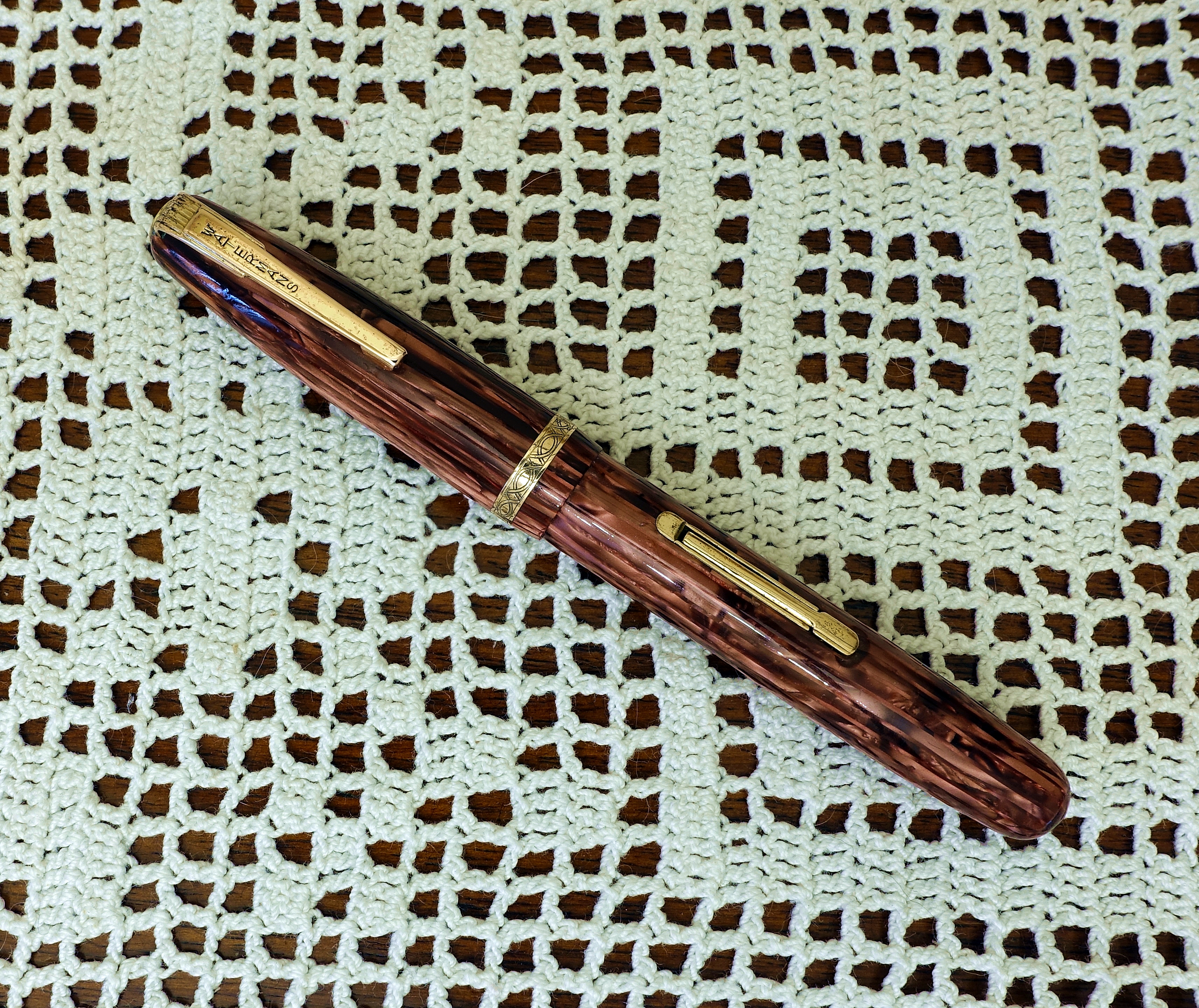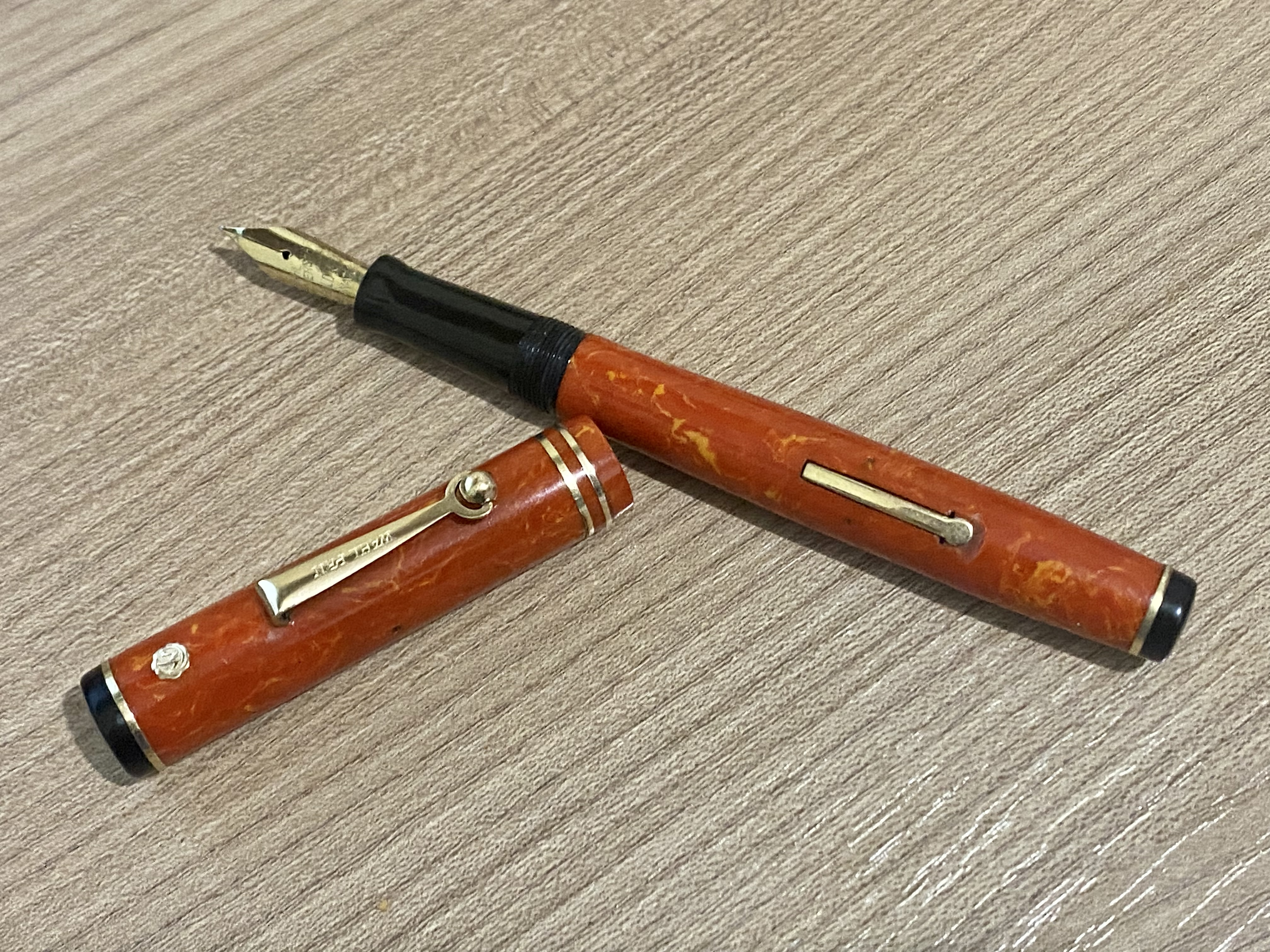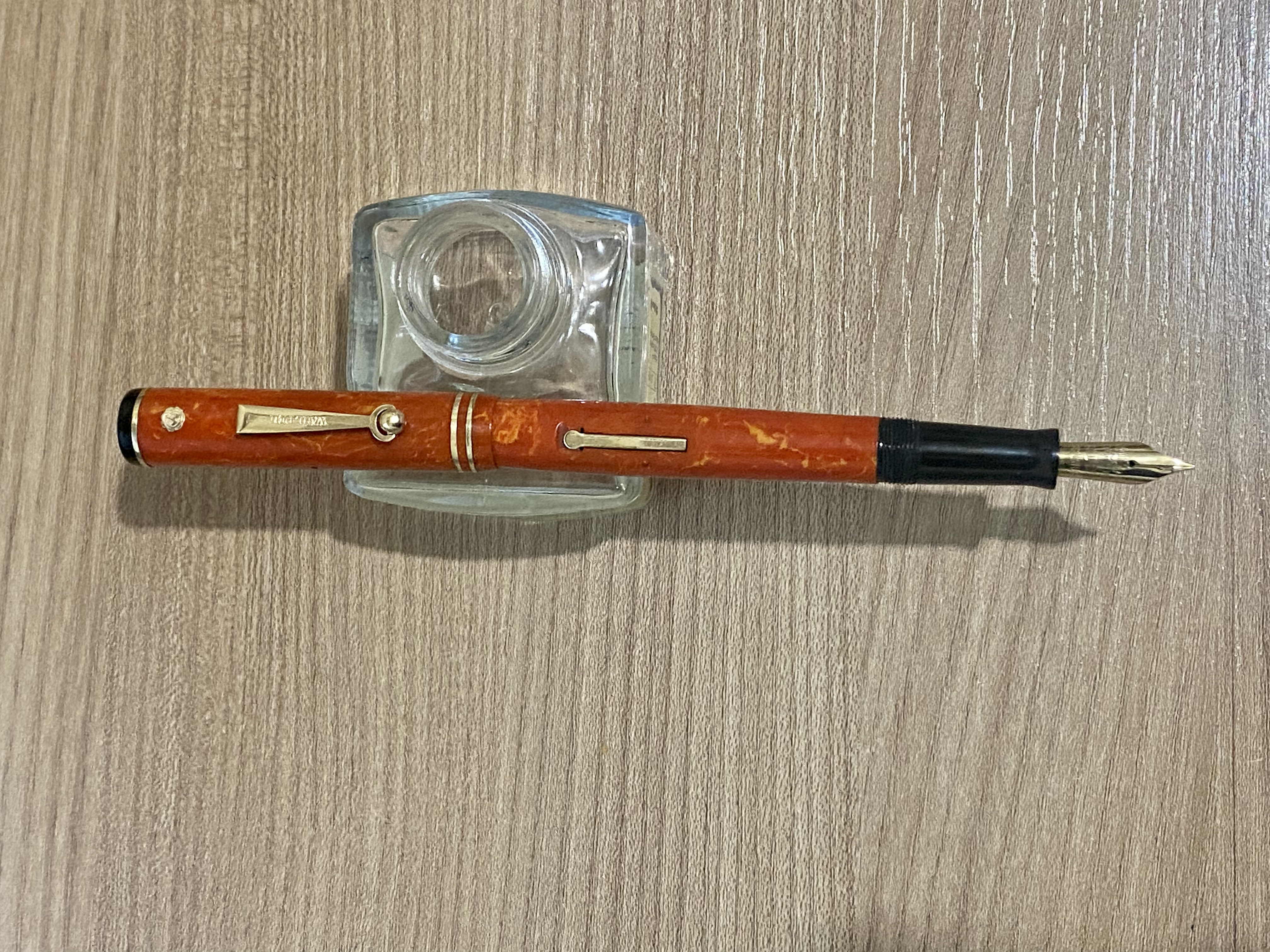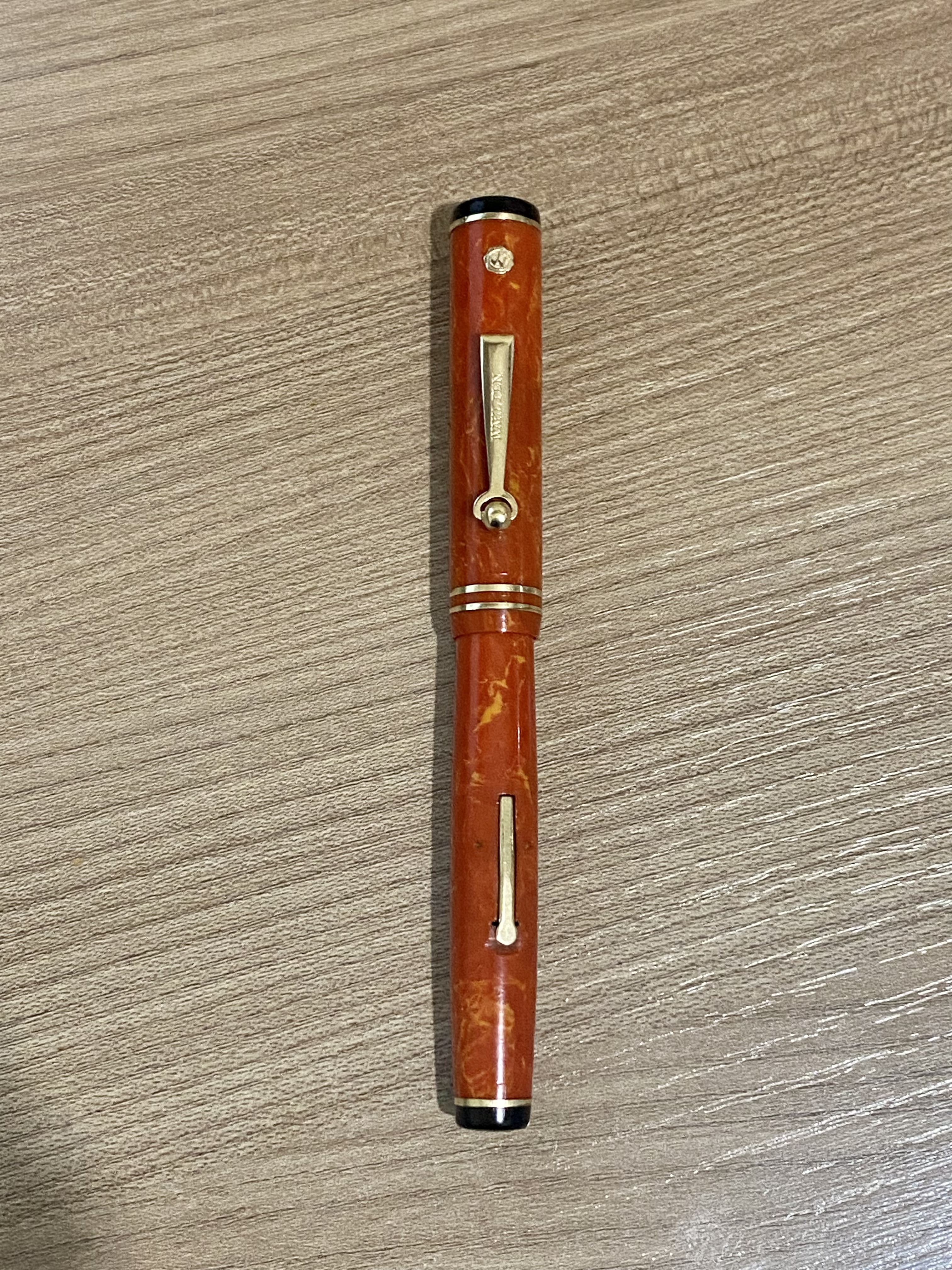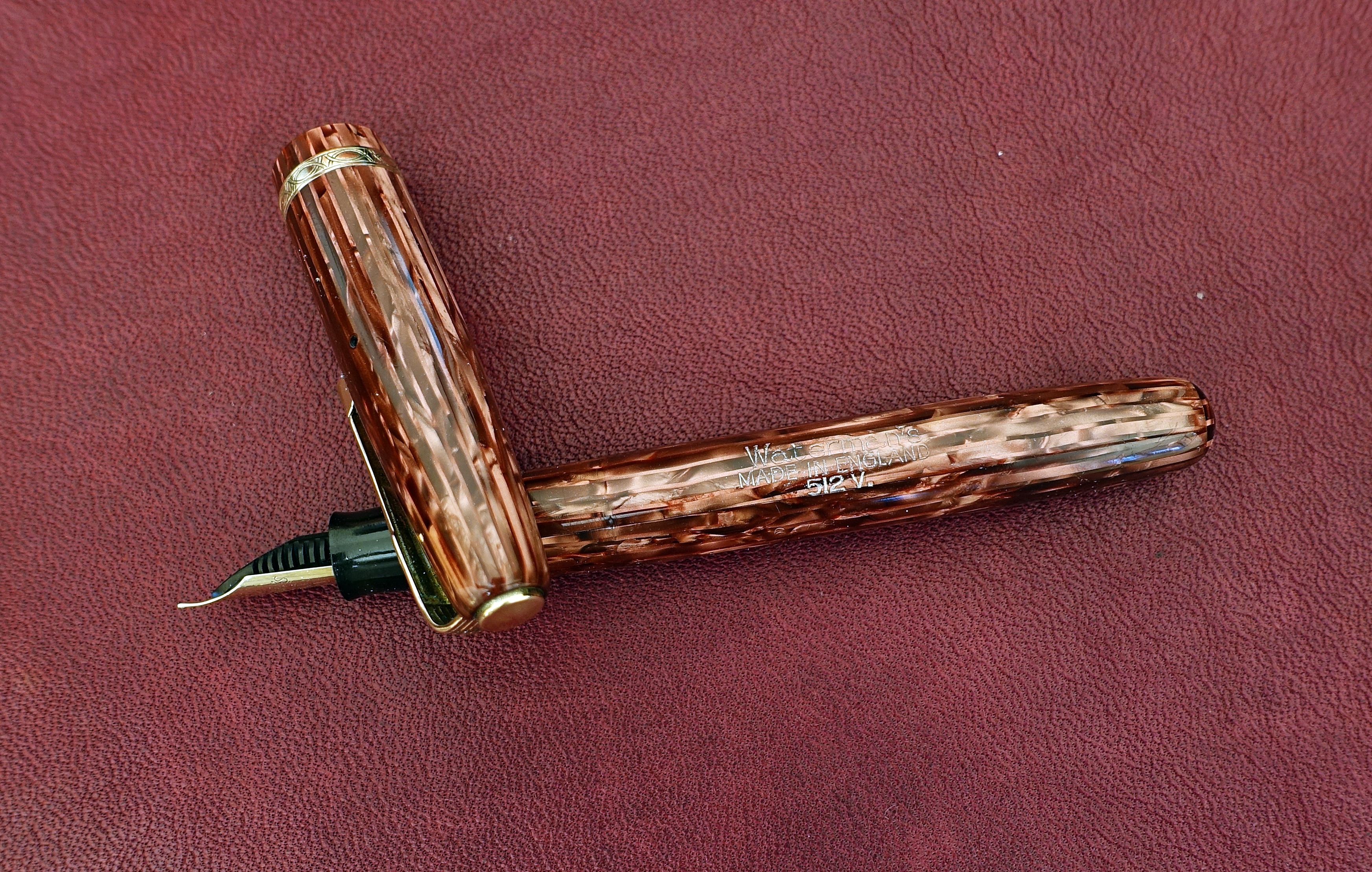 Waterman's 512 V anni 1930/40, celluloide e colore particolare, non riesco a farle una foto che le renda giustizia, pazienza, purtroppo ha un problema.