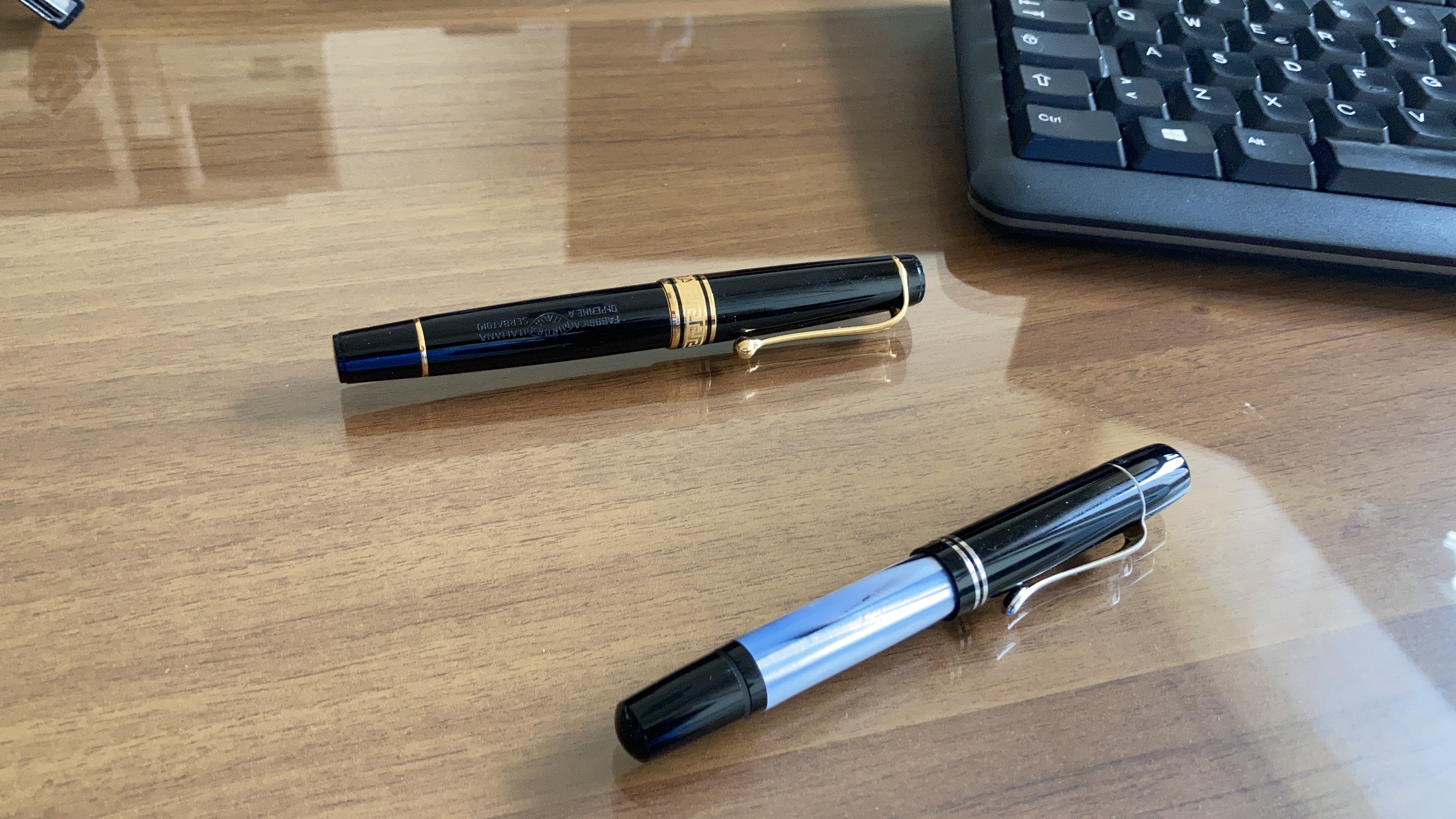Sulla scrivania ho una Aurora Optima nera ed una Pelikan M101N