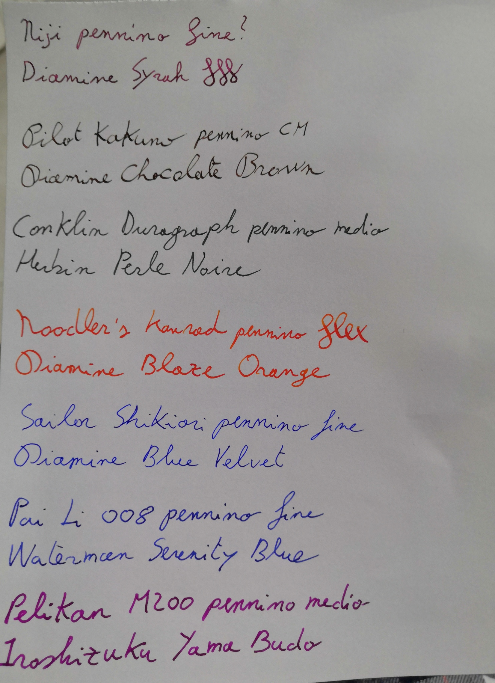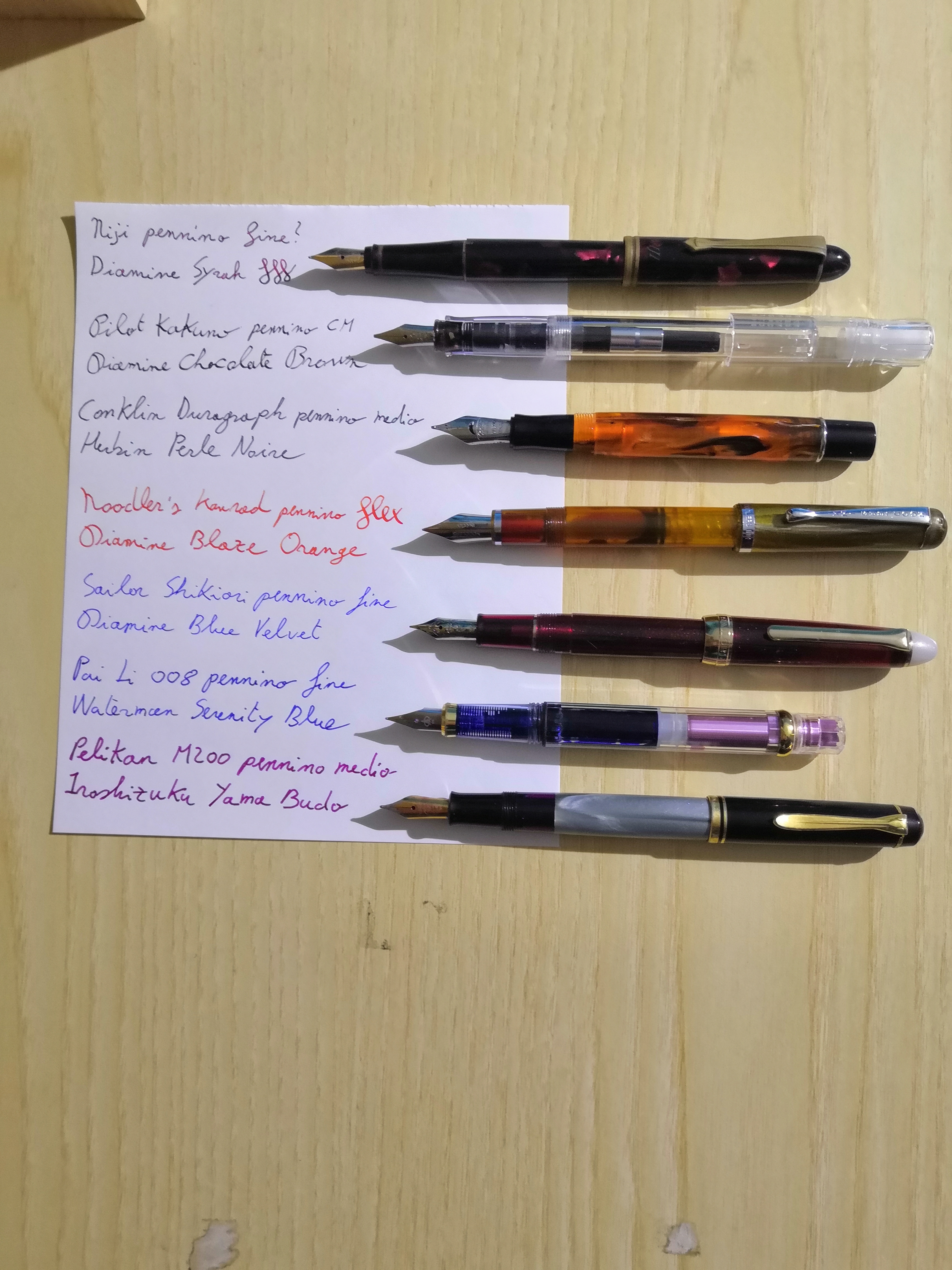 Niji che ha dato il via alla passione, caricata con Diamine Syrah. Per essere una penna da tabaccheria, scrive bene.