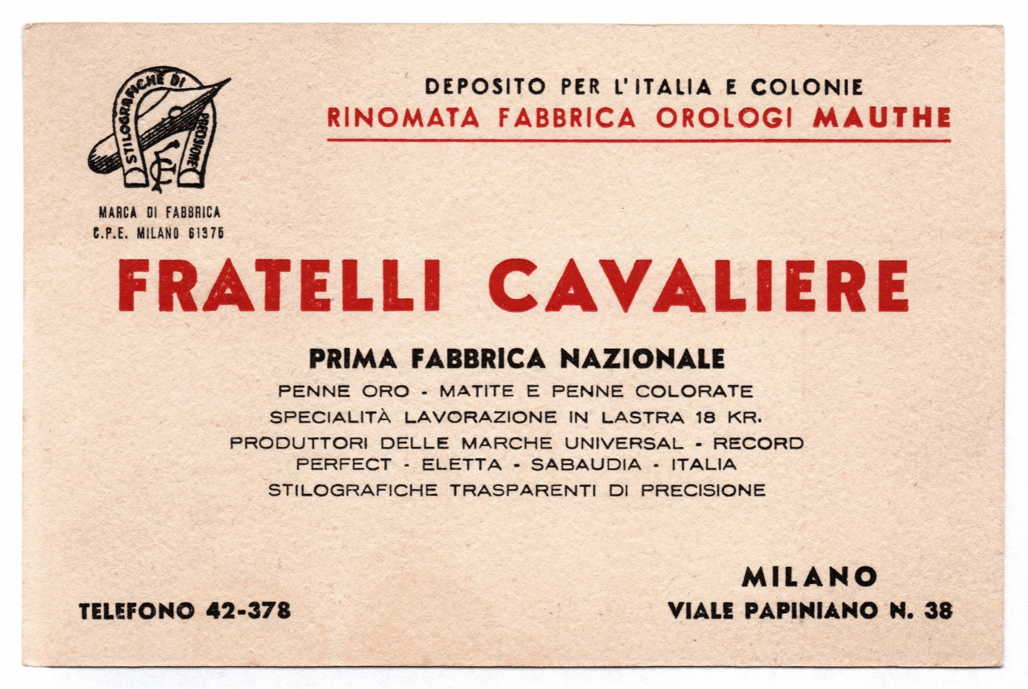 Riporto di seguito l’elenco delle “Marche” di stilografiche di cui la ditta “FRATELLI CAVALIERE” si dichiara produttrice nel mio cartoncino: