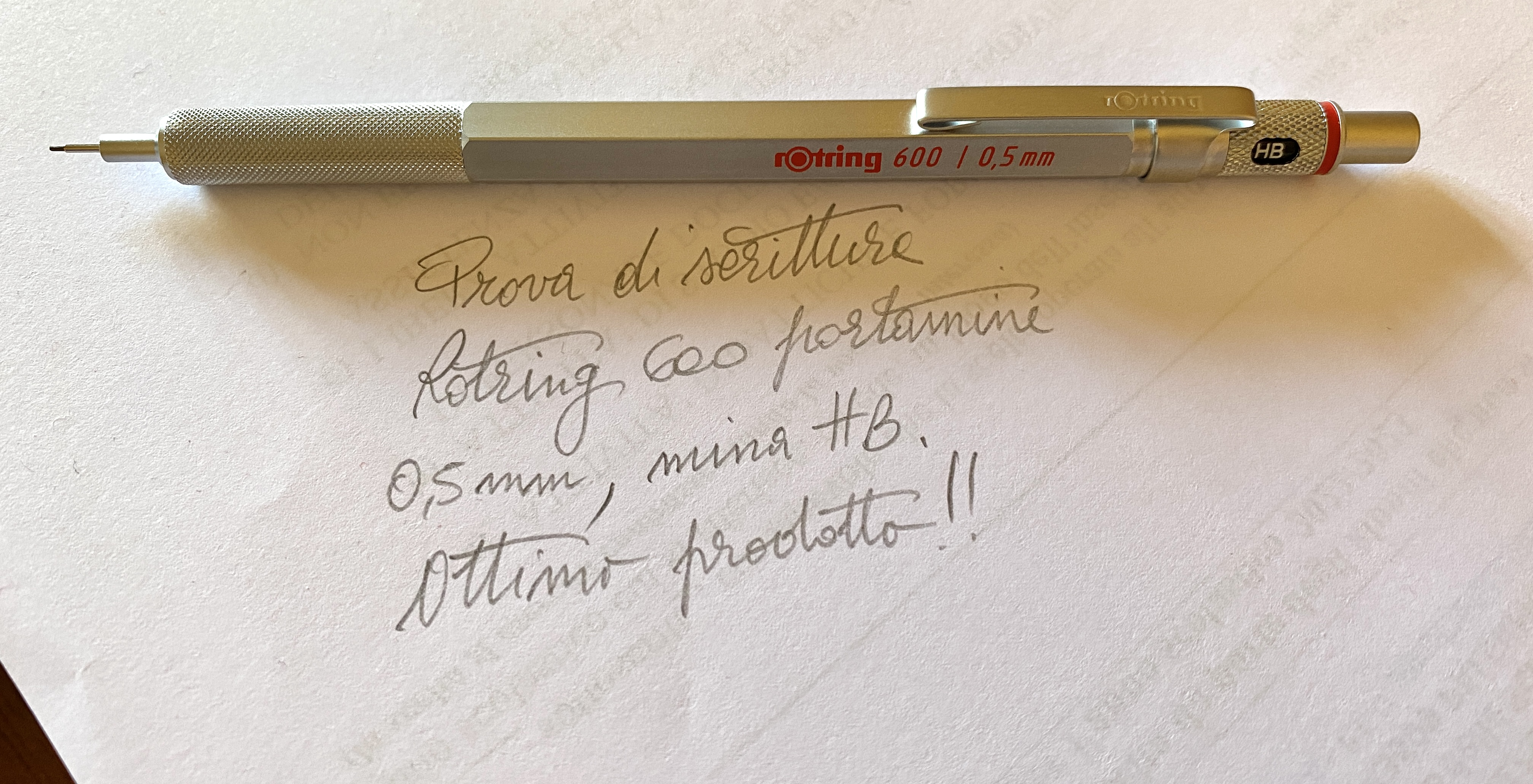 Un mio collega si è sbarazzato di questa matita meccanica e io non ho perso l'occasione. La particolarità consiste nel non dover schiacciare il pulsante per l'avanzamento della mina, è automatico. La mina non sporge dalla punta e scrive con tutte le angolazioni. Non l'avevo mai presa in considerazione per via del costo ma questa volta non me la sono fatta scappare.