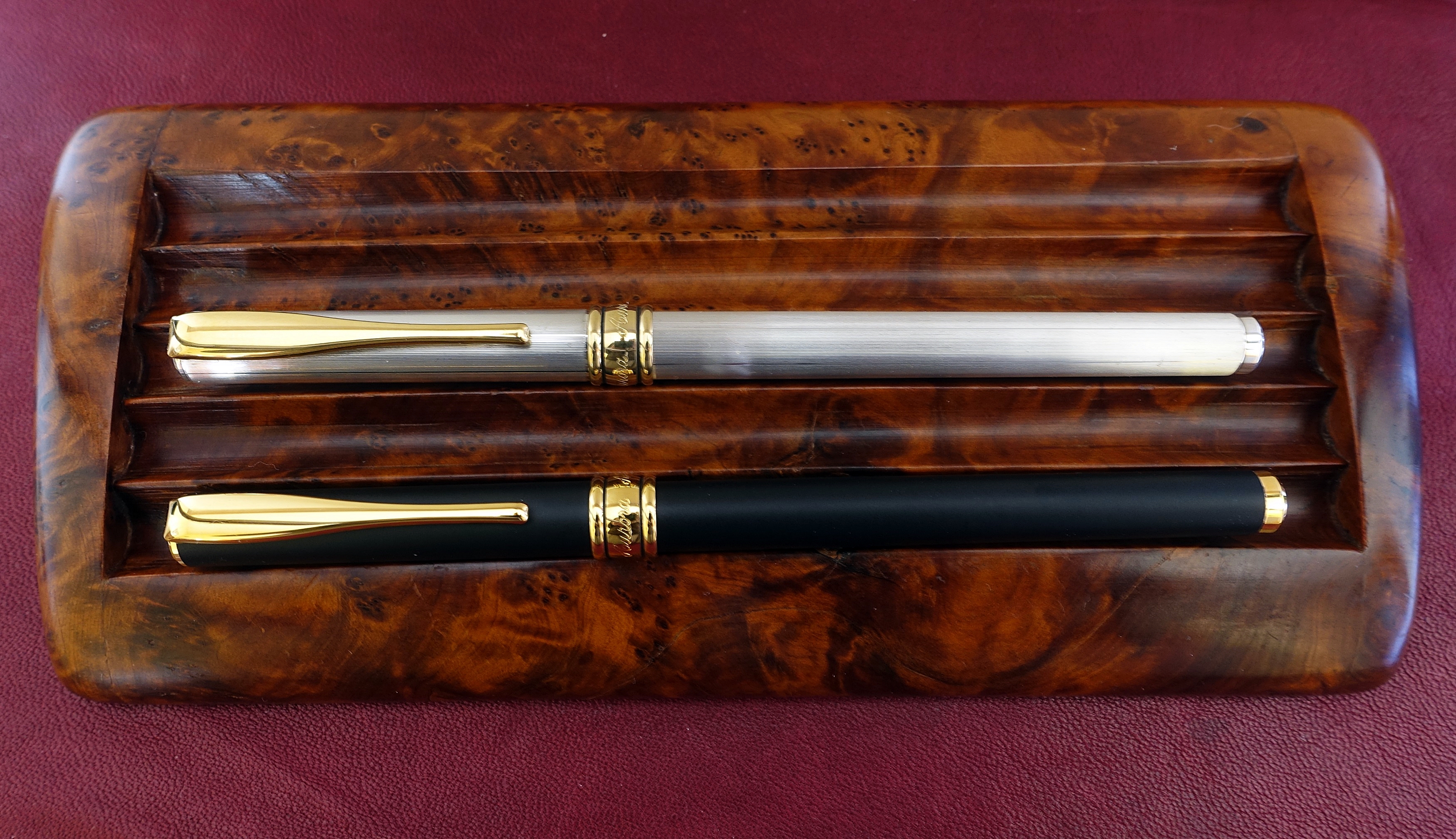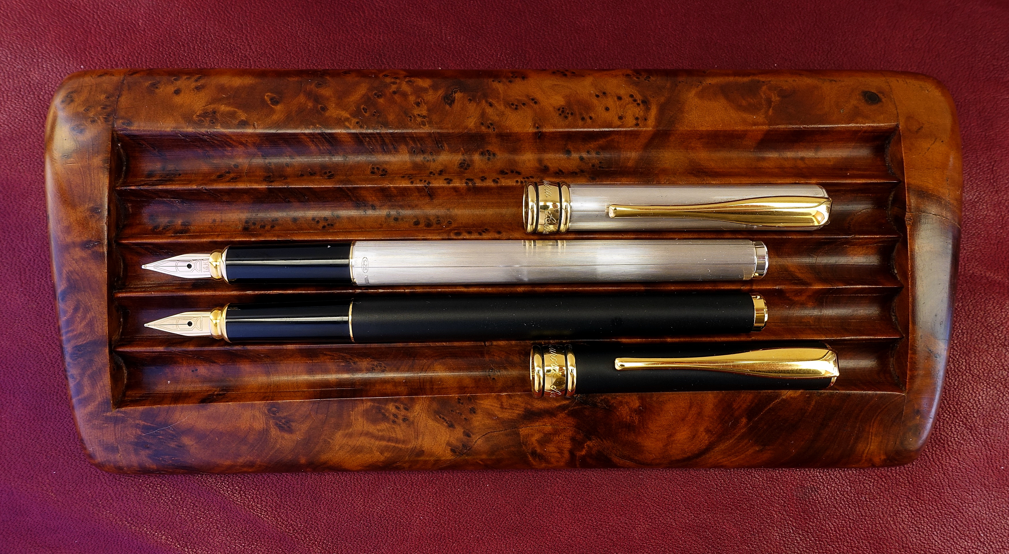 Sì è in radica, credevo fosse solo impiallacciato, tornato a casa dal mercatino, con grande sorpresa ho visto che è totalmente in radica, penne non ne ho trovate, ma sono soddisfatto ugualmente di questo acquisto.
