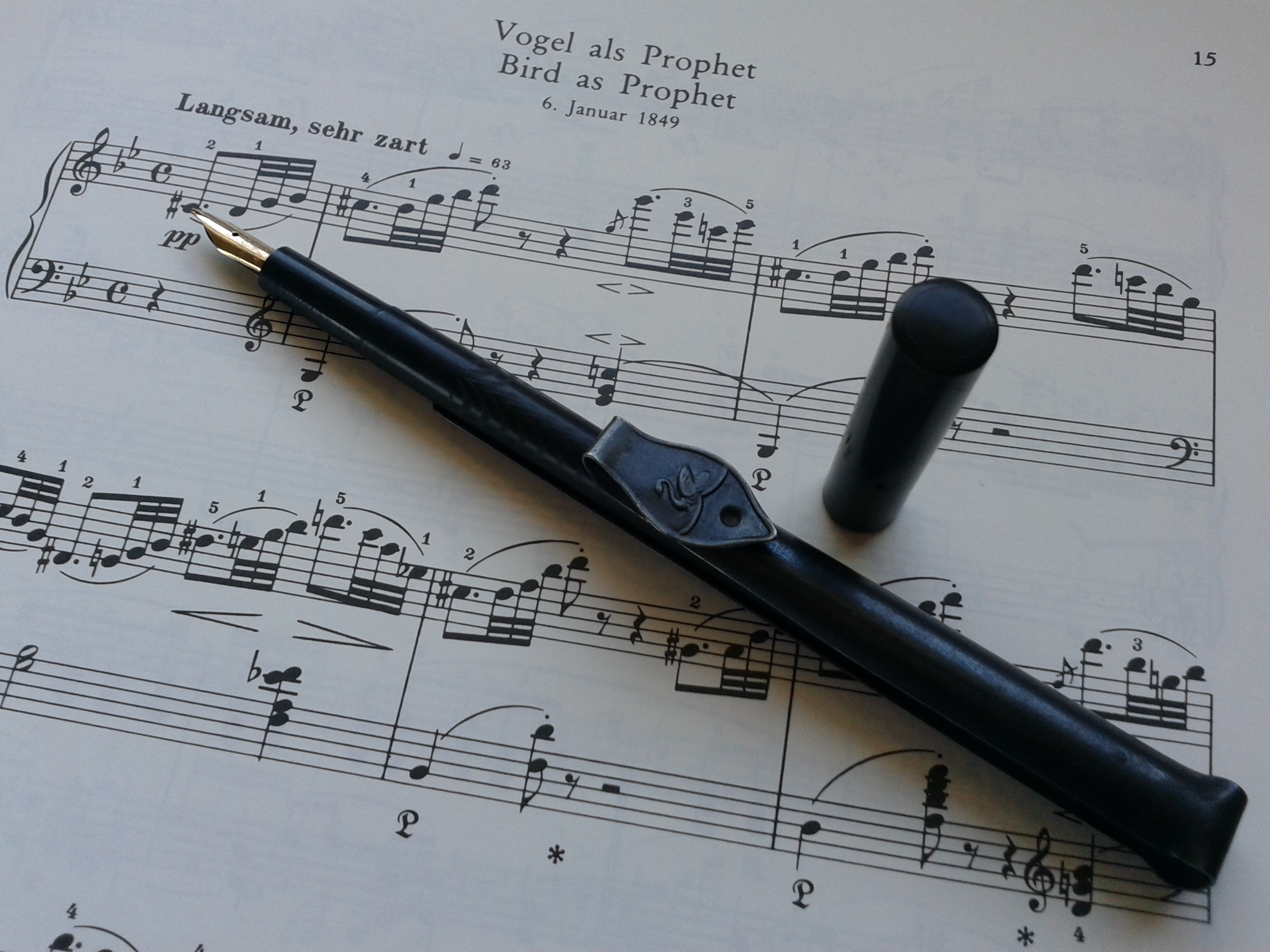 valerio50 ha scritto:Bellissima recensione Musicus, come sempre peraltro. Ho una penna uguale alla tua, in ebanite nera, che purtroppo ora tanto nera non è, ma vira al marroncino. Sul fusto è impressa la scritta che hai citato ( BLACKBIRD FOUNTPEN M.T. & CO MADE IN ENGLAND). Però sulla clip o astuccio che dir si voglia, non c'è il logo del cigno ma un monogramma ( A M), che non so se sia una marca o le iniziali dell'antico proprietario. Sul lato posteriore della clip è impresso in stampatello " SAFETY CLIP ". Non ho il coraggio, data la vetustà della penna di usare il Fornet per ottenere il nero originale.