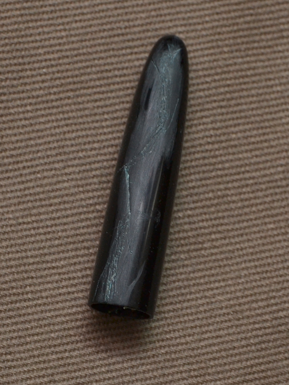 Purtroppo non avevo nessun rottame della stessa penna, allora ho scavato come precedentemente mostrato ed ho provato ad utilizzare la celluloide nera.