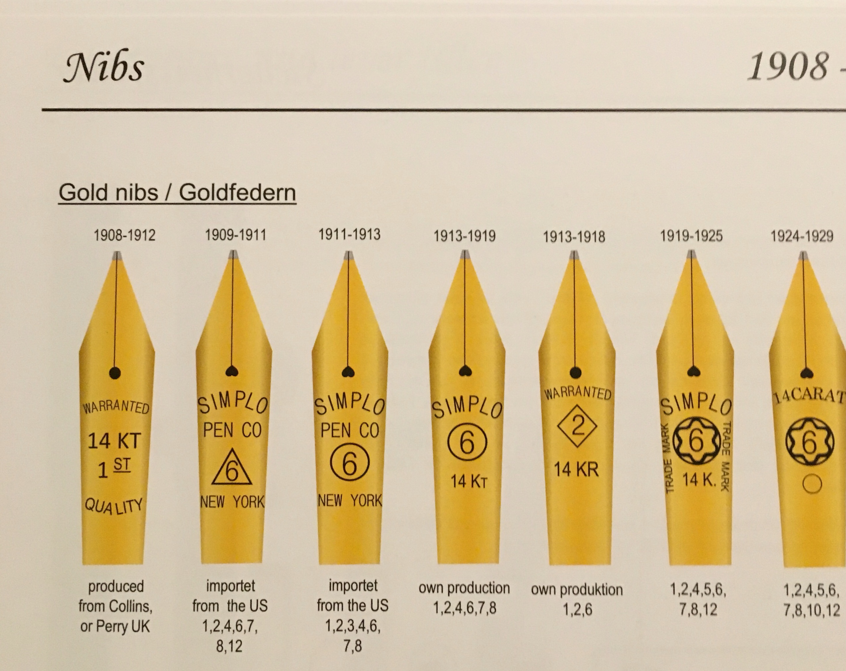 in attesa del verdetto di Max, che attendo , anticipo che quando mi posi la tua stessa domanda in relazione ad una mia n 1 kurz che monta un pennino 1 con le stesse caratteristiche del tuo, mi sembrò di capire che sicuramente i pennini Simplo fossero precedenti ( nei primi mi pare che il numero sia contenuto in un triangolo) mentre i pennini 14 carat con il numero nel cerchio ed il profilo della stella siano stati utilizzati dall'inizio del 1920 a verso la fine del venti, come anche quelli con la scritta Montblanc ed il numero del pennino, che inoltre dovrebbero avere lo sfiatatoio tondo e non il cuoricino.